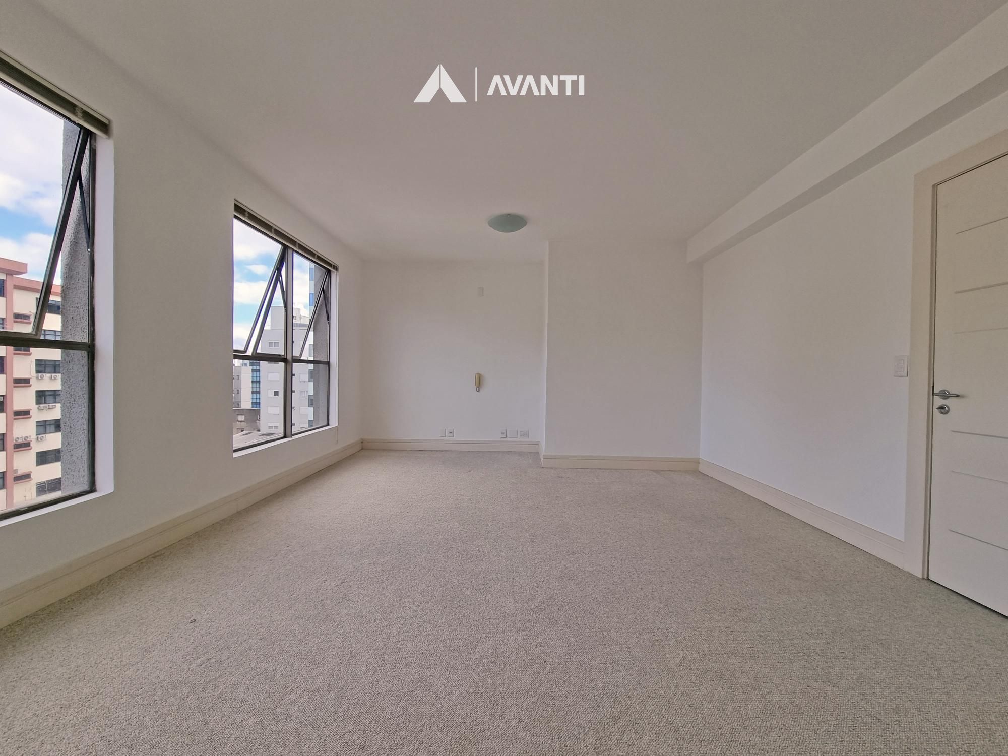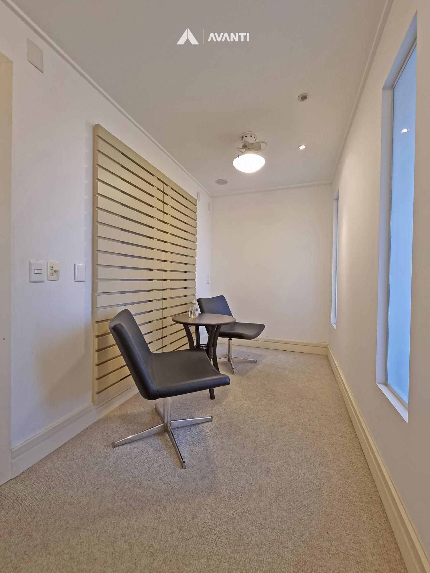 Com área de 84m² privativos, conta com 2 salas sendo 1 delas com banheiro, amplas aberturas oferecendo iluminação natural, cozinha, banheiro social e recepção.