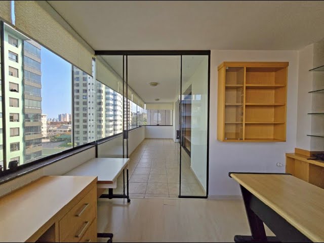 Hall de entrada com lavabo, imponente living 3 ambientes, sacada fechada adaptada para escritório, cozinha copa com churrasqueira e área de serviço com banheiro auxiliar.