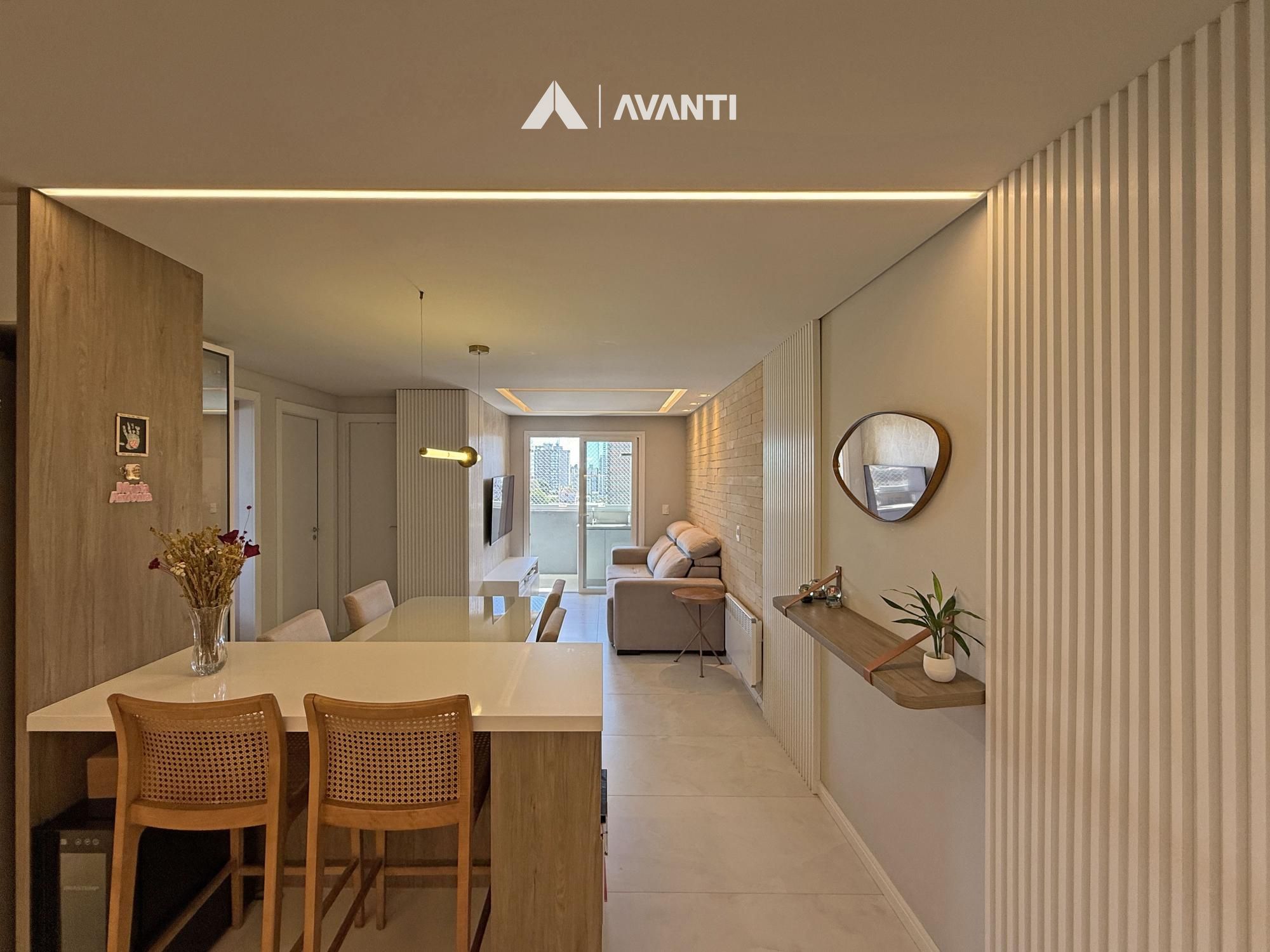 Apartamento mobiliado, 79m² privativos, 2 dormitórios sendo 1 suíte e vaga individual para 2 carros.