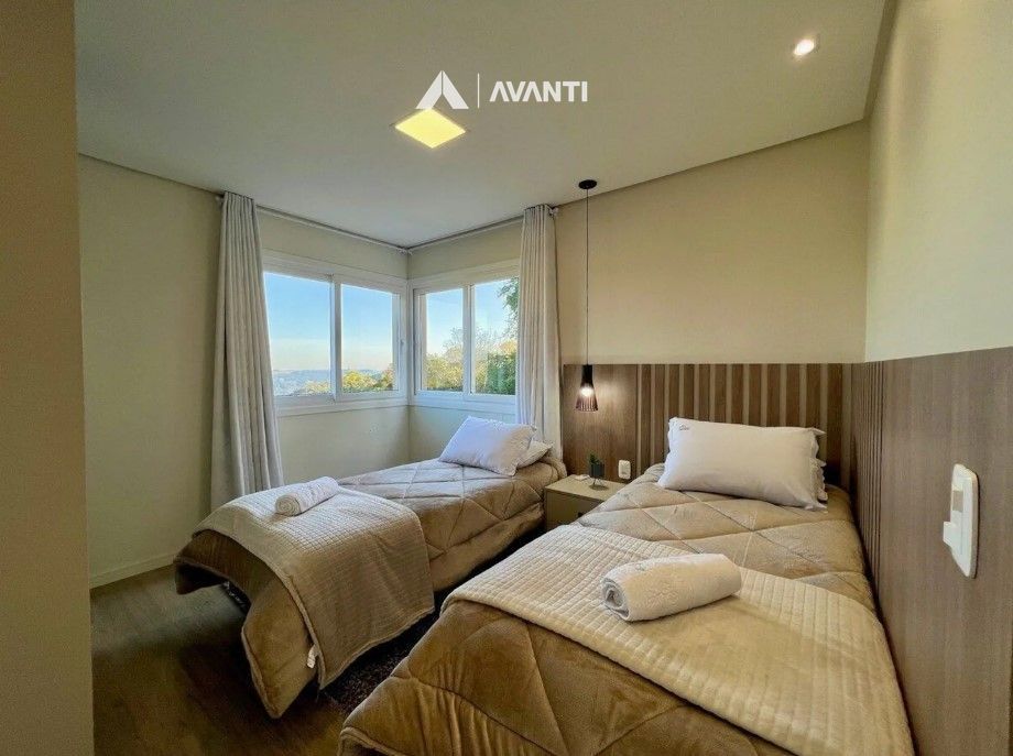 Hall de entrada, estar social integrado com vista definida para o vale, cozinha, área de serviço e banheiro social.