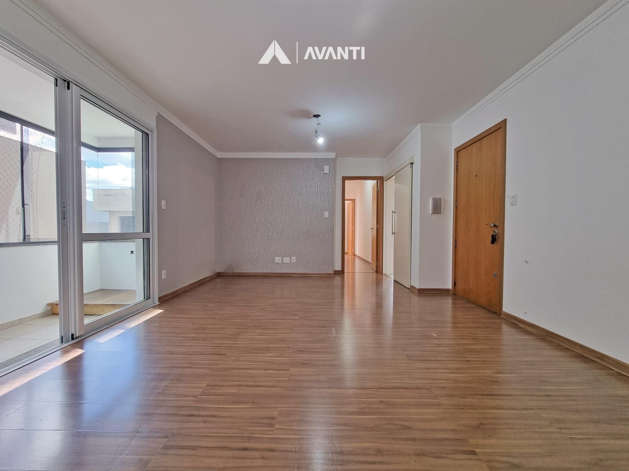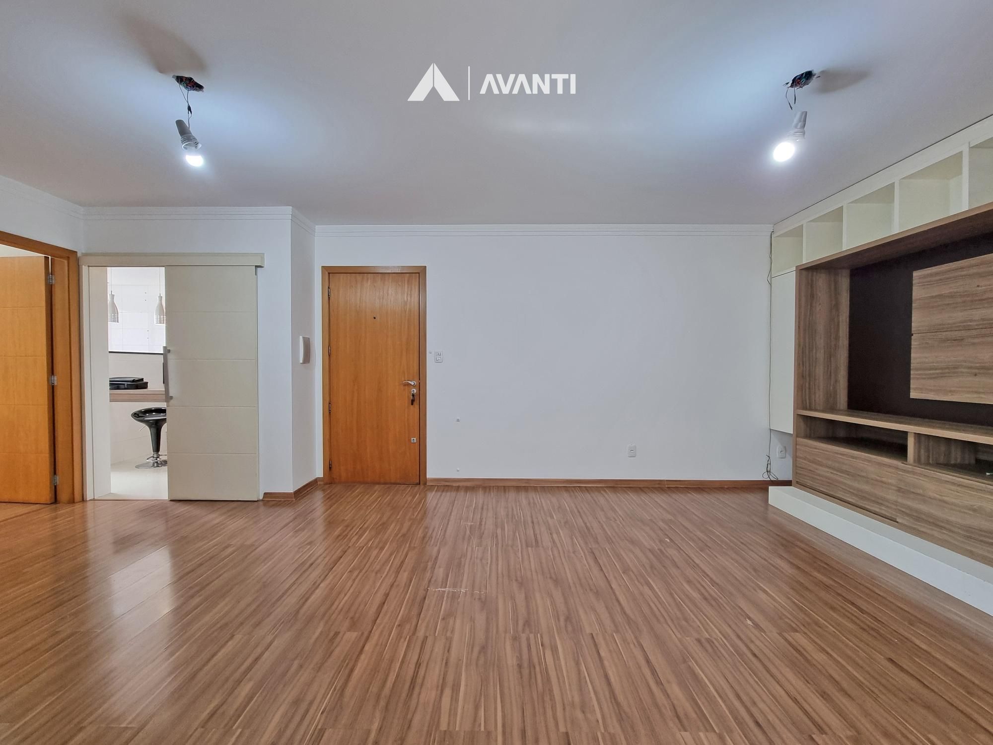 Amplo living integrado que comporta jantar e estar, sacada fechada com churrasqueira, cozinha com área de serviço e banheiro social.