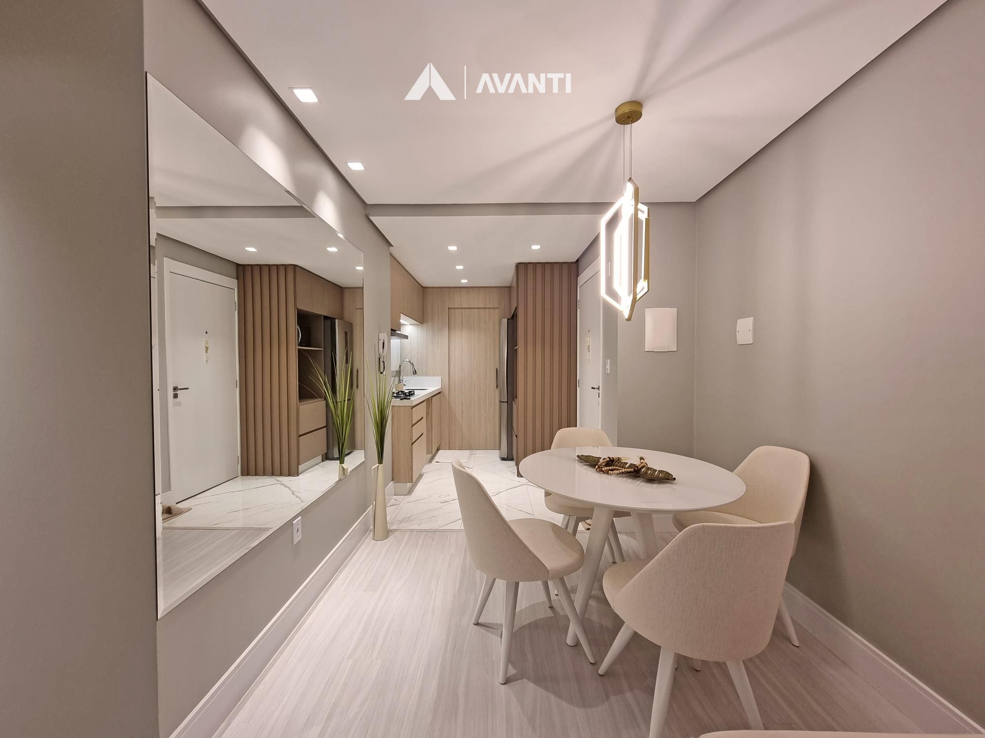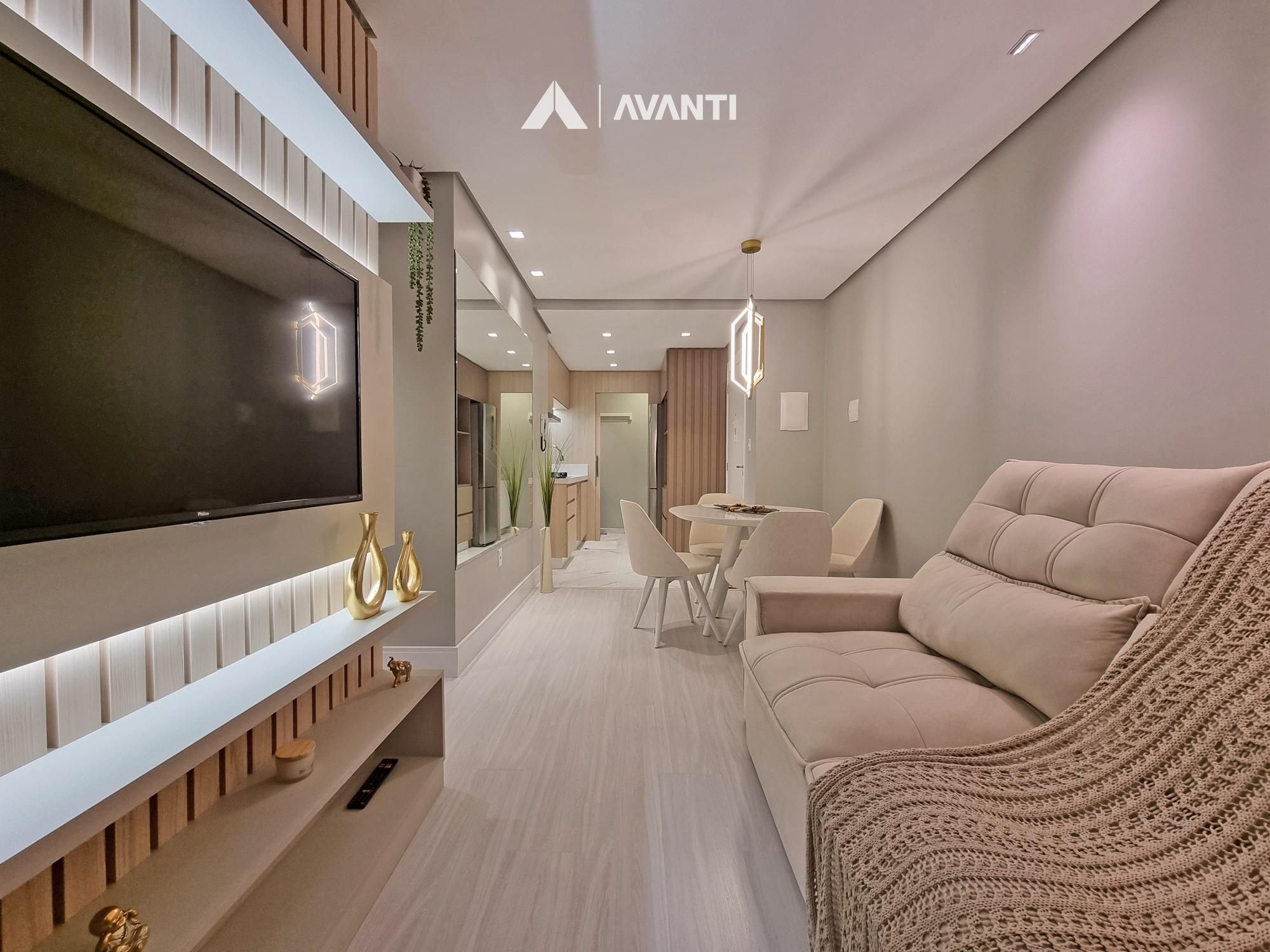 Living em conceito aberto, sala de jantar, sala de estar, sacada gourmet com fechamento reiki, cozinha, área de serviço e banheiro social.