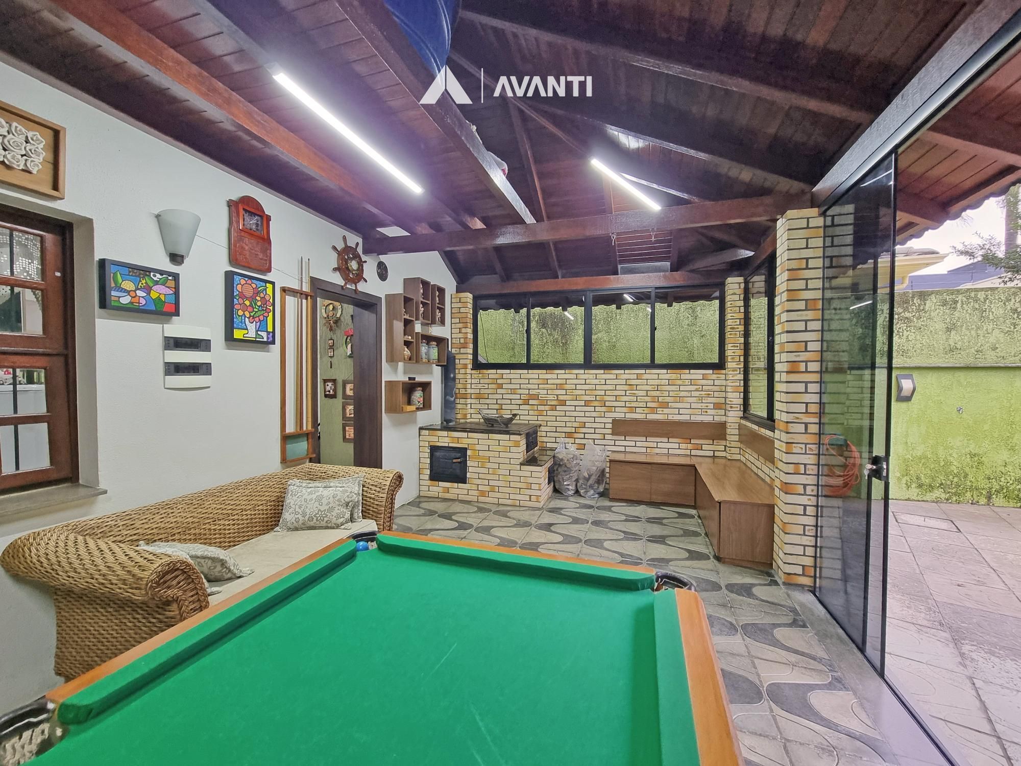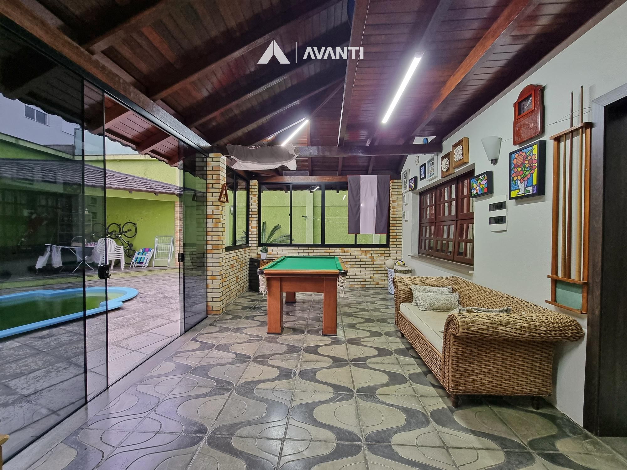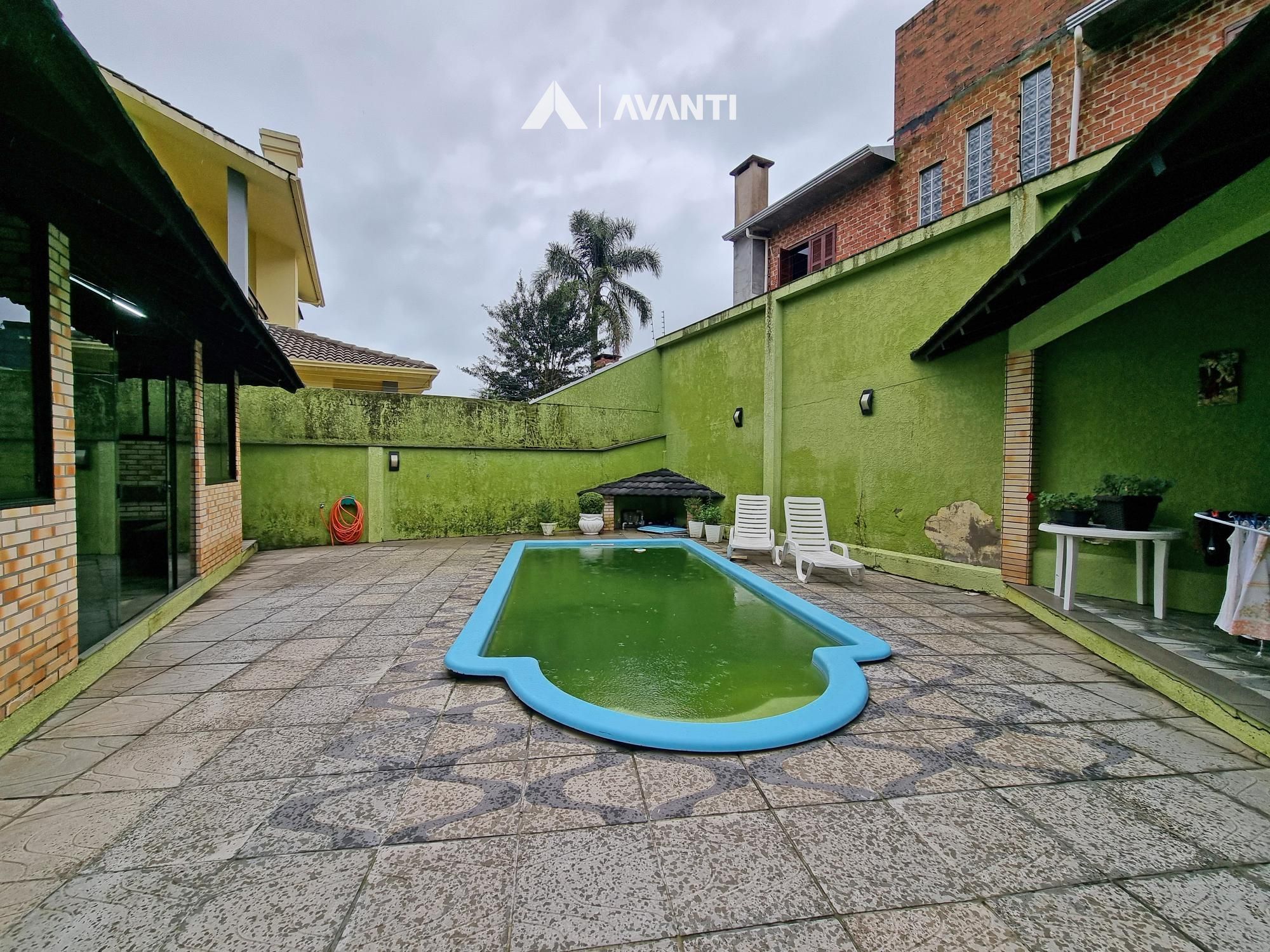1º Pavimento: Garagem para 2 carros, escritório, banheiro, espaço gourmet, sala de jogos com fogão campeiro, pátio com piscina e canil.