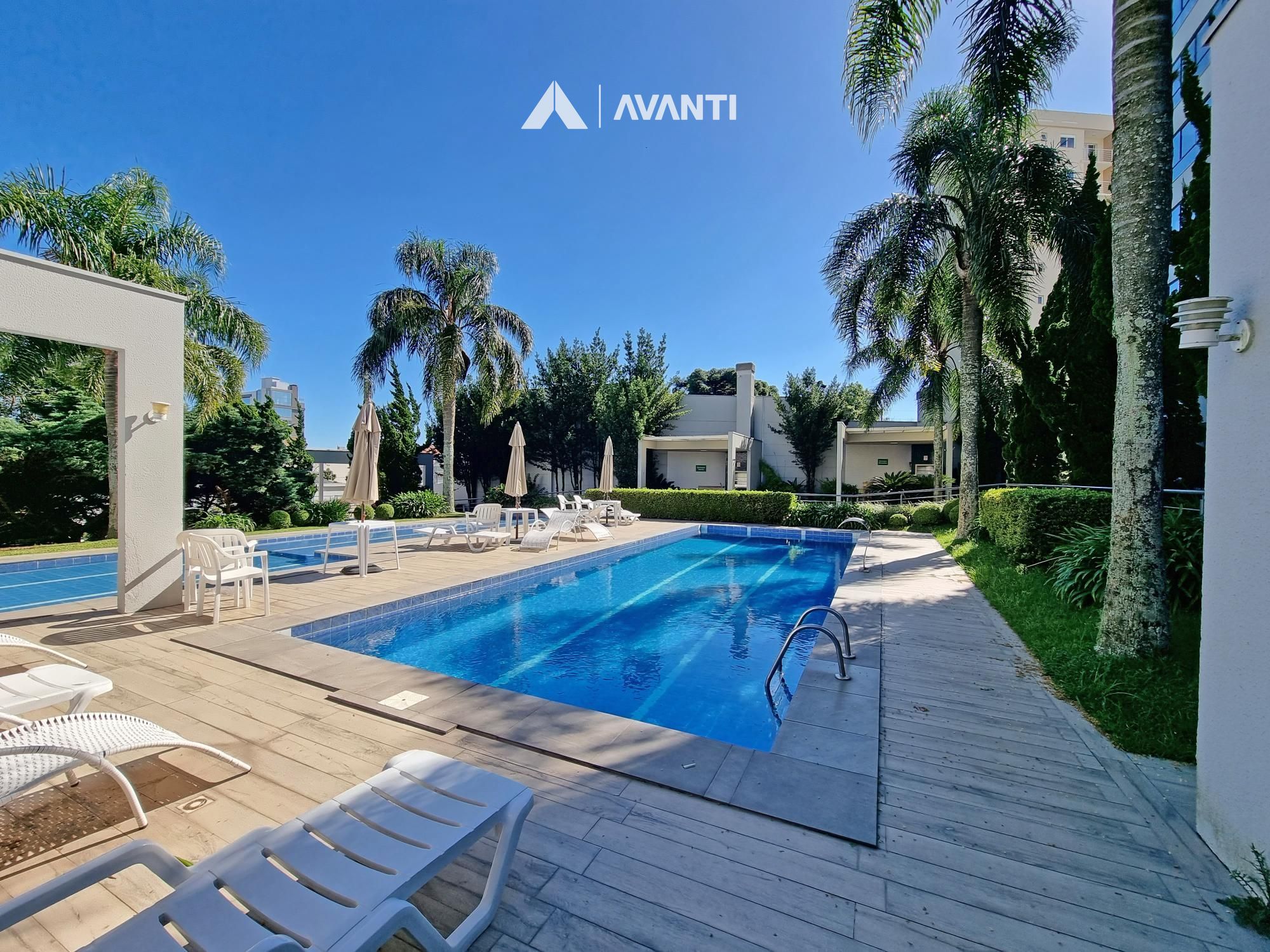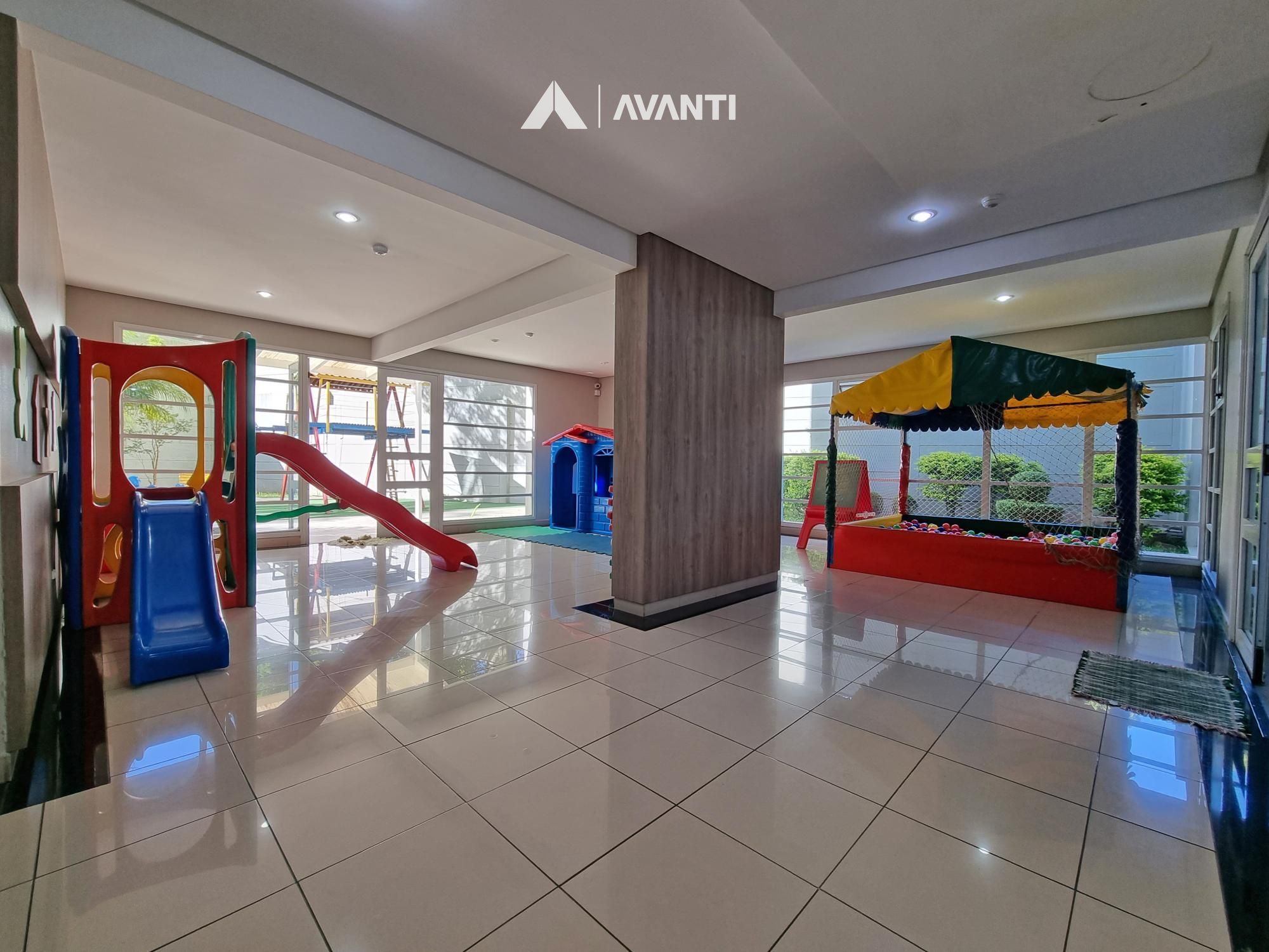 Condomínio com segurança 24 horas, jardim, 2 piscinas, academia, 2 salões de festas, espaço kids, sala de jogos e cinema.