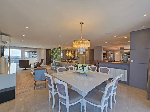 Finamente mobiliado e equipado, dispõe de 249m² privativos, 3 suítes sendo 1 máster com sacada e vaga individual para 4 carros + deposito.