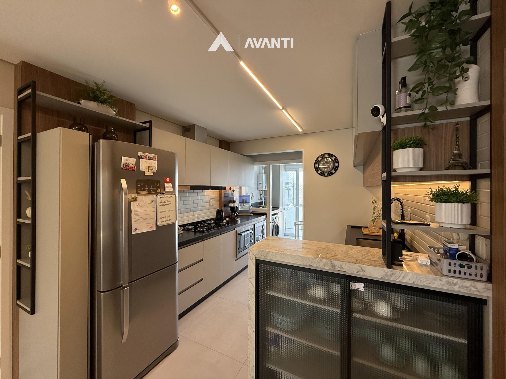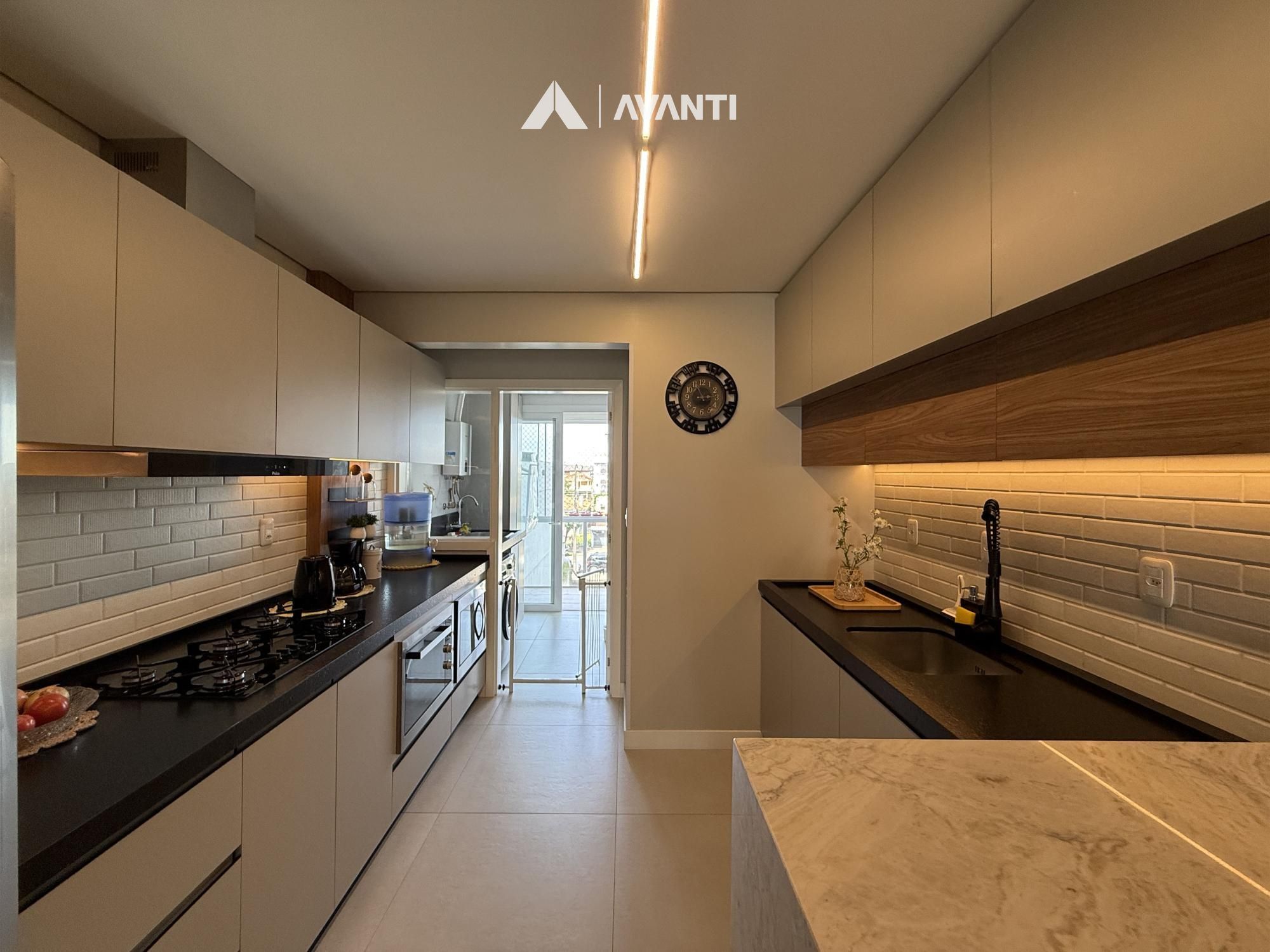 São 110 m² privativos distribuídos em três dormitórios, sendo uma suíte, além de duas vagas de garagem. O living amplo integra estar social e sala de jantar com ótima circulação entre os ambientes. A sacada gourmet fechada complementa a área social e amplia as possibilidades para receber. A cozinha com bancada oferece funcionalidade no dia a dia, acompanhada de área de serviço independente com sacada própria com fechamento reiki e banheiro social.