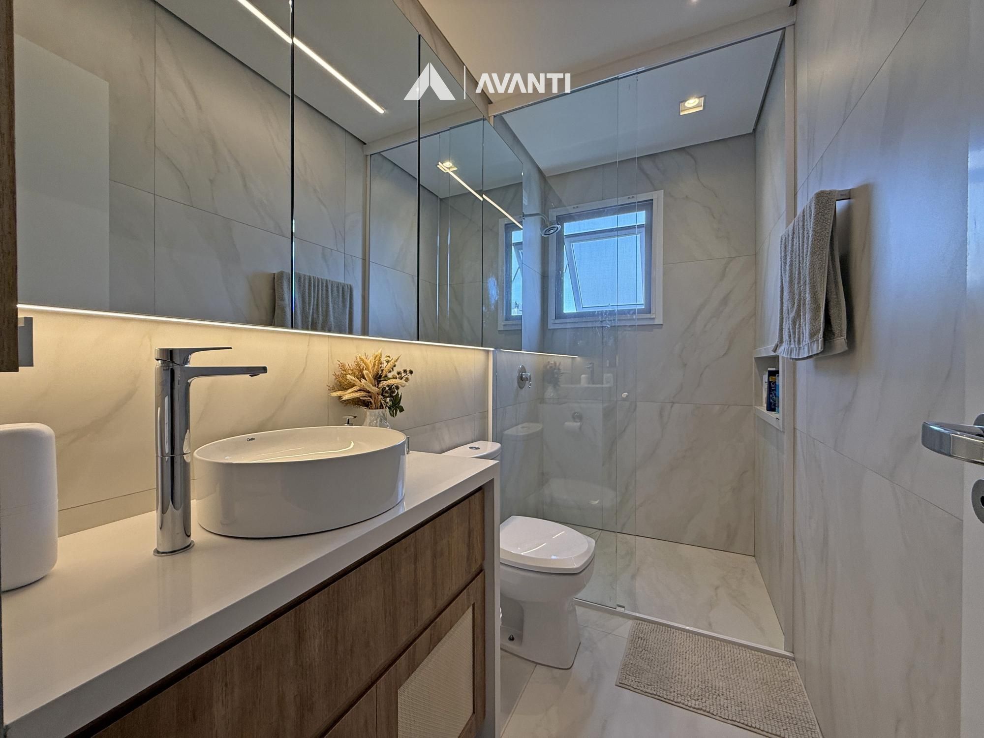 O padrão construtivo reforça a qualidade do imóvel: aberturas em PVC, splits e aquecedor de passagem, piso laminado nas áreas íntimas e porcelanato nas áreas sociais, garantindo conforto térmico e durabilidade.