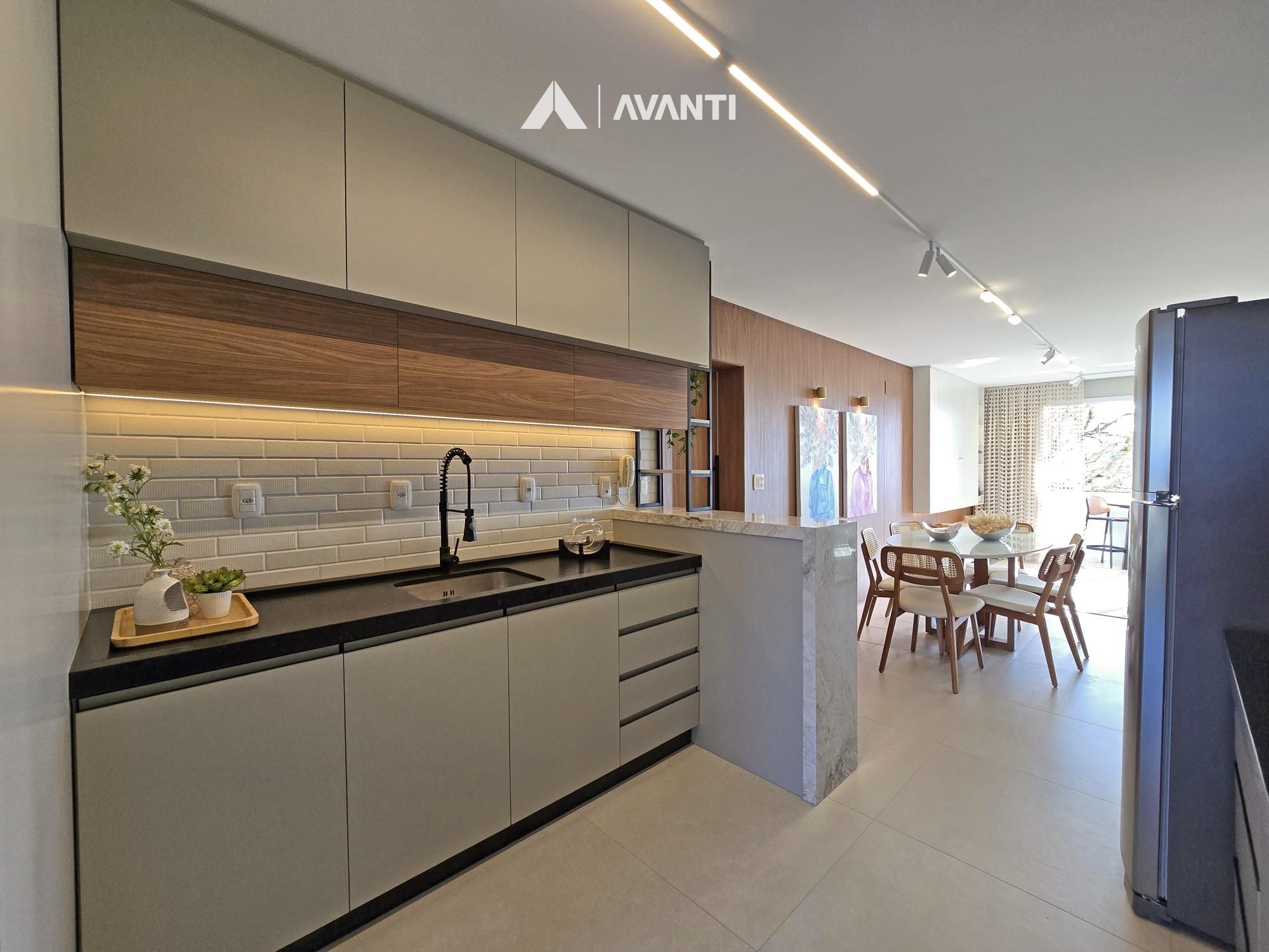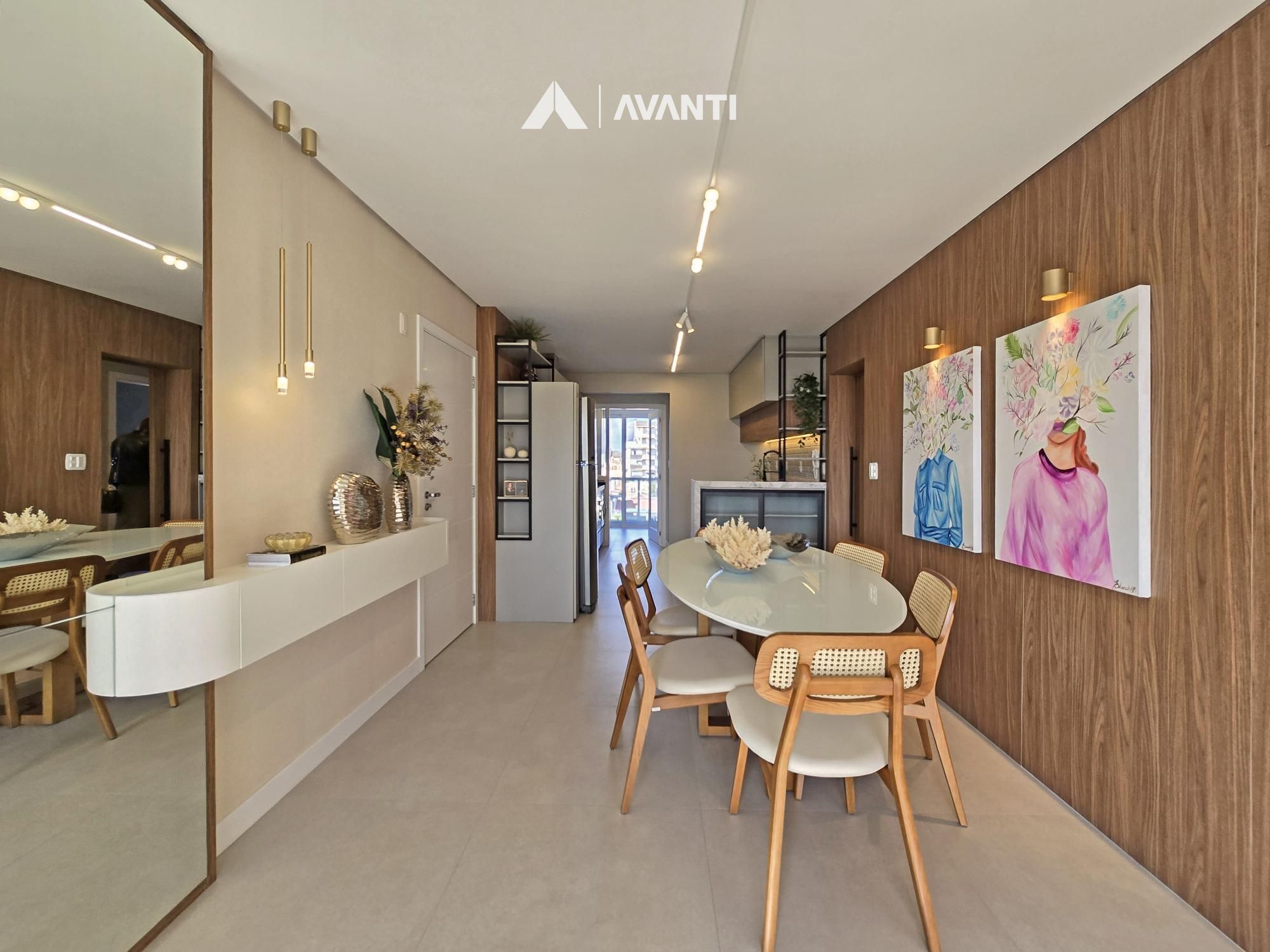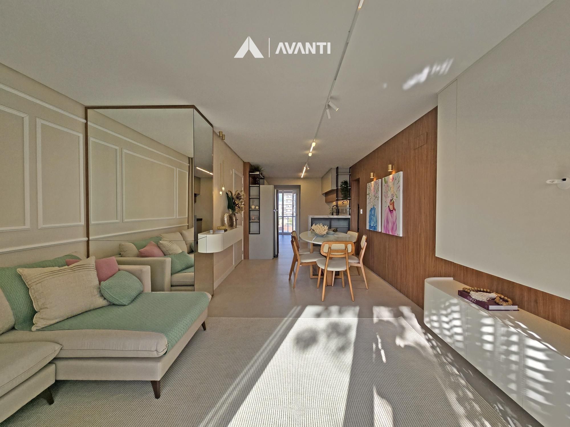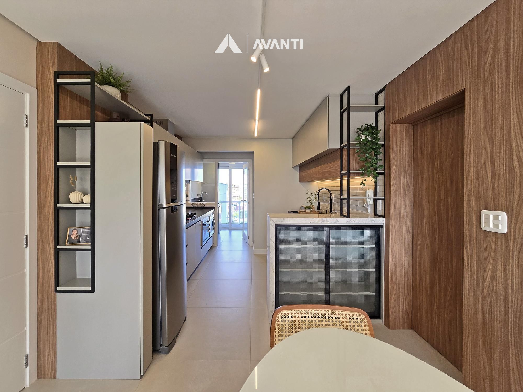 São 110 m² privativos distribuídos em três dormitórios, sendo uma suíte, além de duas vagas de garagem. O living amplo integra estar social e sala de jantar com ótima circulação entre os ambientes. A sacada gourmet fechada complementa a área social e amplia as possibilidades para receber. A cozinha com bancada oferece funcionalidade no dia a dia, acompanhada de área de serviço independente com sacada própria com fechamento reiki e banheiro social.