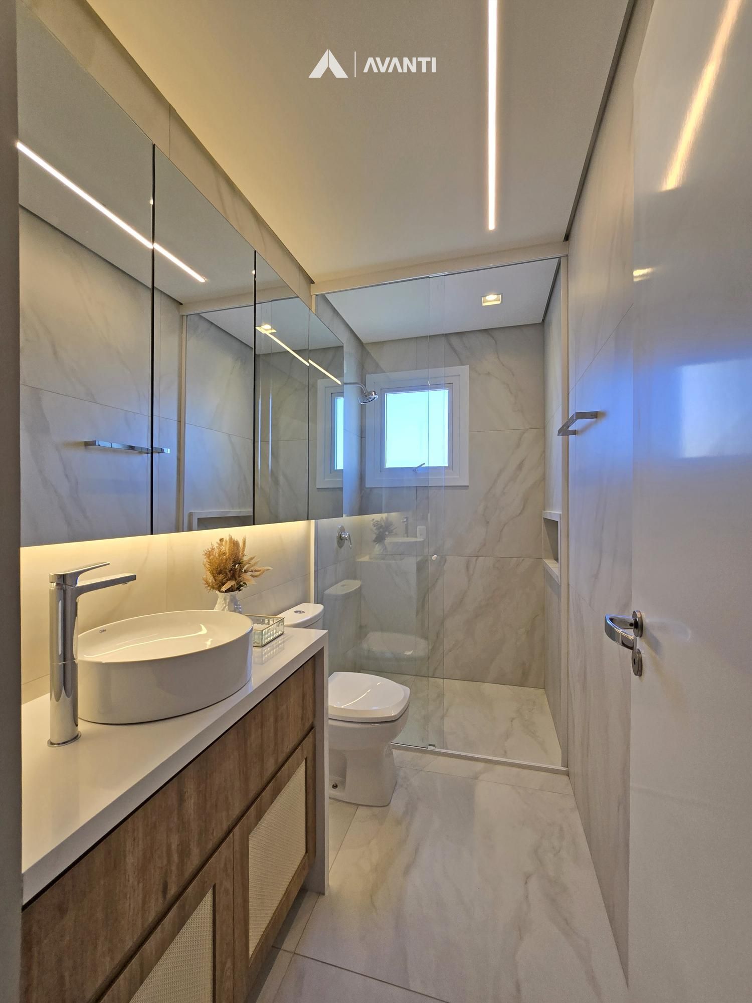 O padrão construtivo reforça a qualidade do imóvel: aberturas em PVC, splits e aquecedor de passagem, piso laminado nas áreas íntimas e porcelanato nas áreas sociais, garantindo conforto térmico e durabilidade.