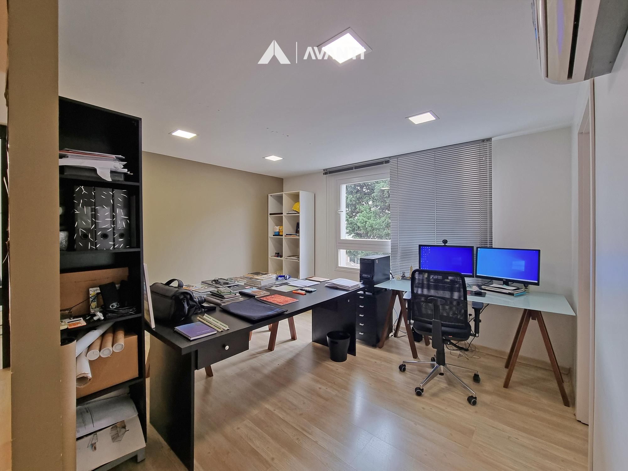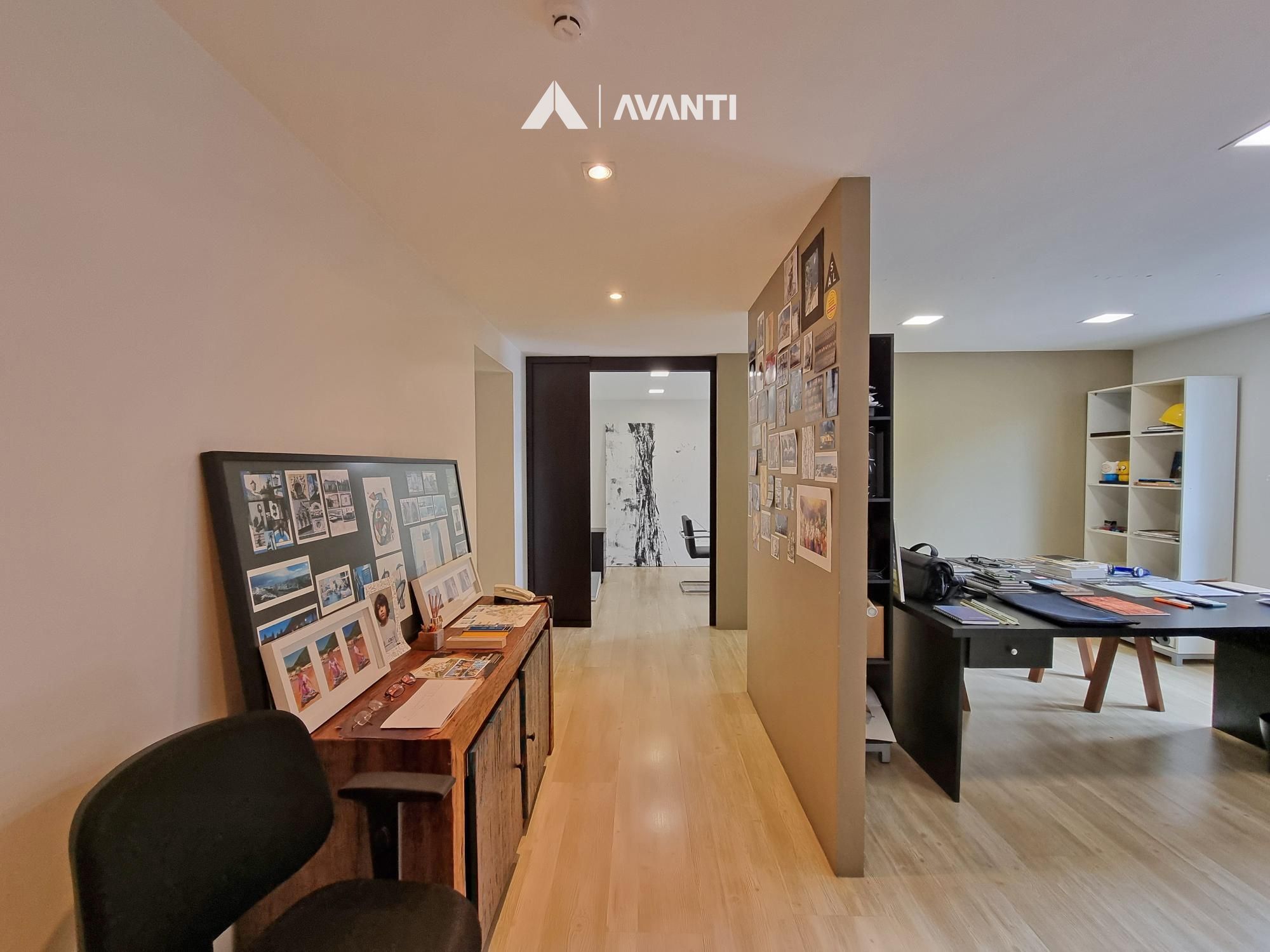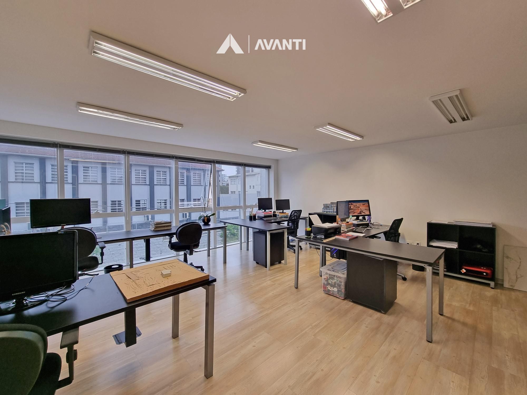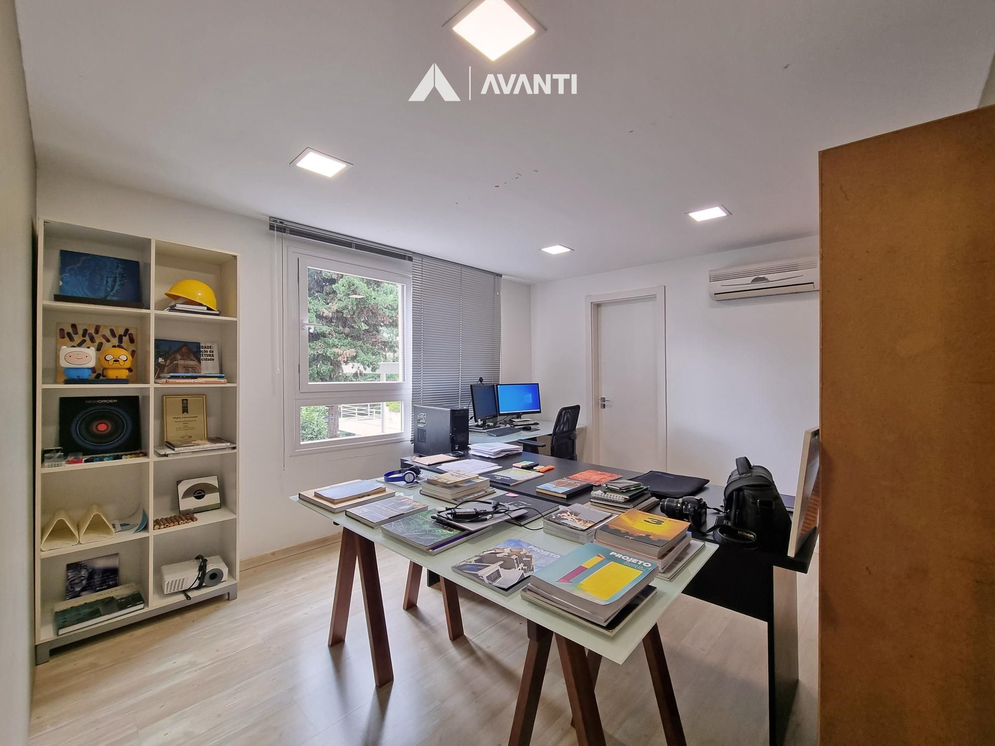 Sala de reuniões, escritório, 2 lavabos e 1 vaga de garagem.