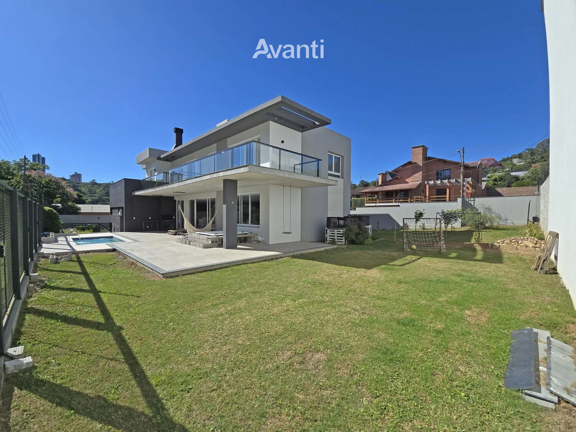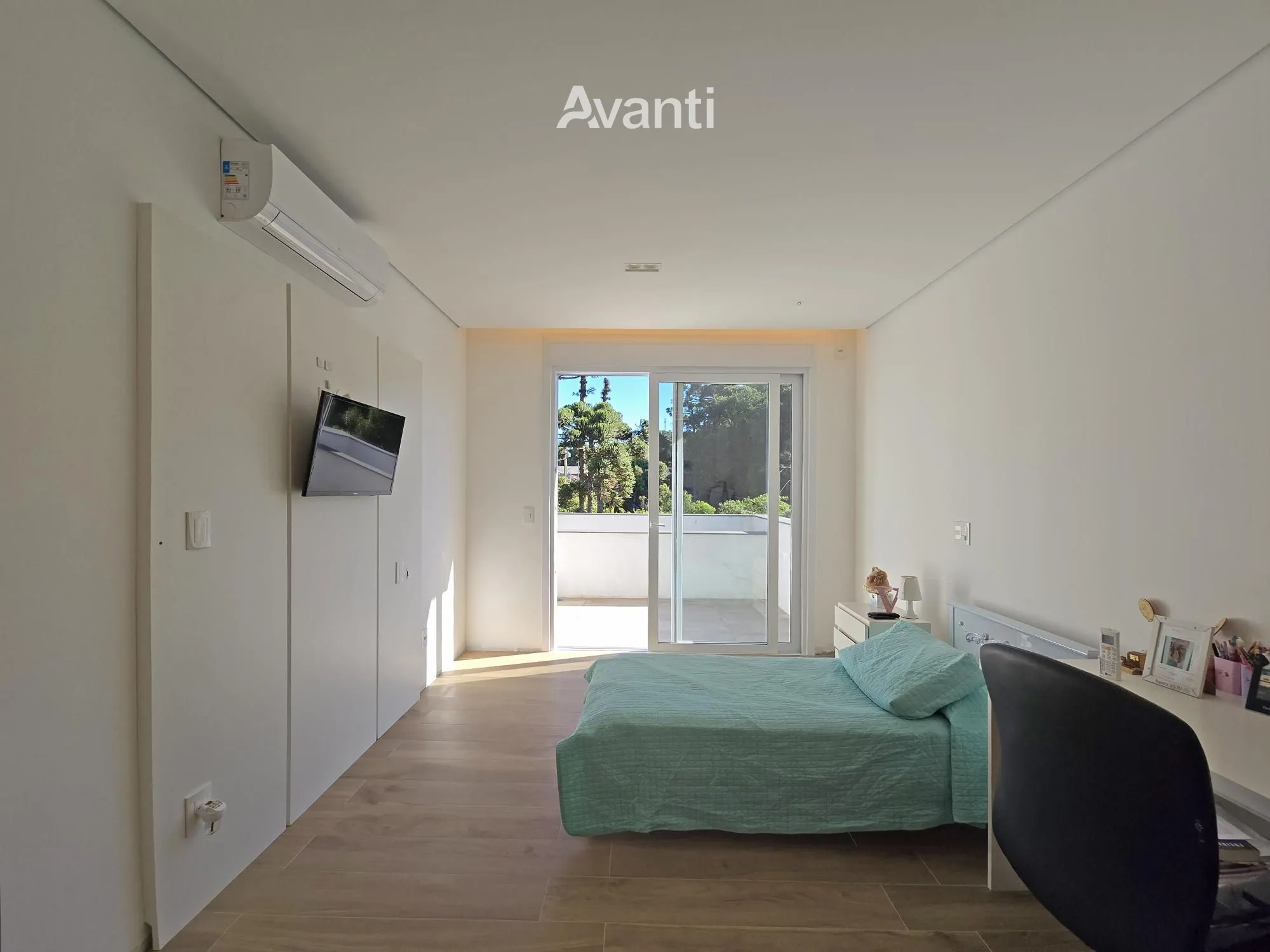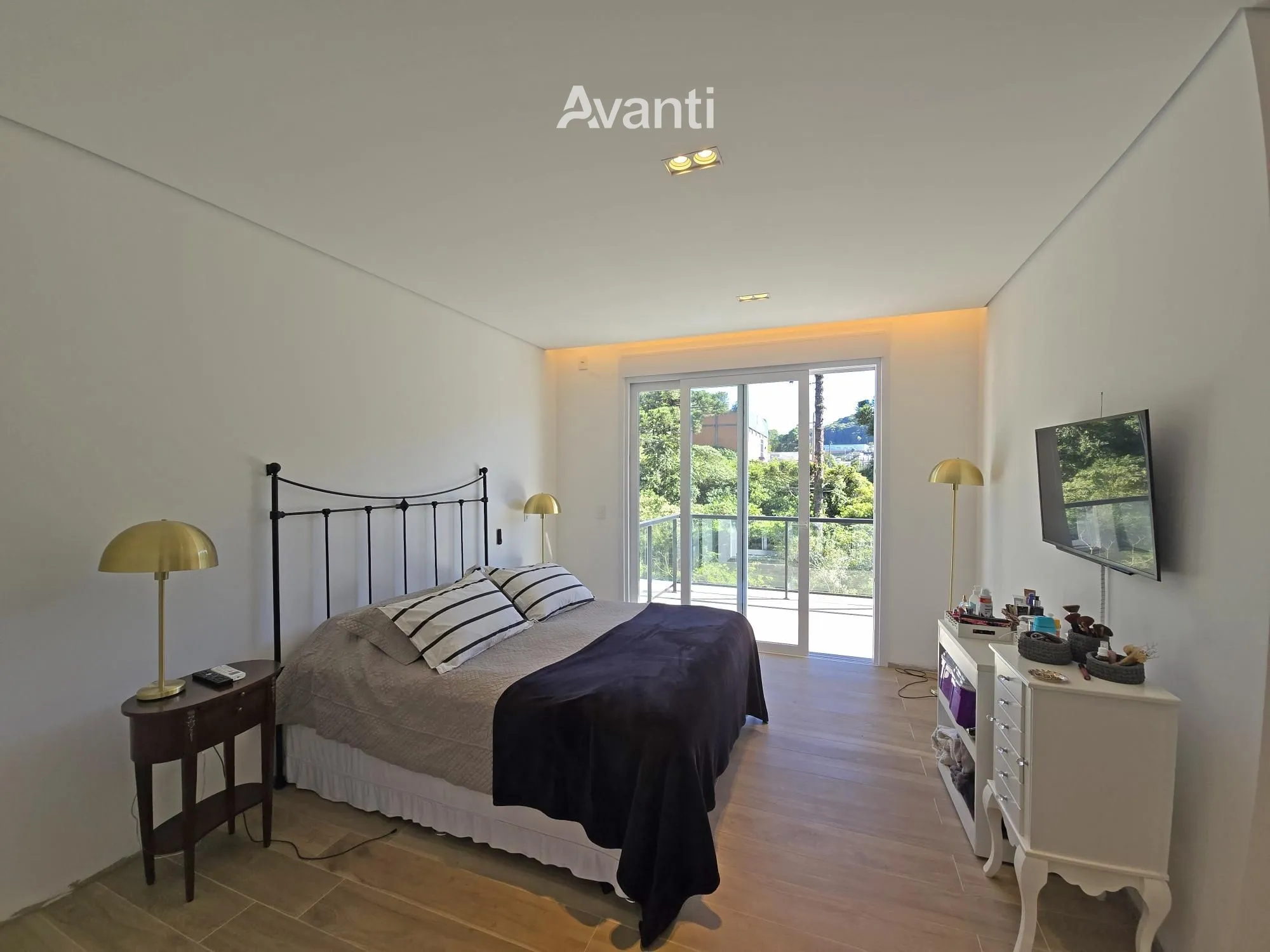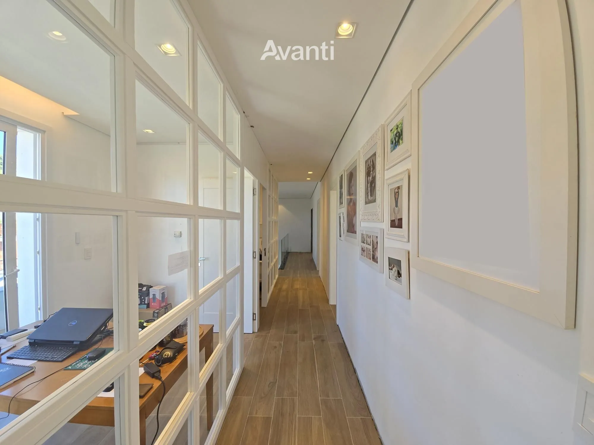 Edificada em terreno de 883m², dispõe de 450m² privativos e 4 suítes com sacada.