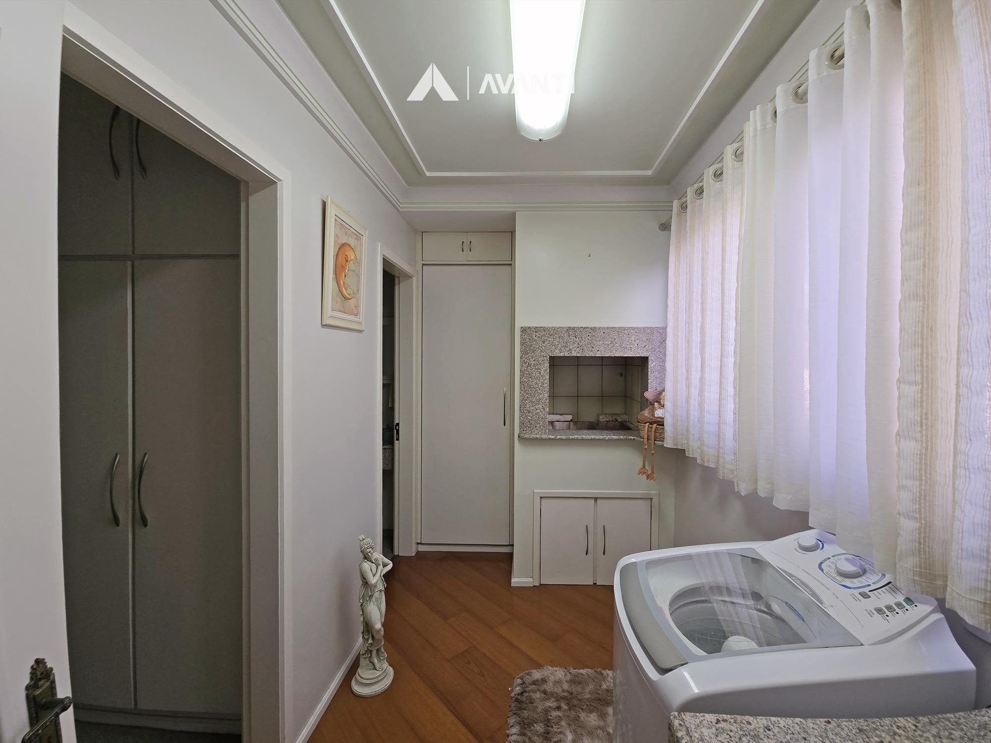 Condomínio de construção familiar, com piscina térmica, 2 salões de festas, ofurô e sauna, possui ar condicionado para parte da piscina, apartamento com depósito na garagem.