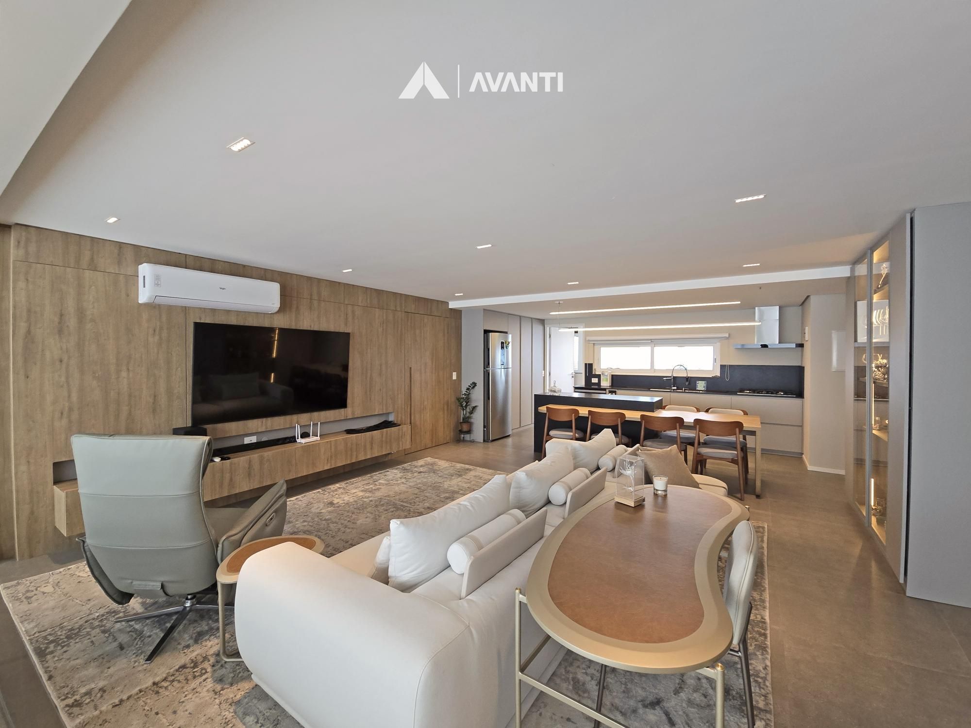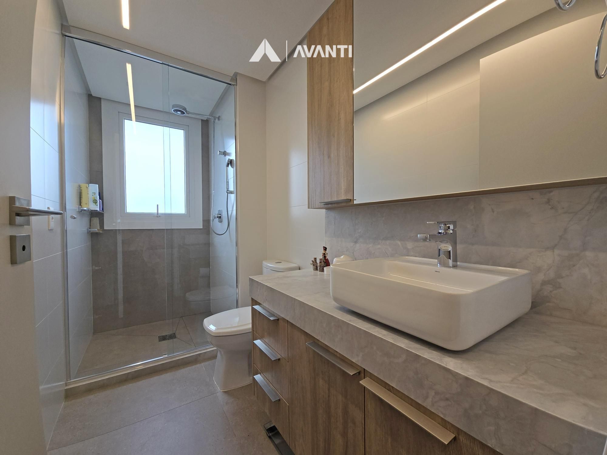 Com 156m² privativos, dispõe de 3 suítes sendo 2 americanas e vaga para 3 carros.