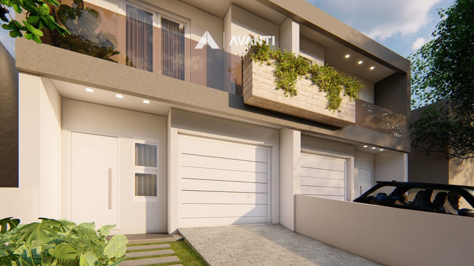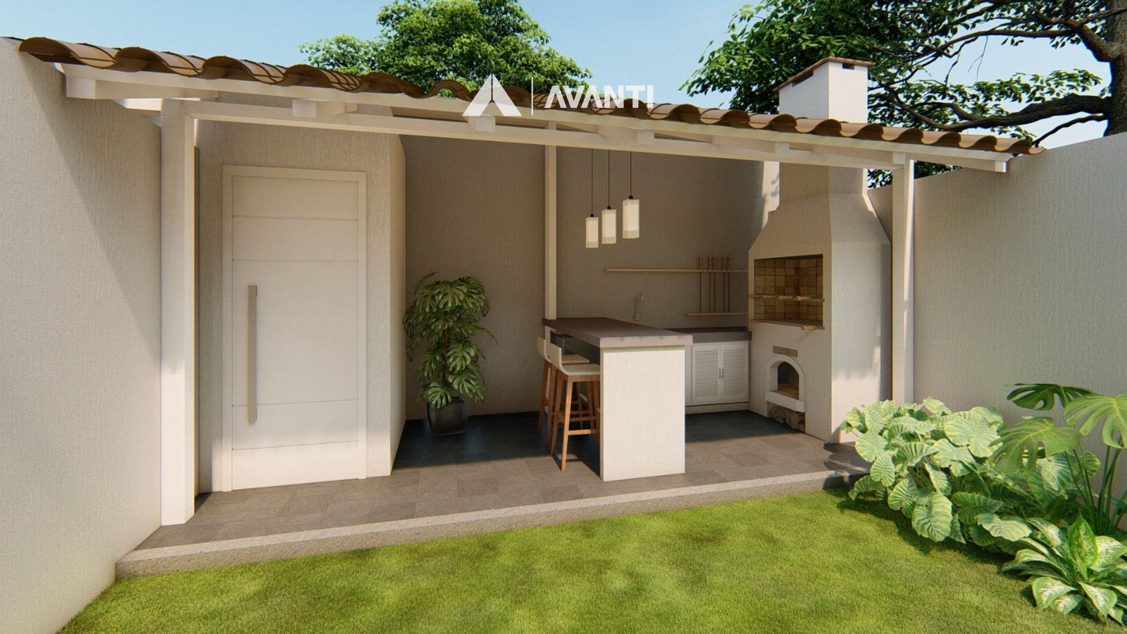 Conta com 147m² privativos, sala, cozinha, lavanderia, garagem fechada para 1 carro + pátio frente, espaço no fundo com quiosque.