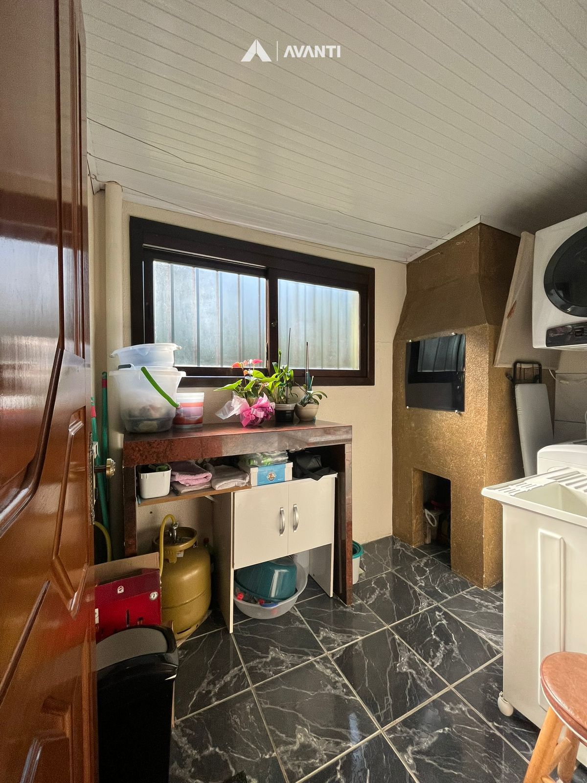 1° pavimento: garagem para 1 carro, cozinha, área de serviço com churrasqueira, sala de estar e jantar integradas, lavabo.