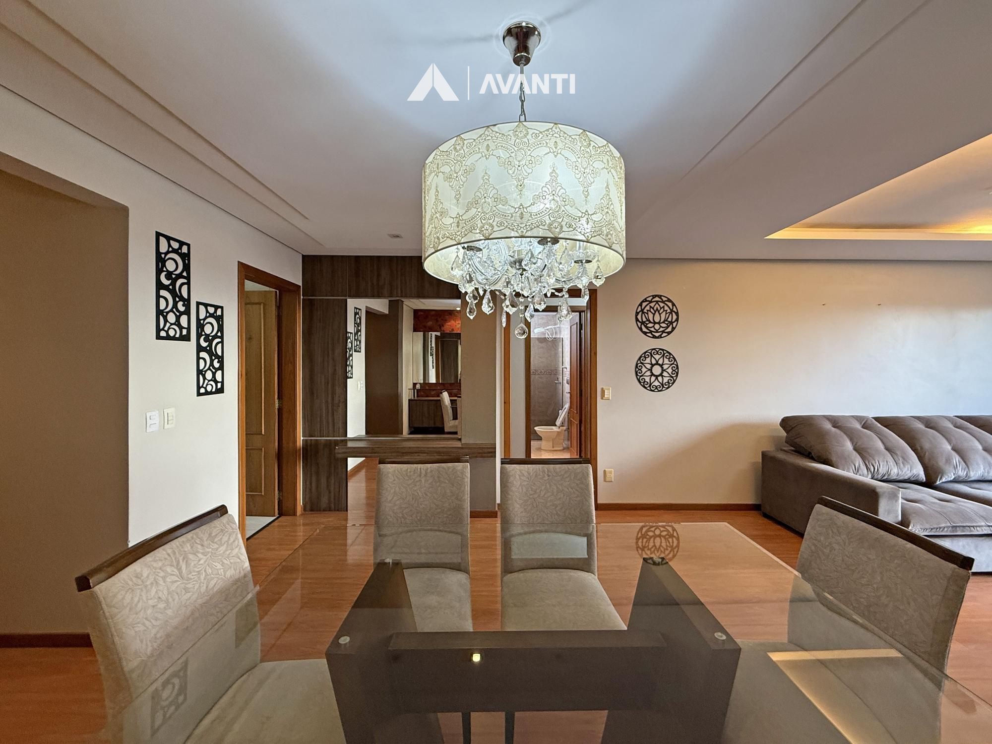 Com 115 m² privativos, o imóvel é mobiliado e equipado, pronto para morar. Ao entrar, você encontra um living integrado, que acomoda estar social e jantar de forma prática e agradável. A sacada fechada amplia o ambiente e garante mais comodidade em todas as estações.