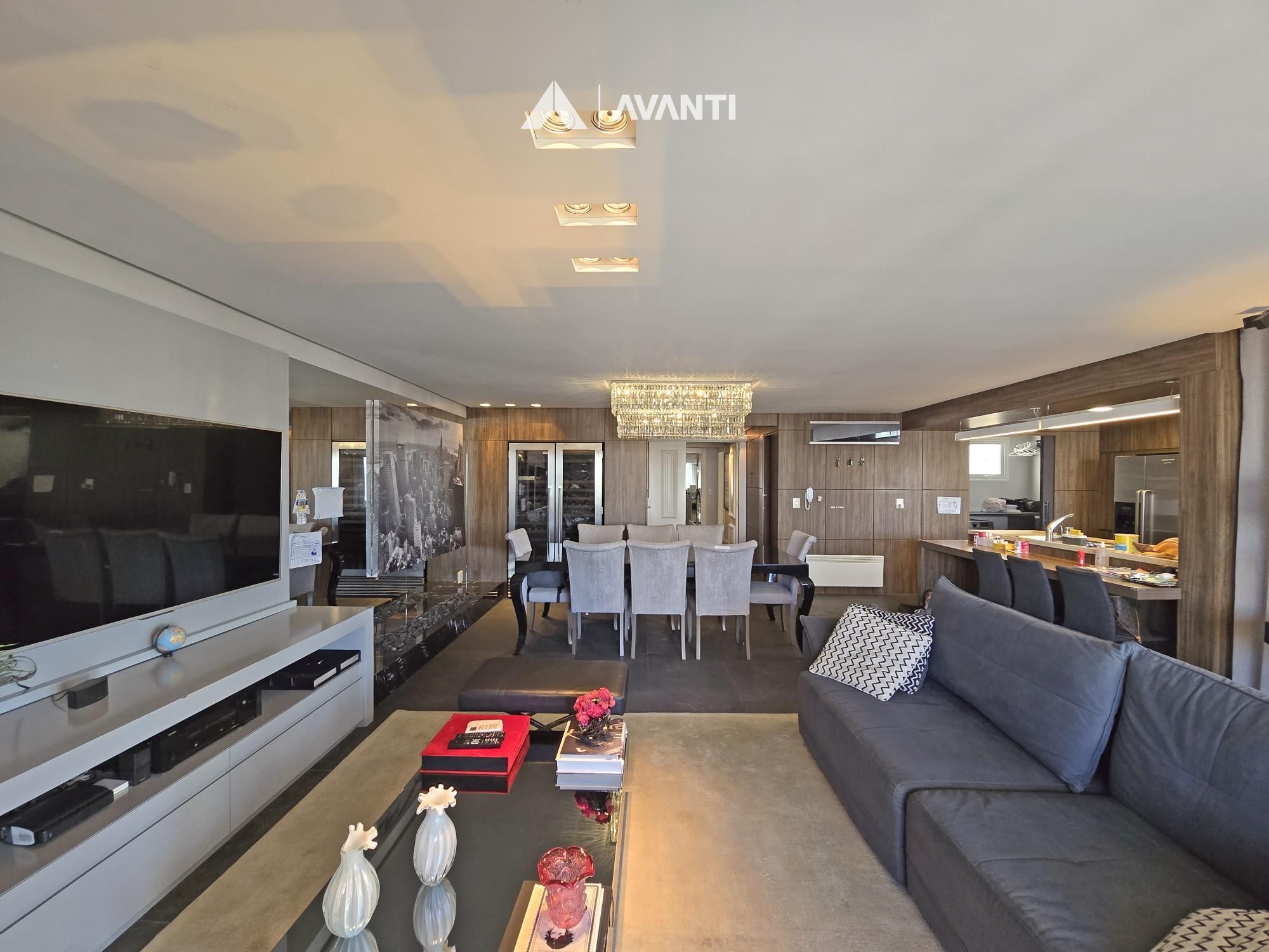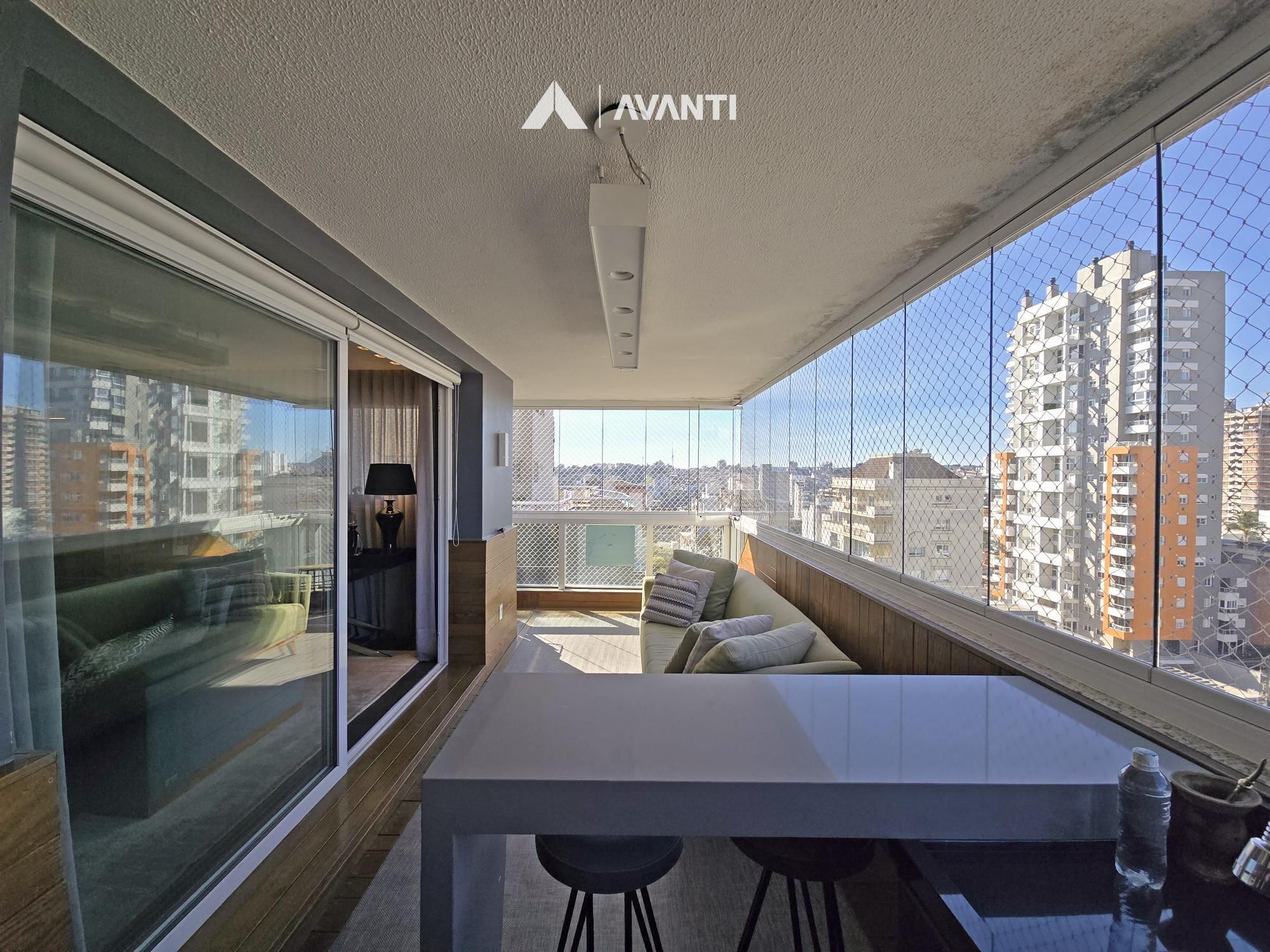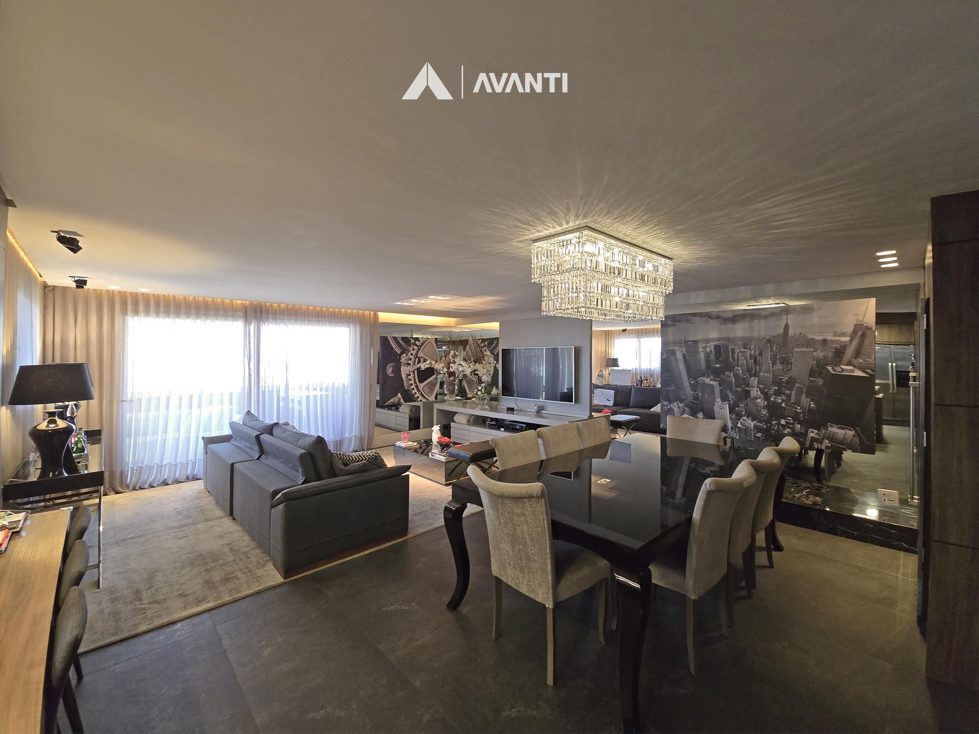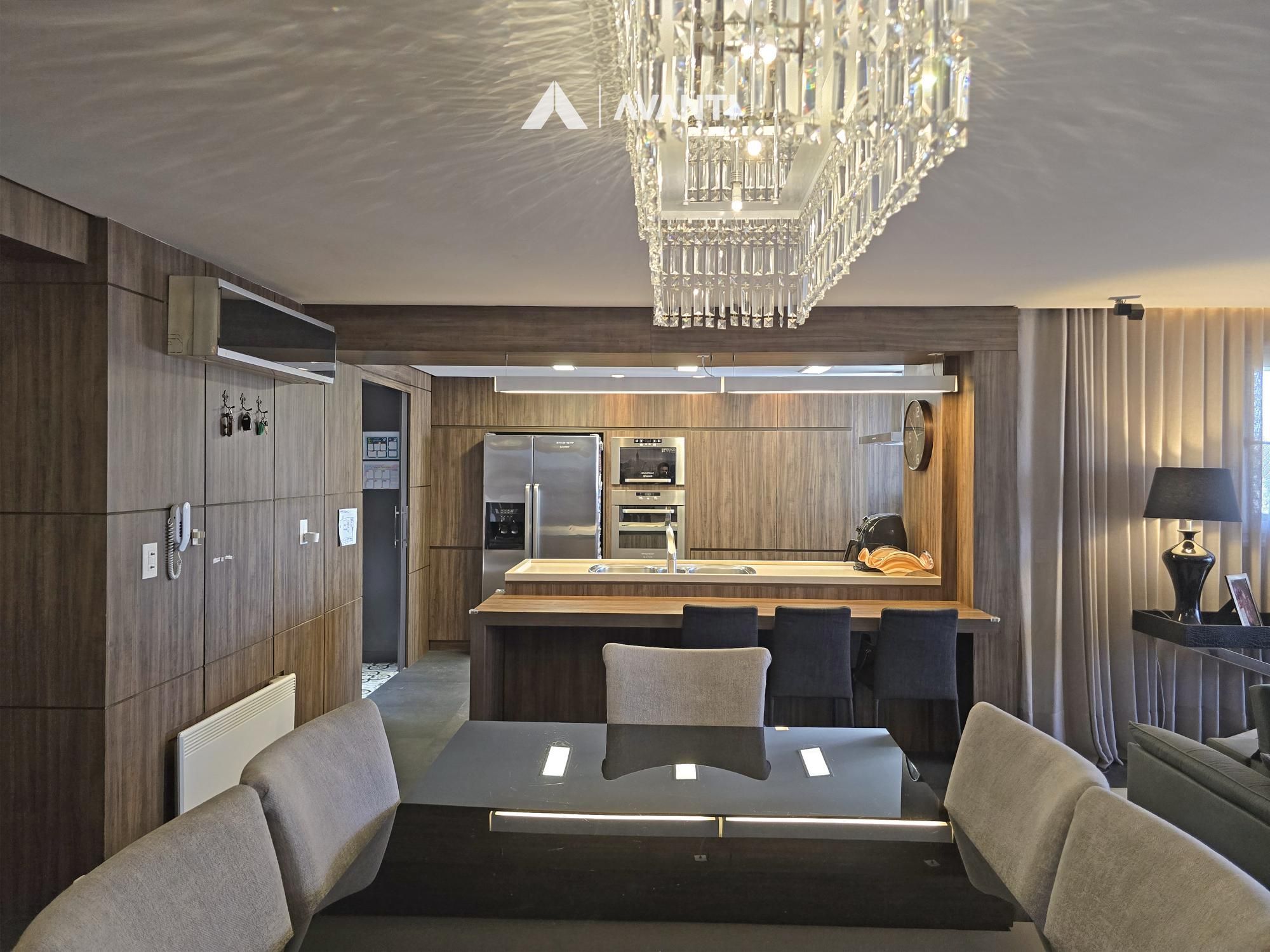 Com 195m² privativos, oferece 2 suítes amplas – sendo uma máster com banheira – e 3 vagas de garagem. Possui hall de entrada imponente com lavabo, sala de jantar com lareira integrada à sala de estar, cozinha com bancada, ampla sacada gourmet com fechamento reiki e área de serviço separada. Conta ainda com aberturas em PVC com vidros duplos, splits e aquecedor de passagem instalados, espera para calefação, piso laminado e porcelanato.