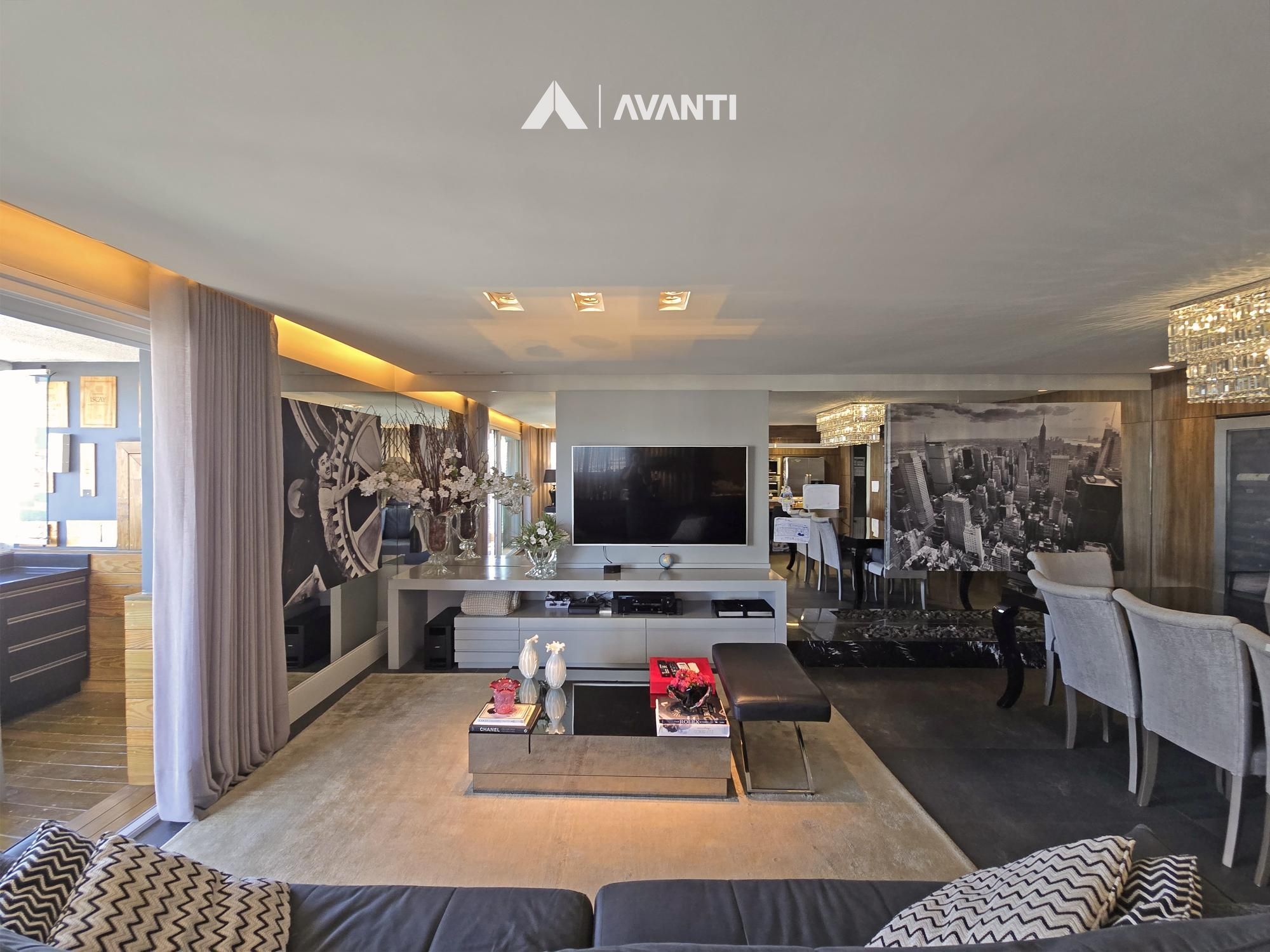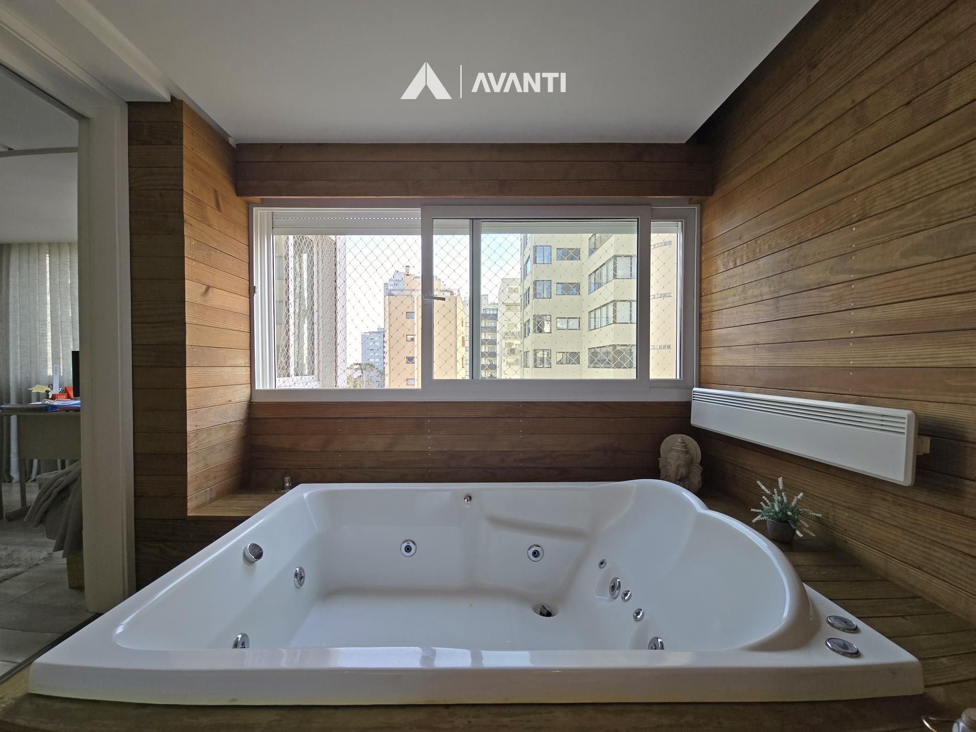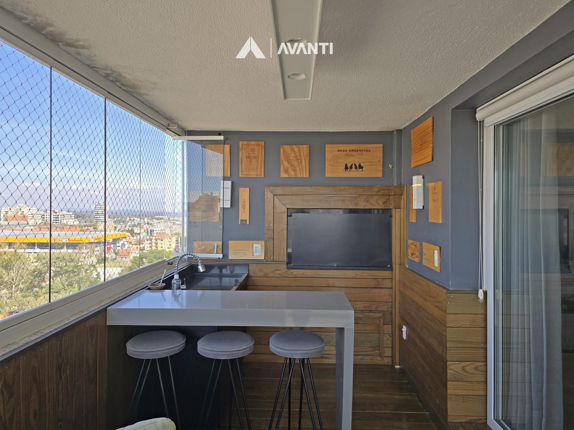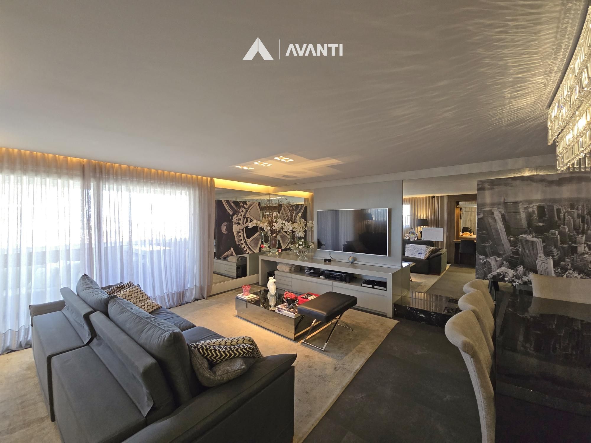 Com 195m² privativos, oferece 2 suítes amplas – sendo uma máster com banheira – e 3 vagas de garagem. Possui hall de entrada imponente com lavabo, sala de jantar com lareira integrada à sala de estar, cozinha com bancada, ampla sacada gourmet com fechamento reiki e área de serviço separada. Conta ainda com aberturas em PVC com vidros duplos, splits e aquecedor de passagem instalados, espera para calefação, piso laminado e porcelanato.