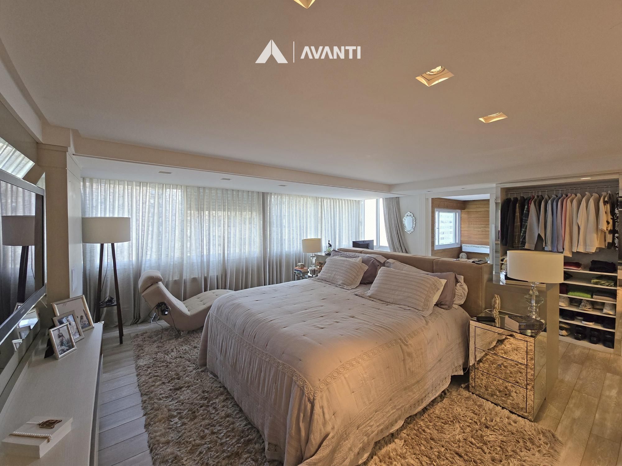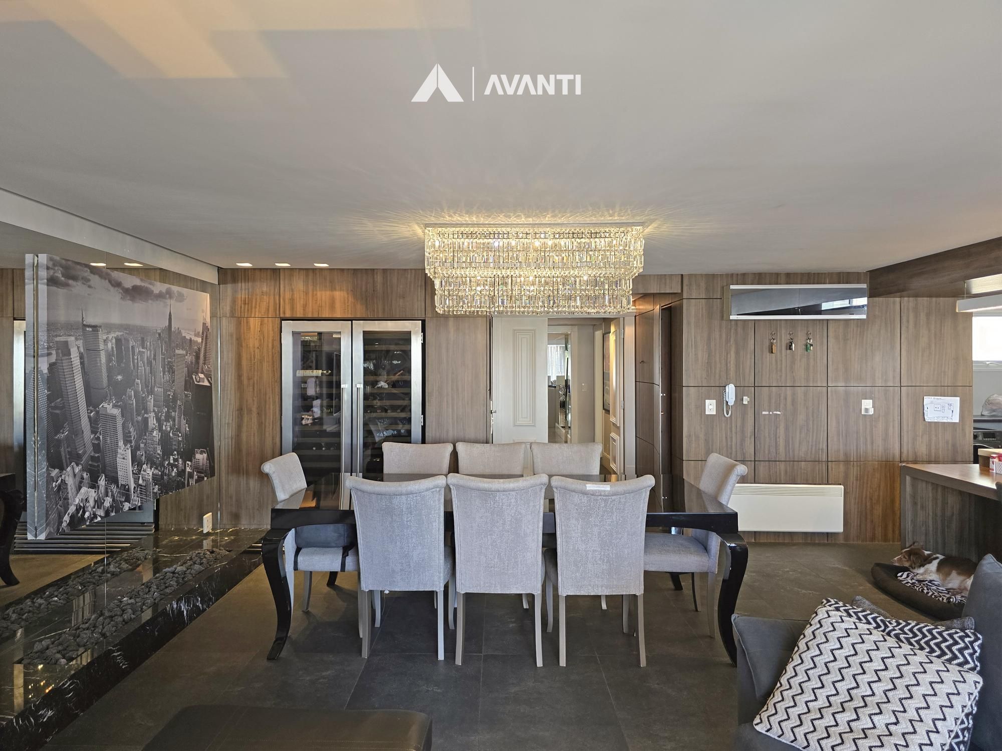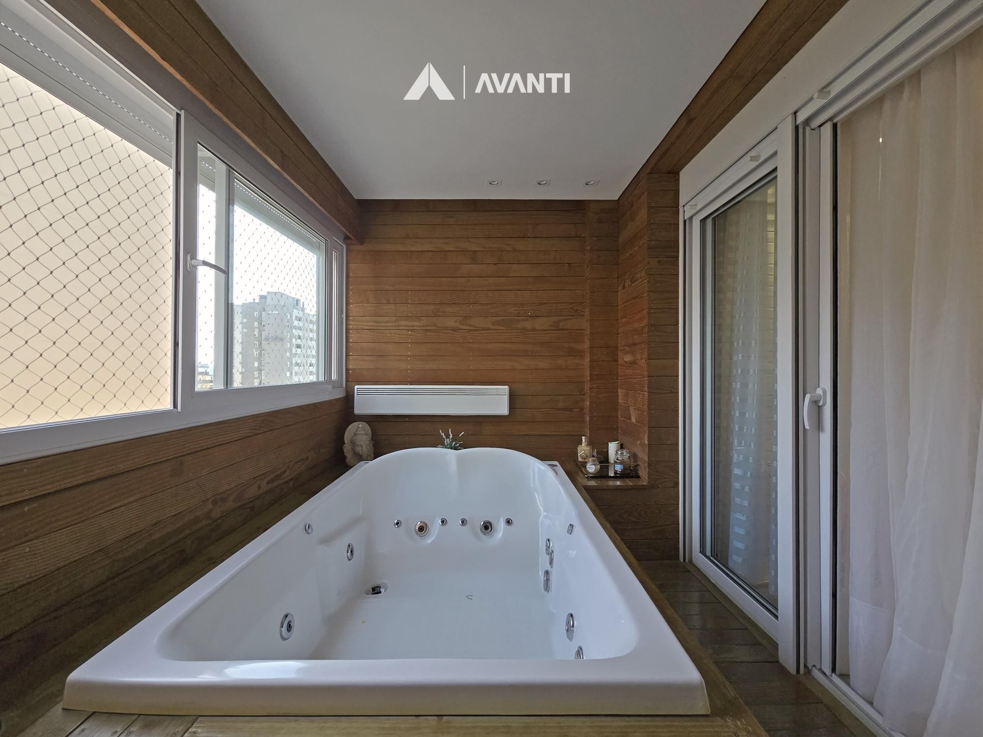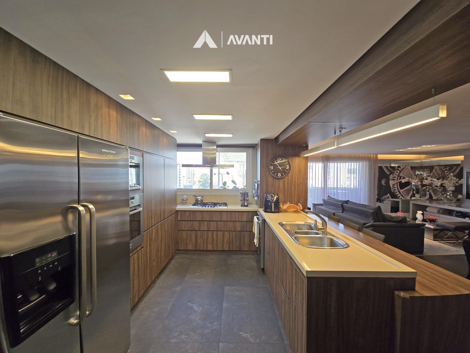 Com 195m² privativos, oferece 2 suítes amplas – sendo uma máster com banheira – e 3 vagas de garagem. Possui hall de entrada imponente com lavabo, sala de jantar com lareira integrada à sala de estar, cozinha com bancada, ampla sacada gourmet com fechamento reiki e área de serviço separada. Conta ainda com aberturas em PVC com vidros duplos, splits e aquecedor de passagem instalados, espera para calefação, piso laminado e porcelanato.