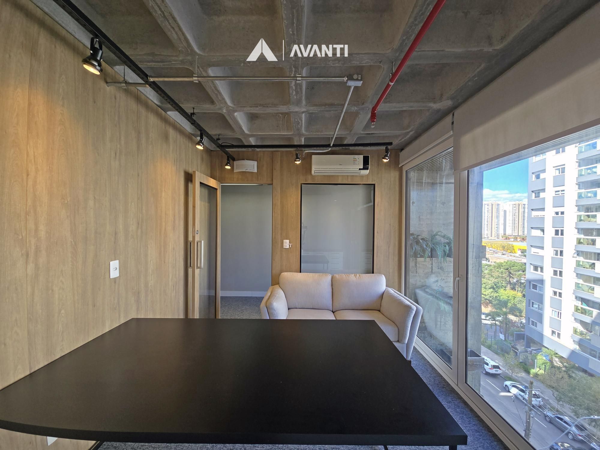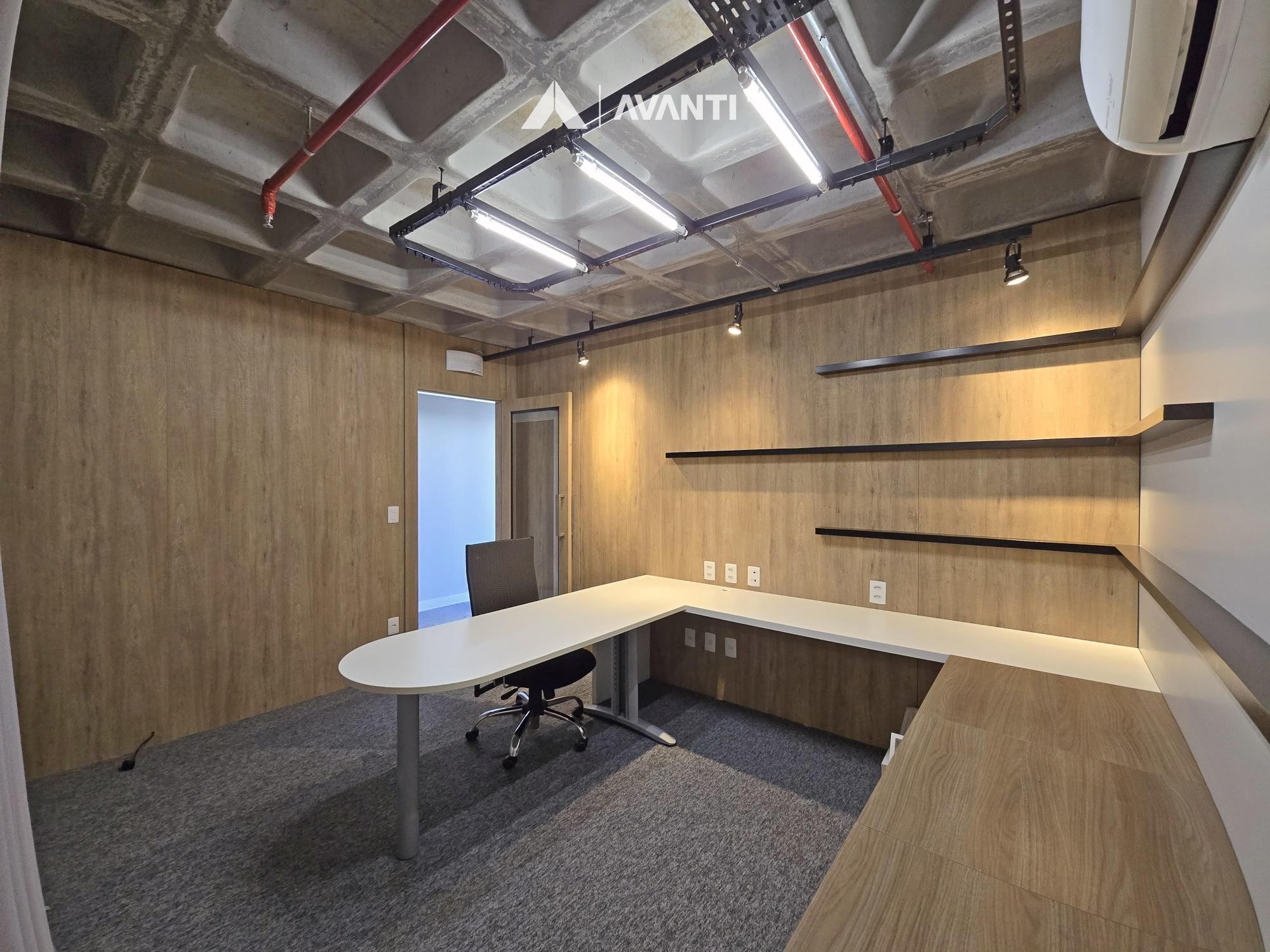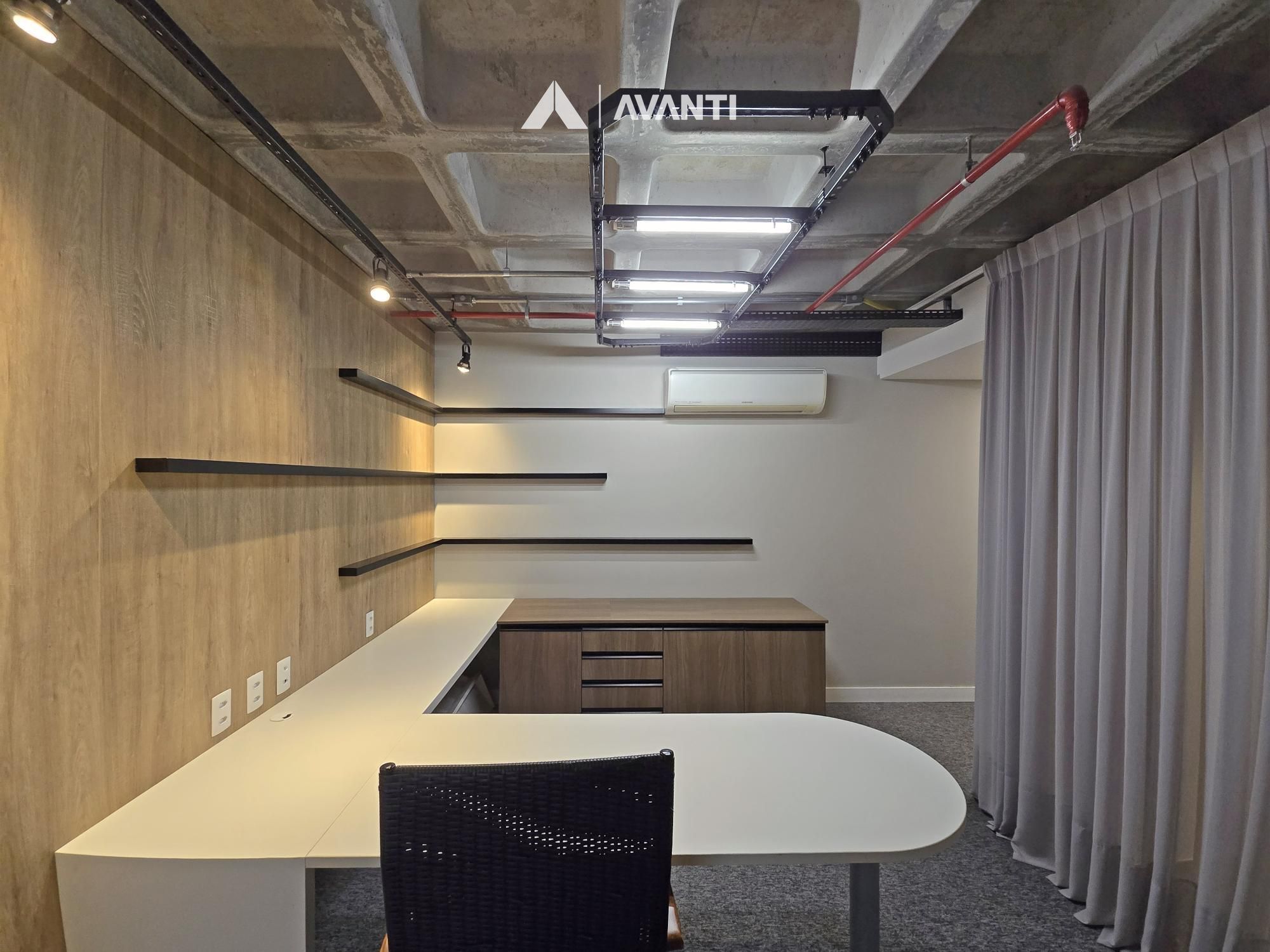 Composta por aberturas em PVC com vidros duplos, oferecendo excelente conforto temo acústico, piso em porcelanato e carpete, splits instalados, iluminação e persianas automatizadas.