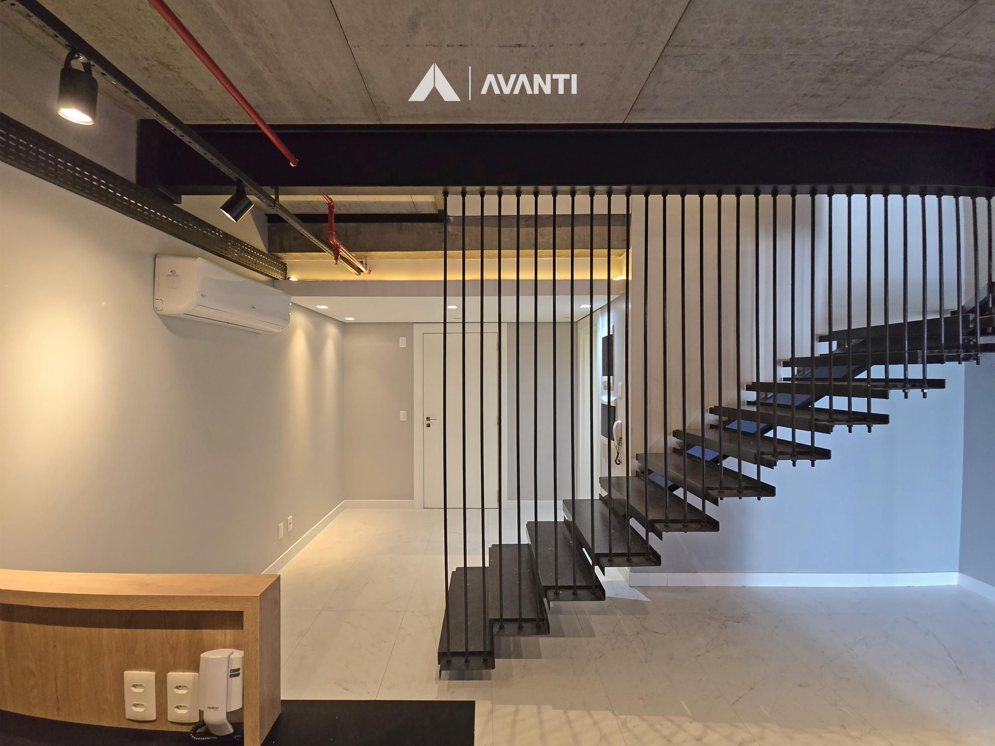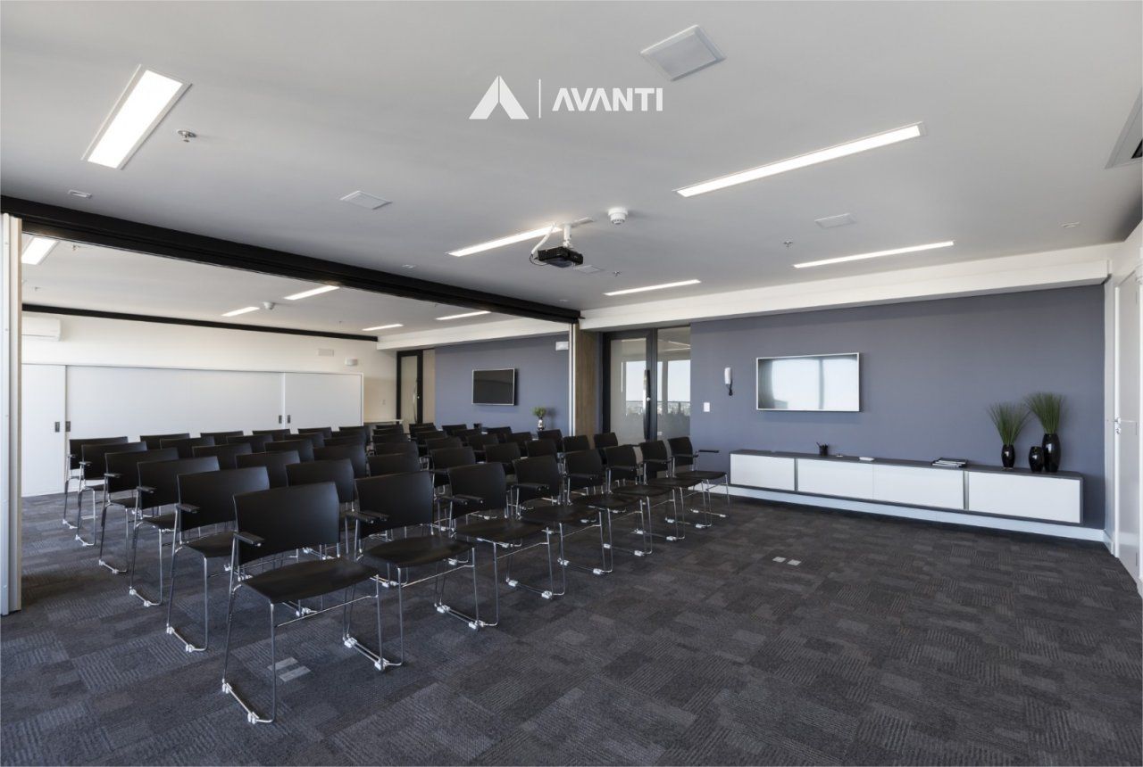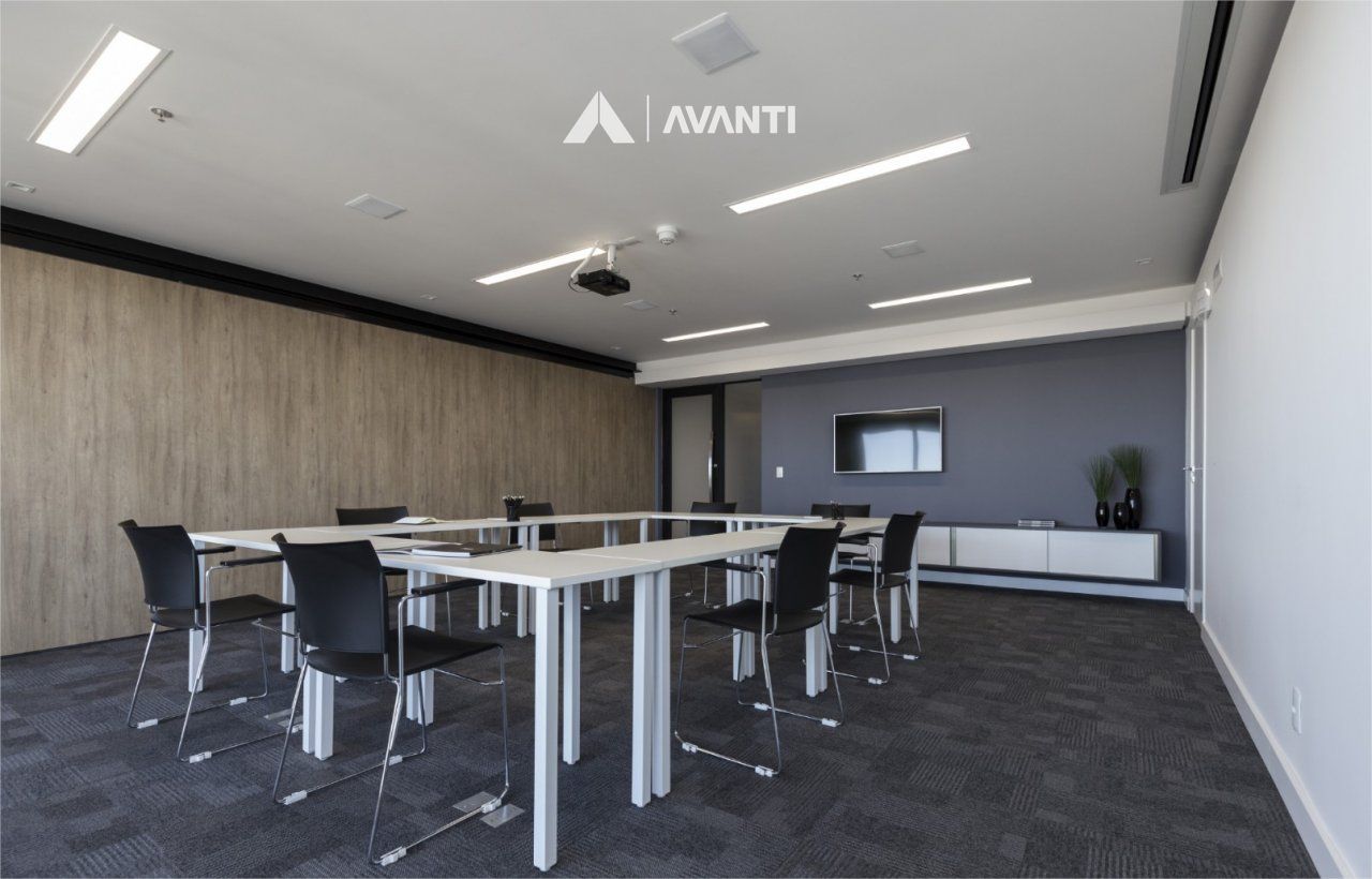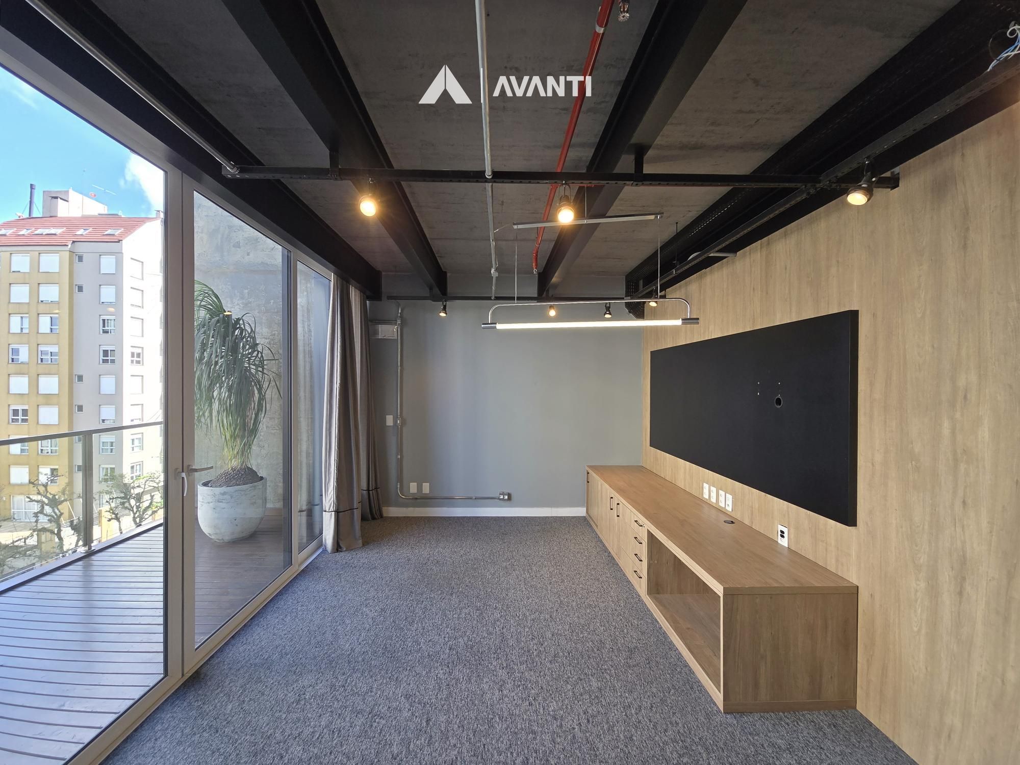 Composta por aberturas em PVC com vidros duplos, oferecendo excelente conforto temo acústico, piso em porcelanato e carpete, splits instalados, iluminação e persianas automatizadas.
