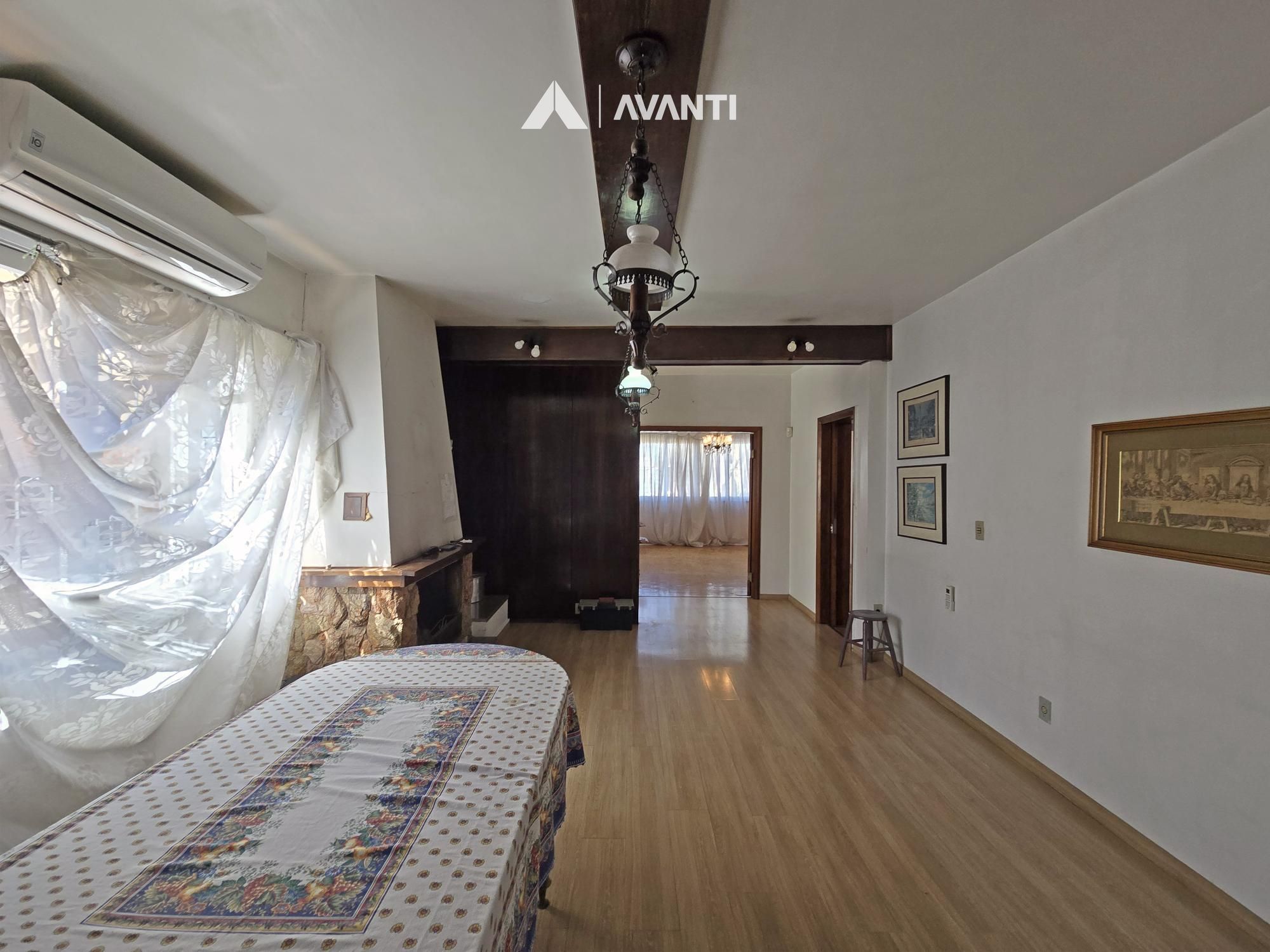 2º Pavimento: Hall de entrada, amplo estar social 2 ambientes, sala de jantar com lareira, ampla cozinha, área de serviço, banheiro auxiliar e despensa.