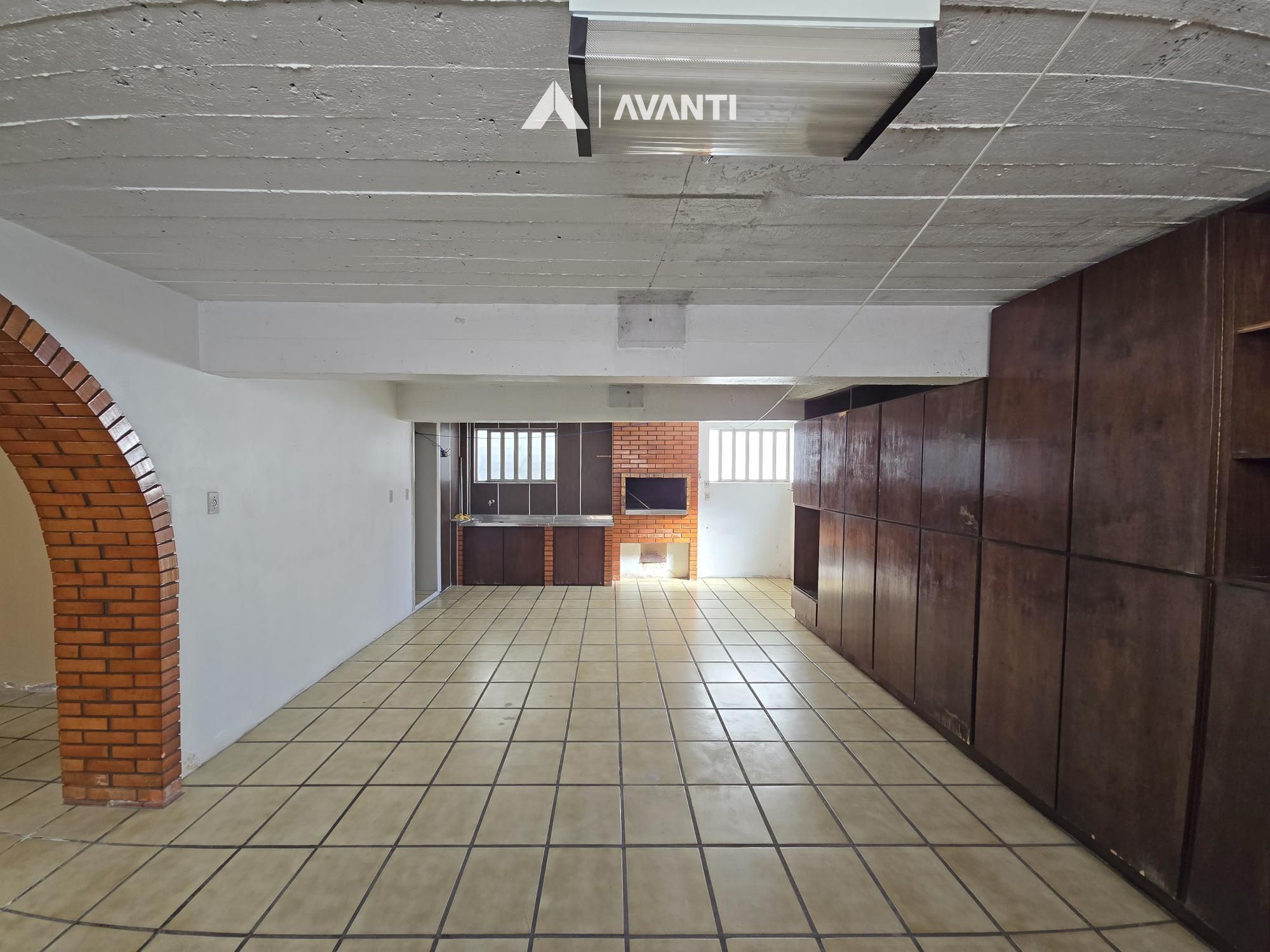 1º Pavimento: Garagem, amplo salão de festas com lavabo e despensa. Pátio nos fundos com entrada lateral.