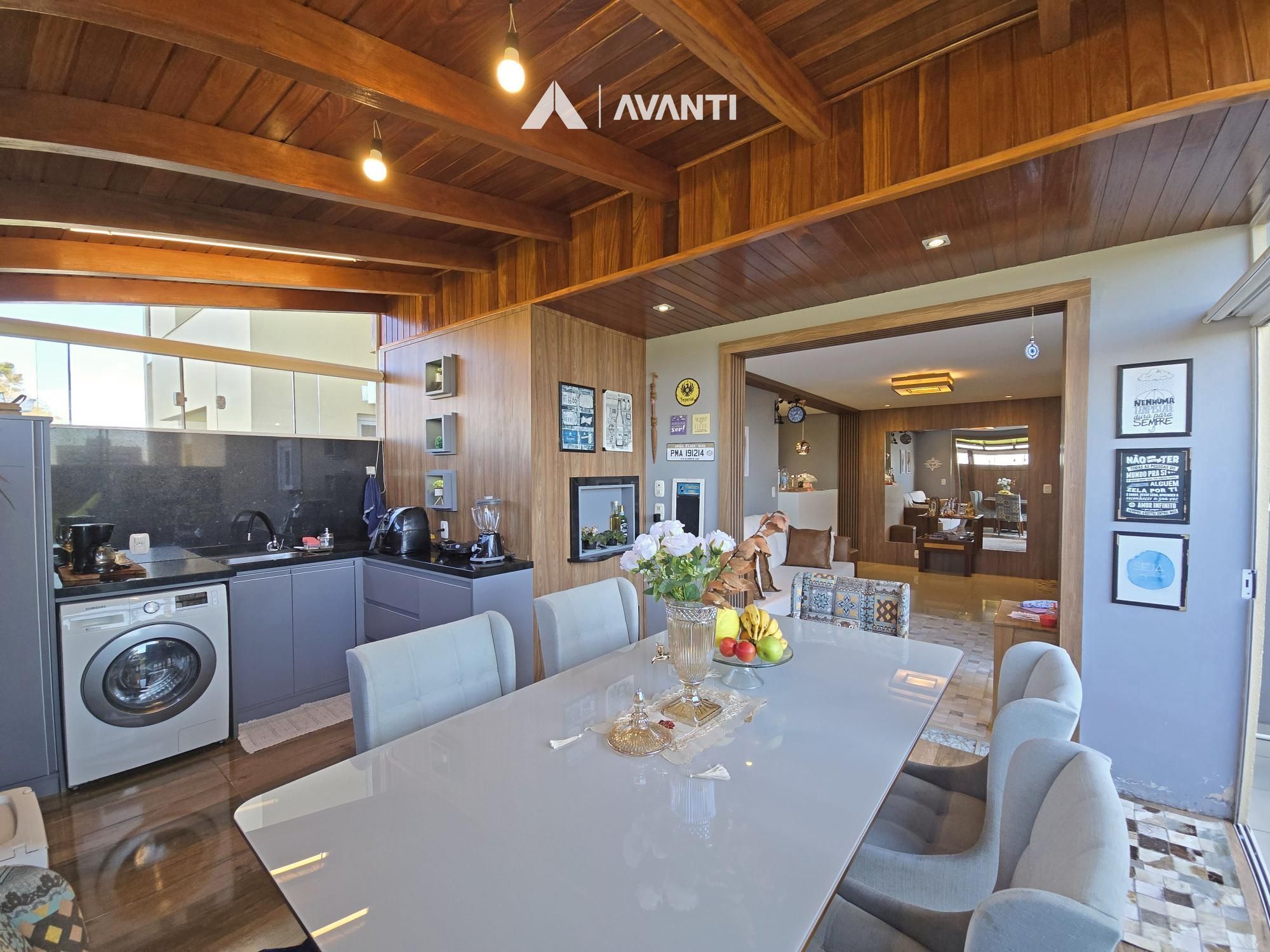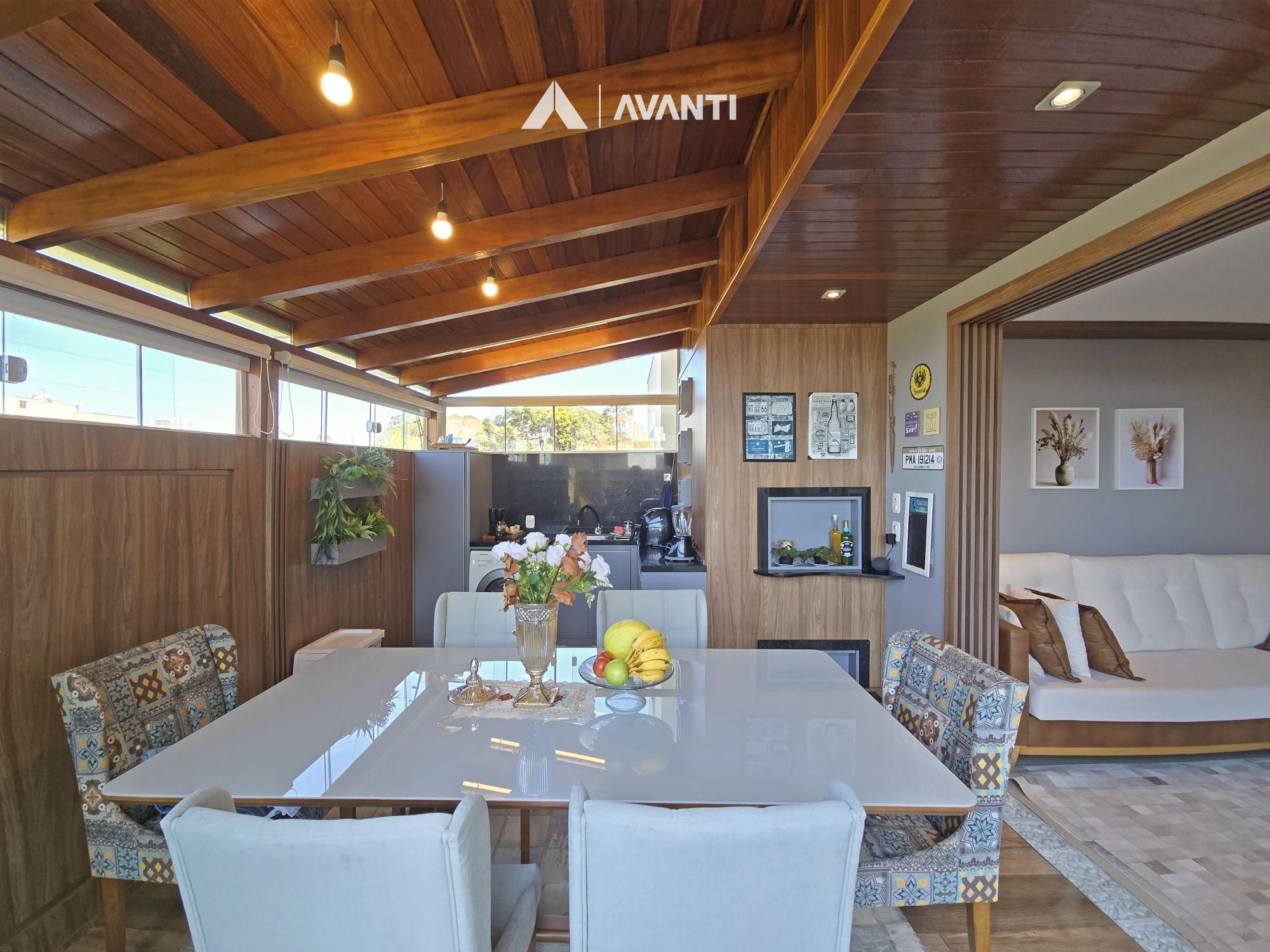 A posição solar privilegiada — com o sol da manhã e orientação norte — ilumina todos os momentos desde cedo, trazendo bem-estar e conforto térmico ao longo do dia. O living em conceito aberto com lareira se conecta à cozinha com bancada funcional, criando um espaço acolhedor e moderno. O terraço, parcialmente coberto, foi adaptado para ser o ponto alto da casa: gourmet, social e área de serviço discreta.