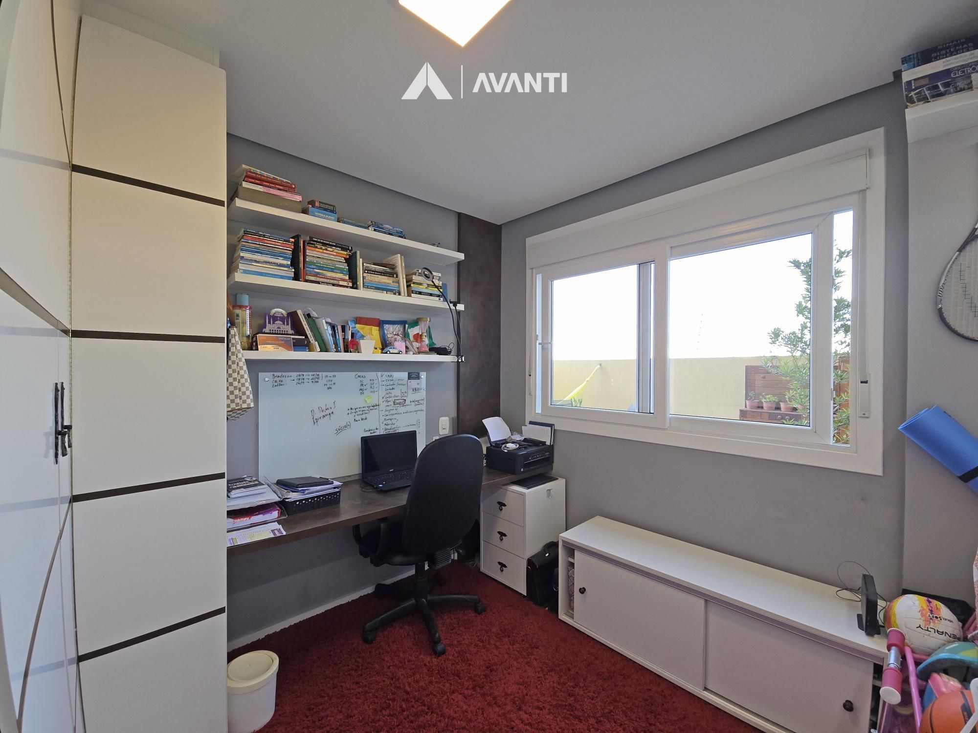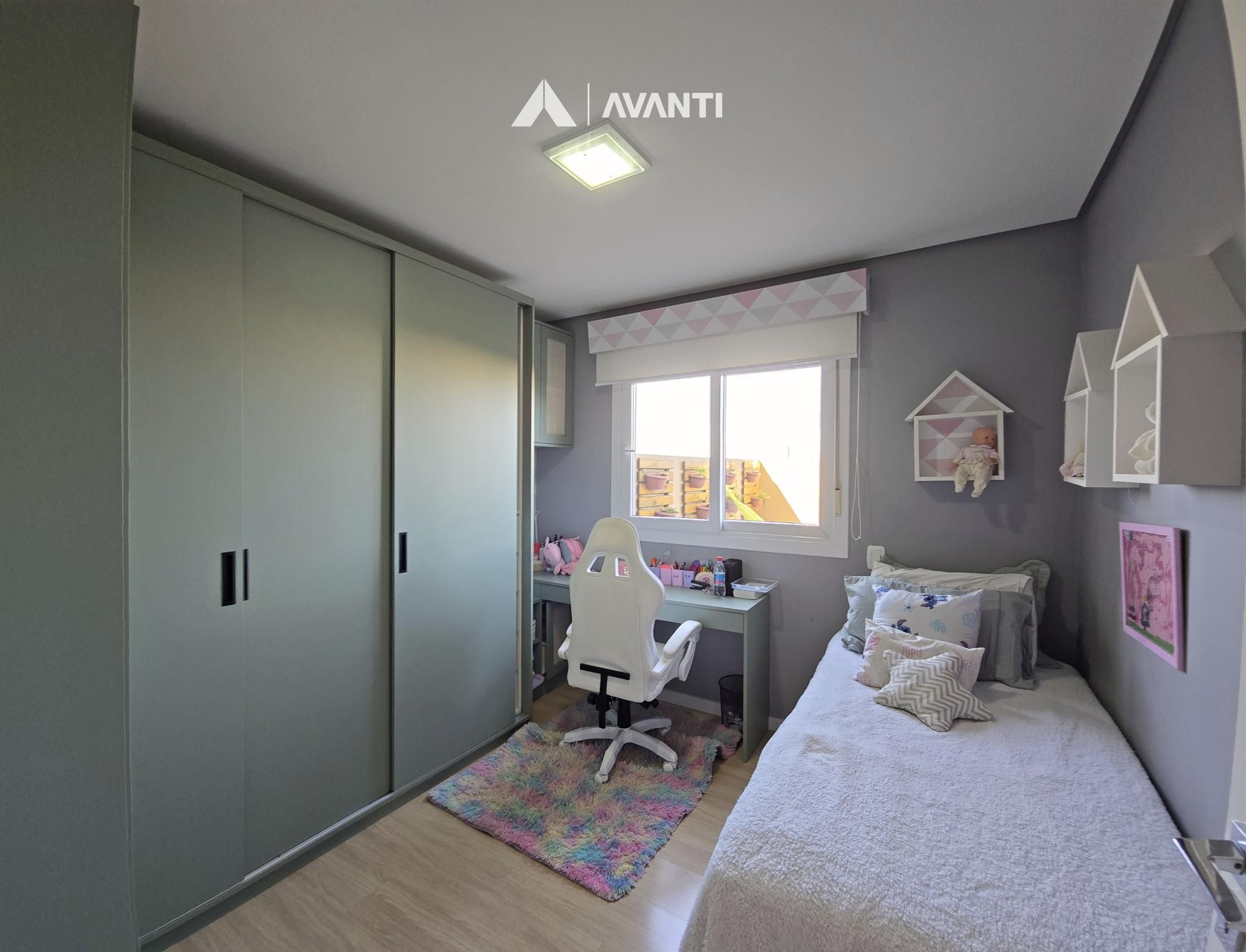 A área íntima oferece três dormitórios, sendo uma suíte aconchegante, além de um banheiro social. Detalhes como esquadrias em alumínio, piso laminado e porcelanato, e aquecedor de passagem já instalado garantem praticidade e qualidade no dia a dia.