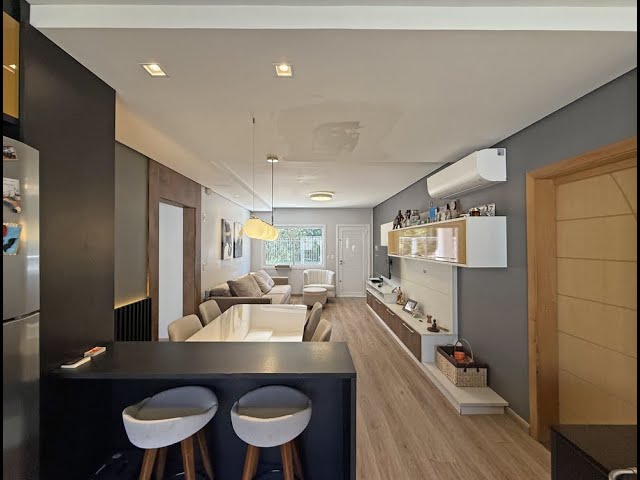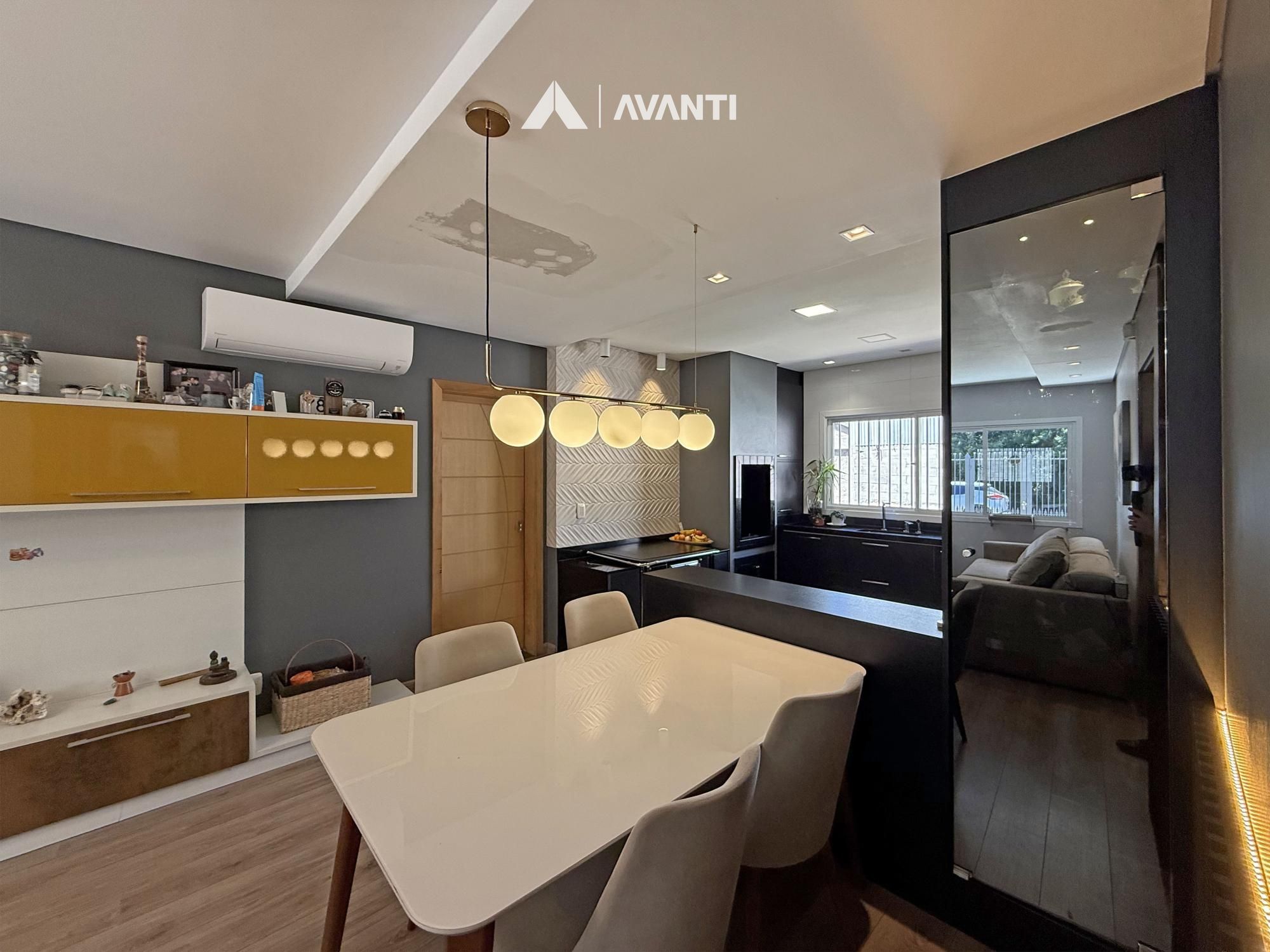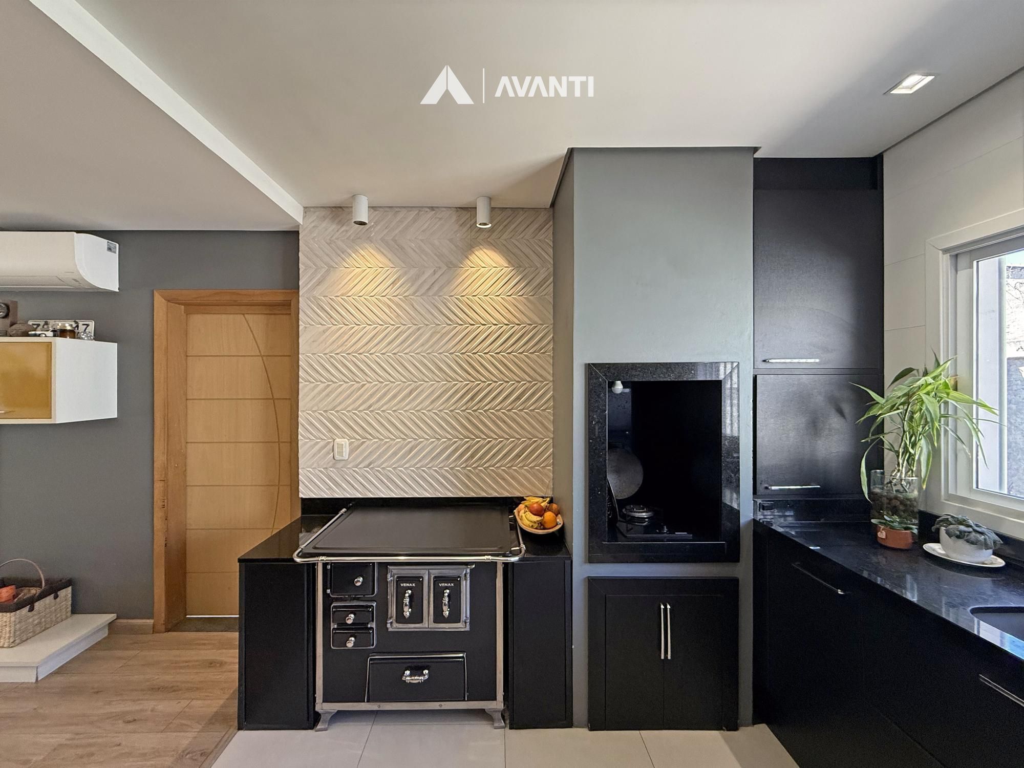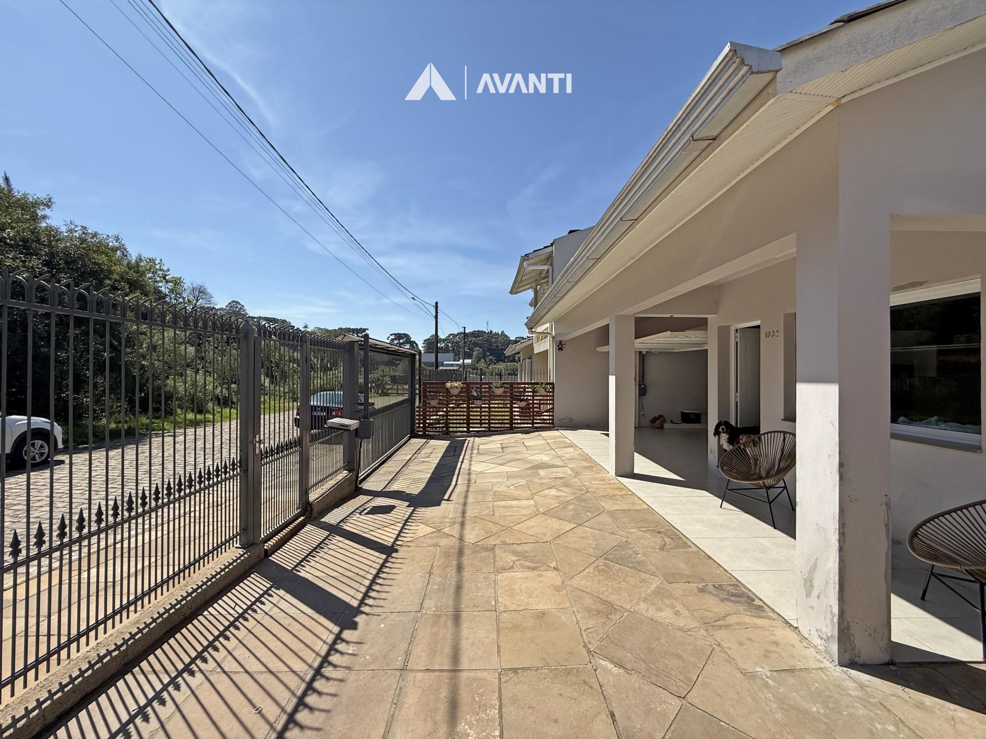 Construída em terreno de 371m², ela conta com um amplo living em conceito aberto, onde sala de estar, jantar e cozinha com bancada e fogão a lenha se integram de forma harmoniosa — ideal para o convívio familiar e para receber bem. A varanda à frente convida a momentos de descanso ao ar livre, enquanto a garagem com churrasqueira e pia de apoio complementa com praticidade.
