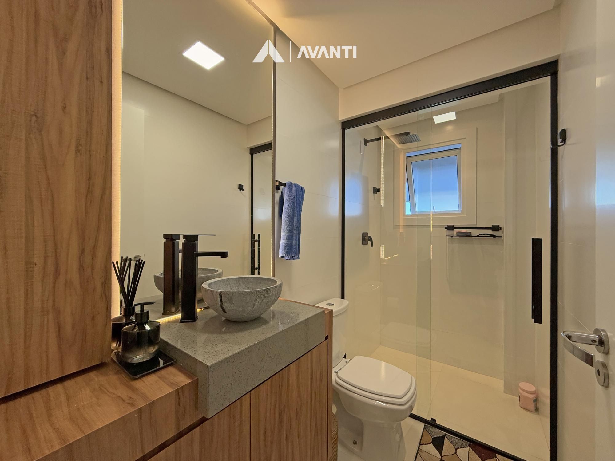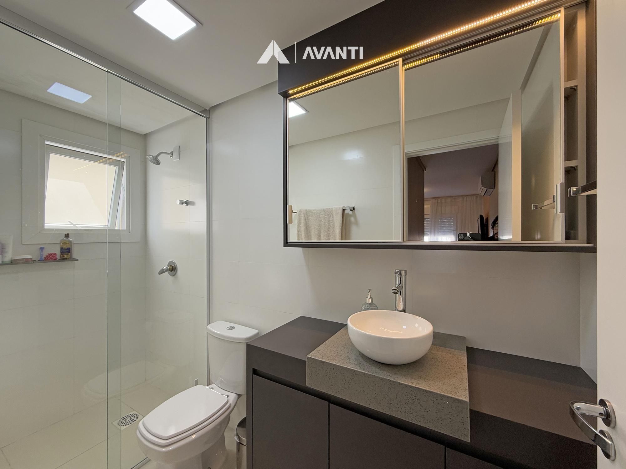 Na área íntima, três dormitórios acolhedores, sendo uma suíte espaçosa. O apartamento conta ainda com acabamentos de qualidade, como piso laminado e porcelanato, aberturas em PVC, splits instalados e aquecedor de passagem — prontos para tornar a sua mudança imediata e descomplicada.