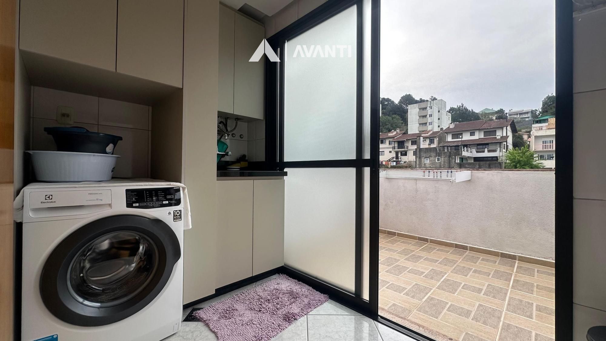O apartamento conta com amplo living com lareira, cozinha americana com churrasqueira e terraço.