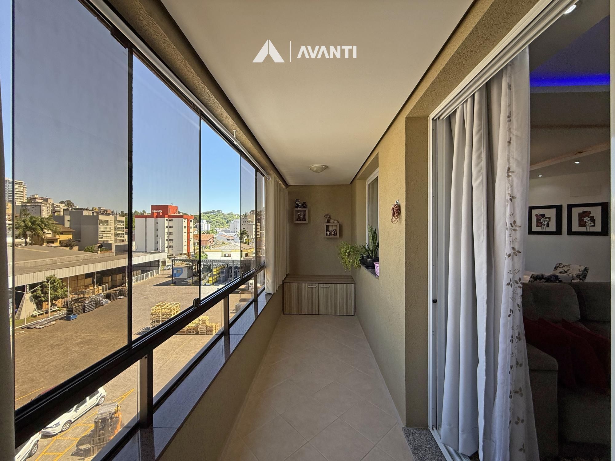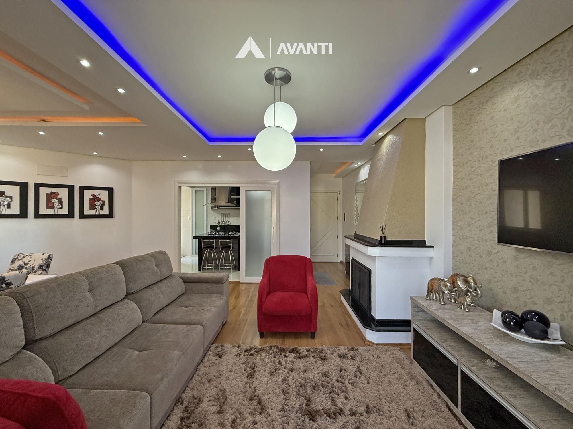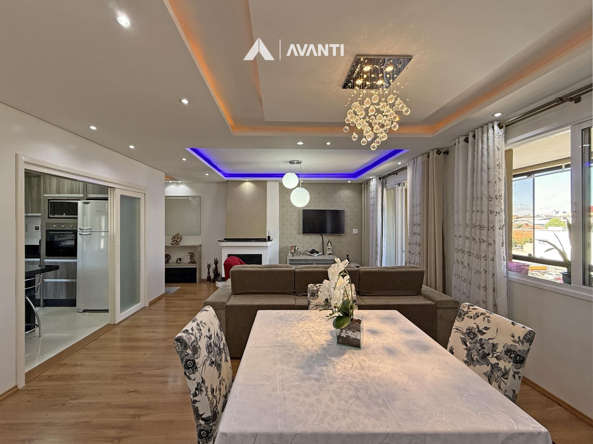 dispõe de hall de entrada, amplo living que comporta sala de estar com lareira, sala de jantar, ampla sacada fechada, cozinha americana com bancada, área de serviço com churrasqueira e banheiro social.