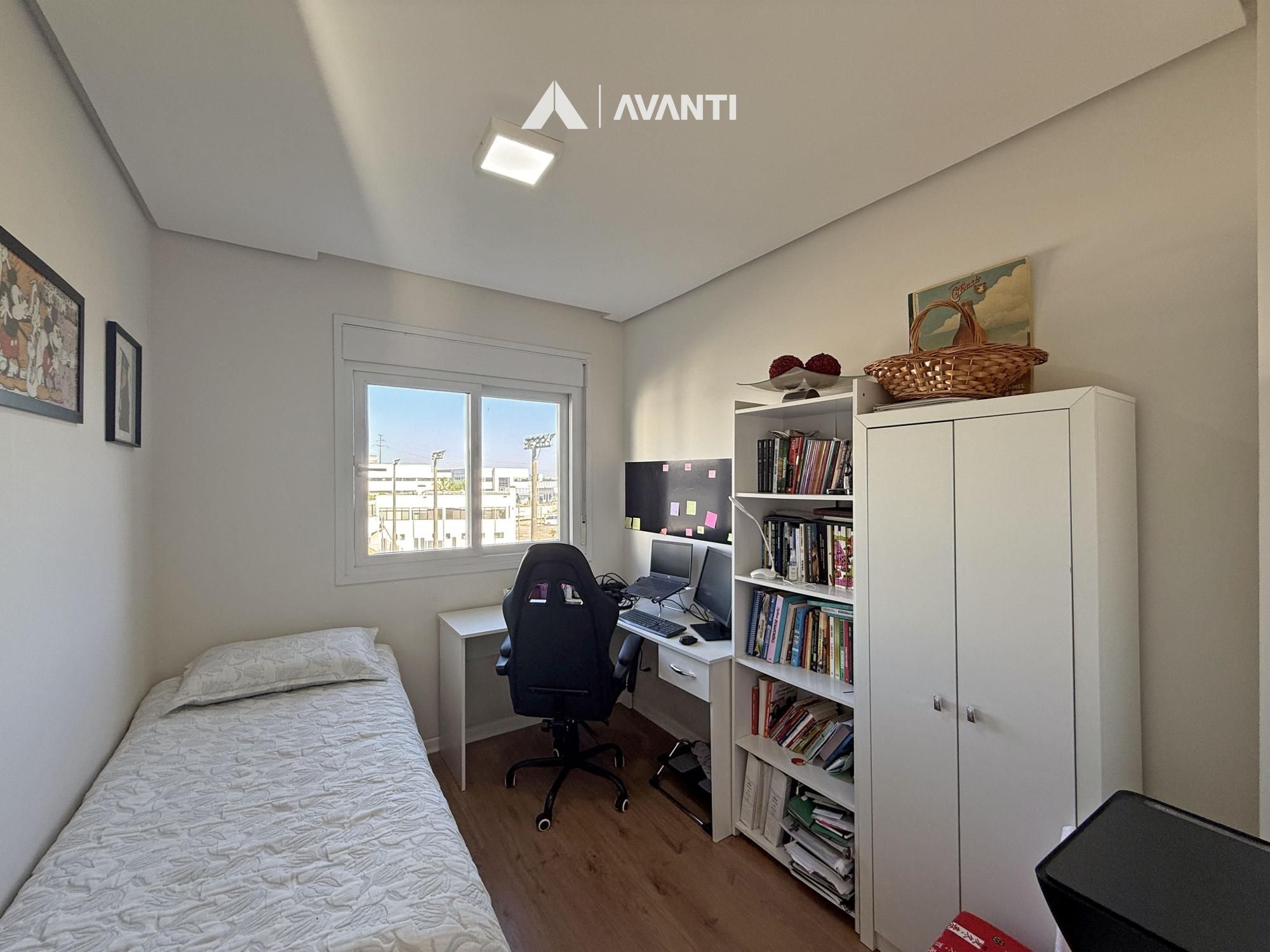 No último pavimento ficam os 3 dormitórios, sendo 1 suíte com closet, além de banheiro social. Um espaço íntimo que prioriza conforto, silêncio e organização.
