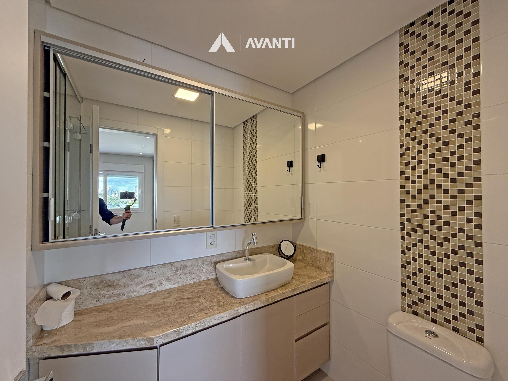 Nos acabamentos, o imóvel oferece aberturas em PVC, split e aquecedor já instalados, além de piso laminado e porcelanato, unindo conforto térmico e praticidade.