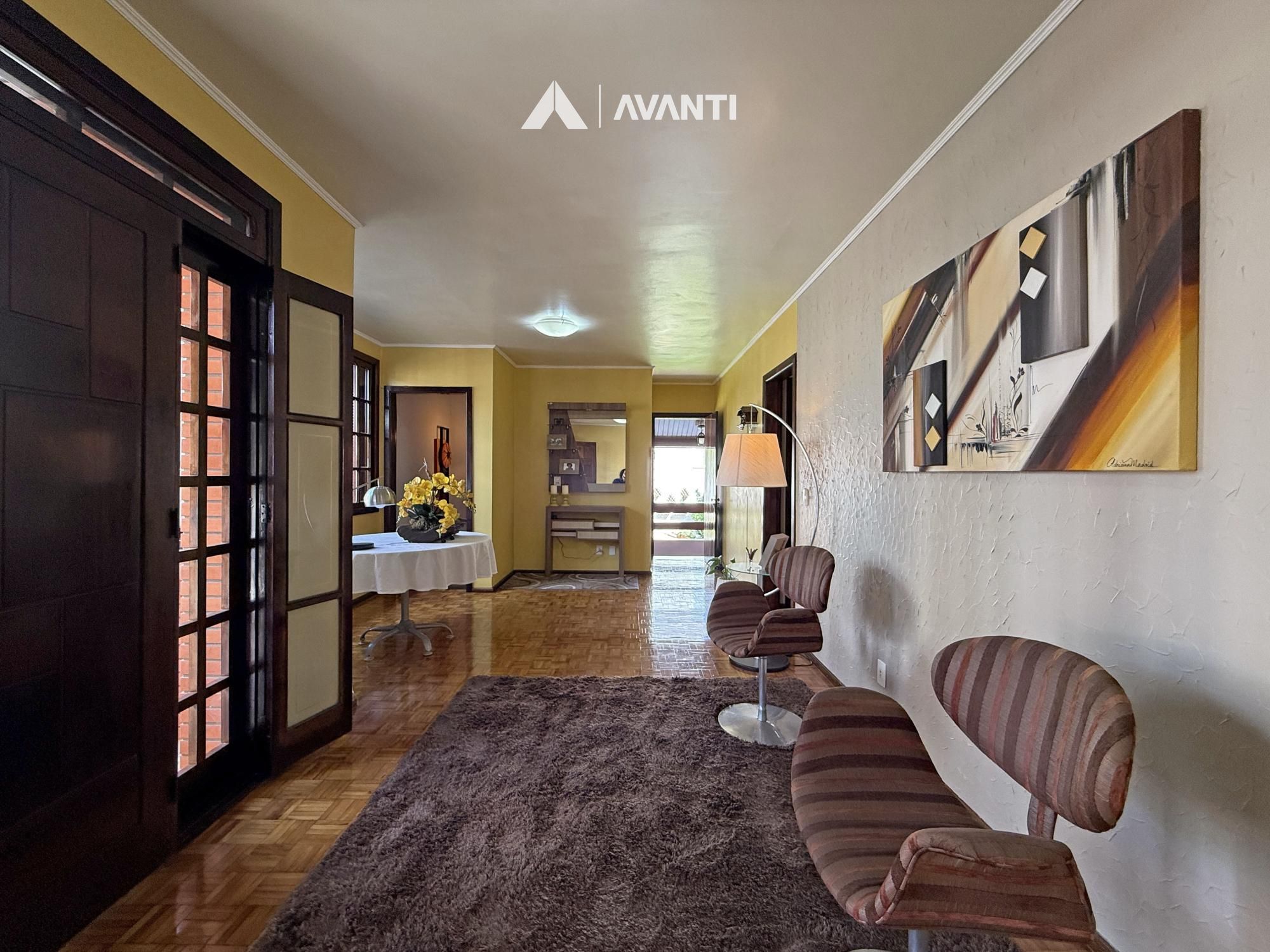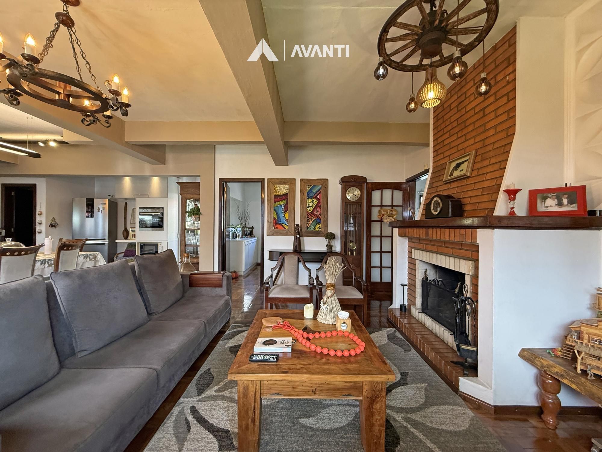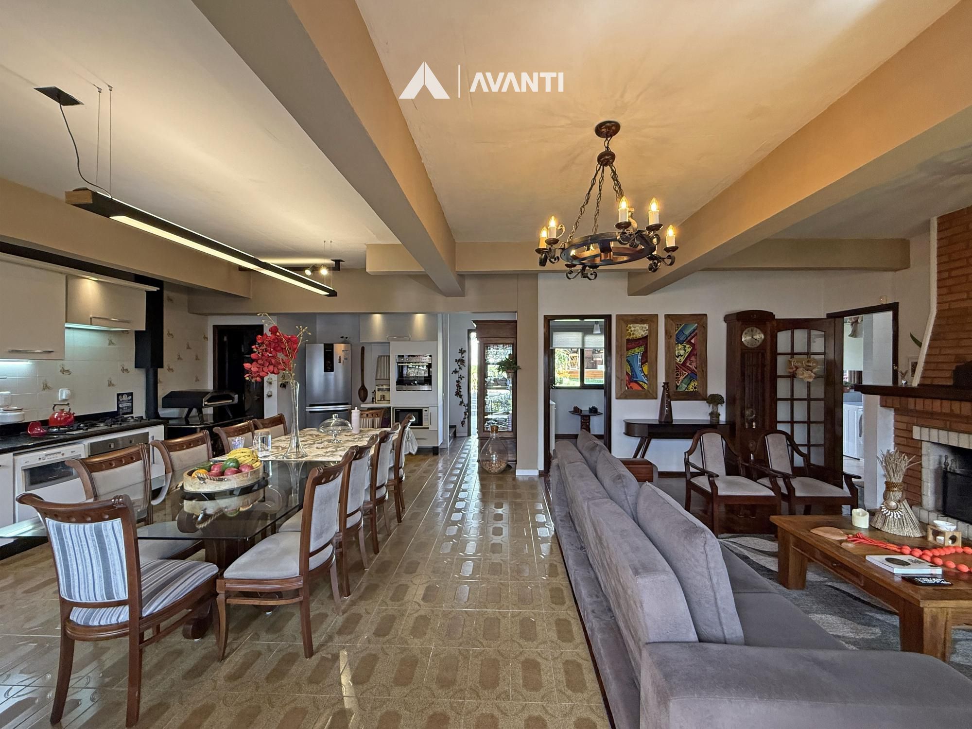 Implantada em um terreno de 420 m², a residência conta com 239 m² privativos muito bem distribuídos. O estar social em conceito aberto integra sala de estar com lareira, sala de jantar, cozinha com fogão a lenha e adega, formando um ambiente acolhedor e funcional para o dia a dia e para receber. O jardim amplo acompanha toda a casa, garantindo iluminação natural, ventilação e uma atmosfera leve em todos os ambientes.