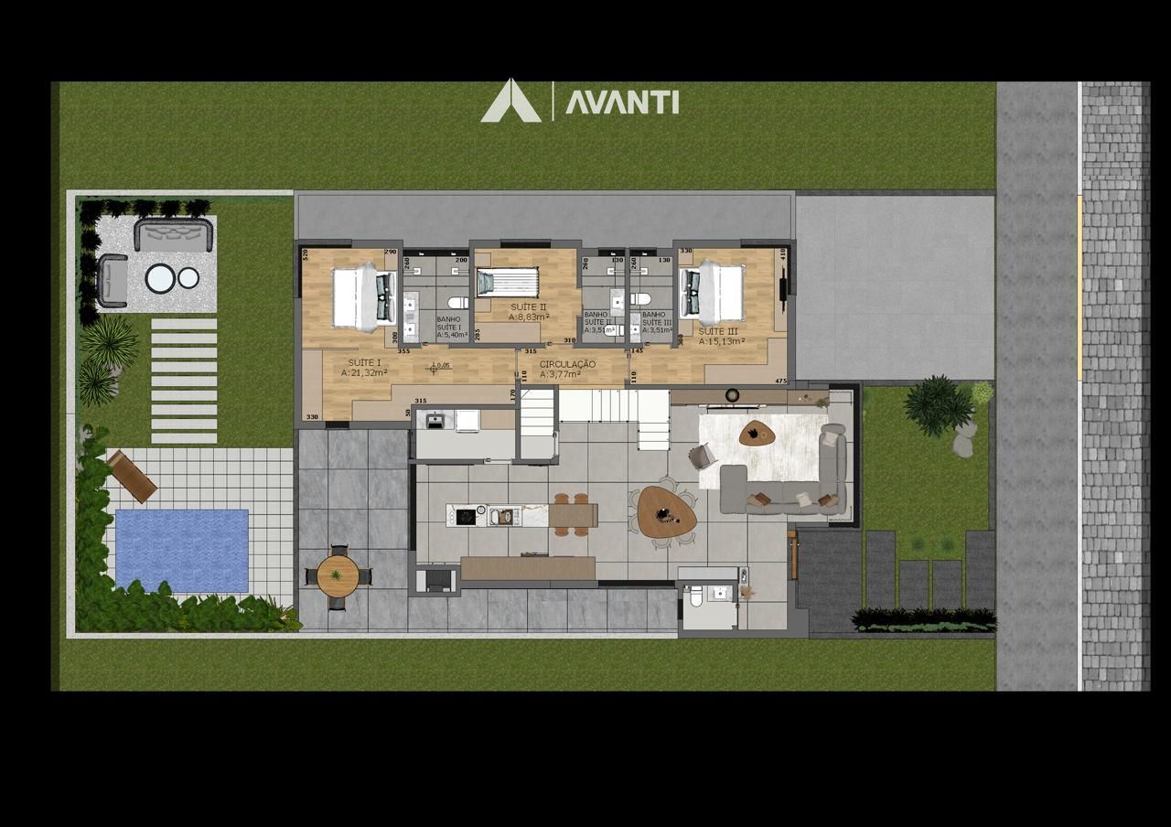 Dispõe de 250m² privativos, 3 suítes e vaga coberta para 4 carros.