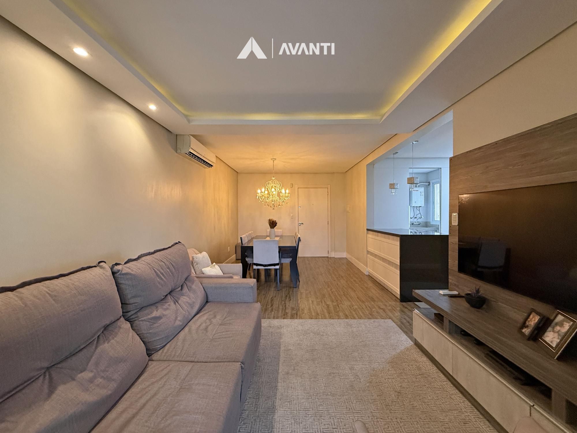 Com 111m² privativos, o living integrado conecta sala de estar, jantar e uma ampla sacada gourmet com fechamento reiki, criando um ambiente versátil e iluminado, ideal para receber e relaxar. A cozinha com bancada se integra ao espaço de forma prática, enquanto a área de serviço é separada, garantindo organização no dia a dia.