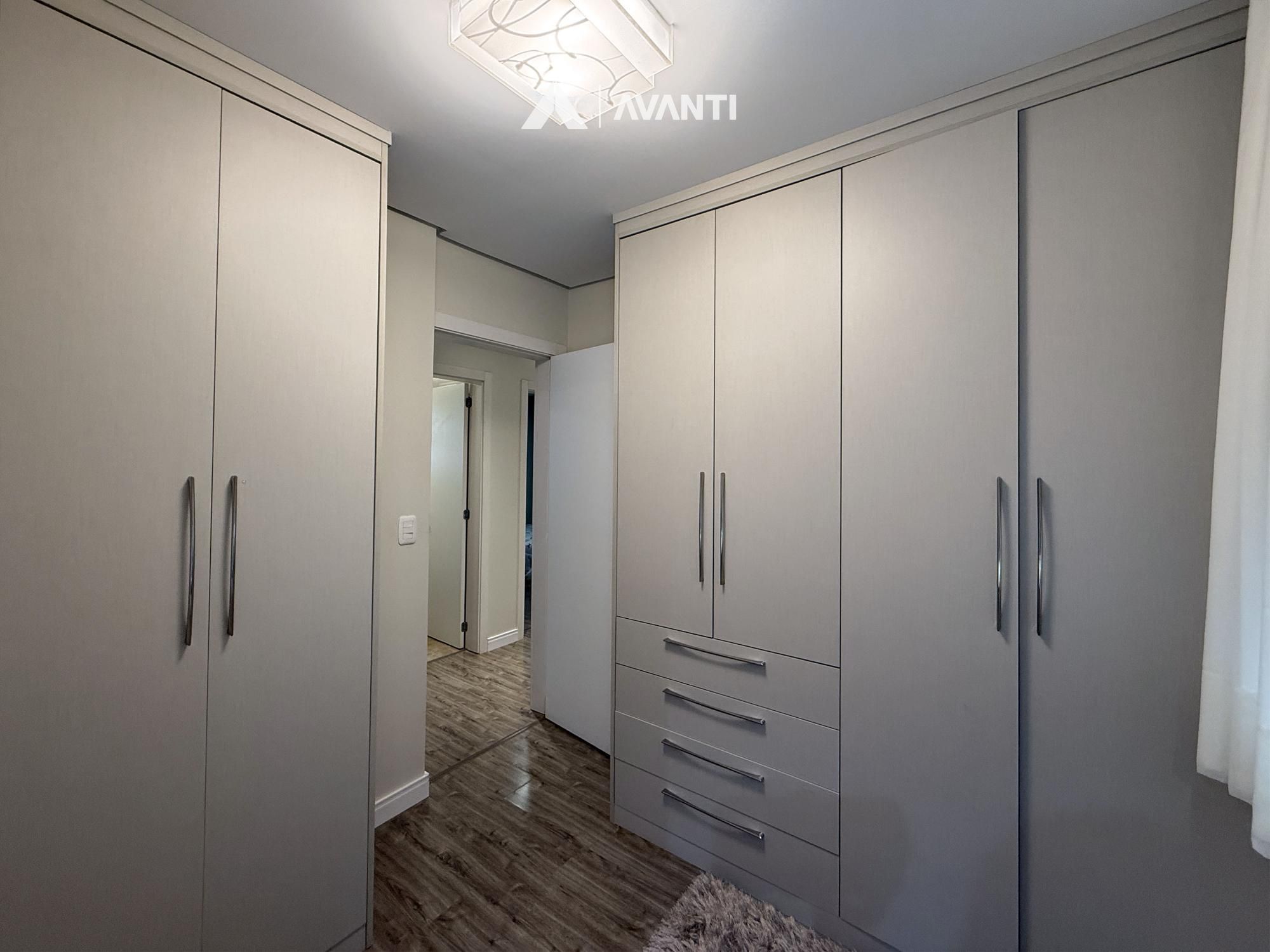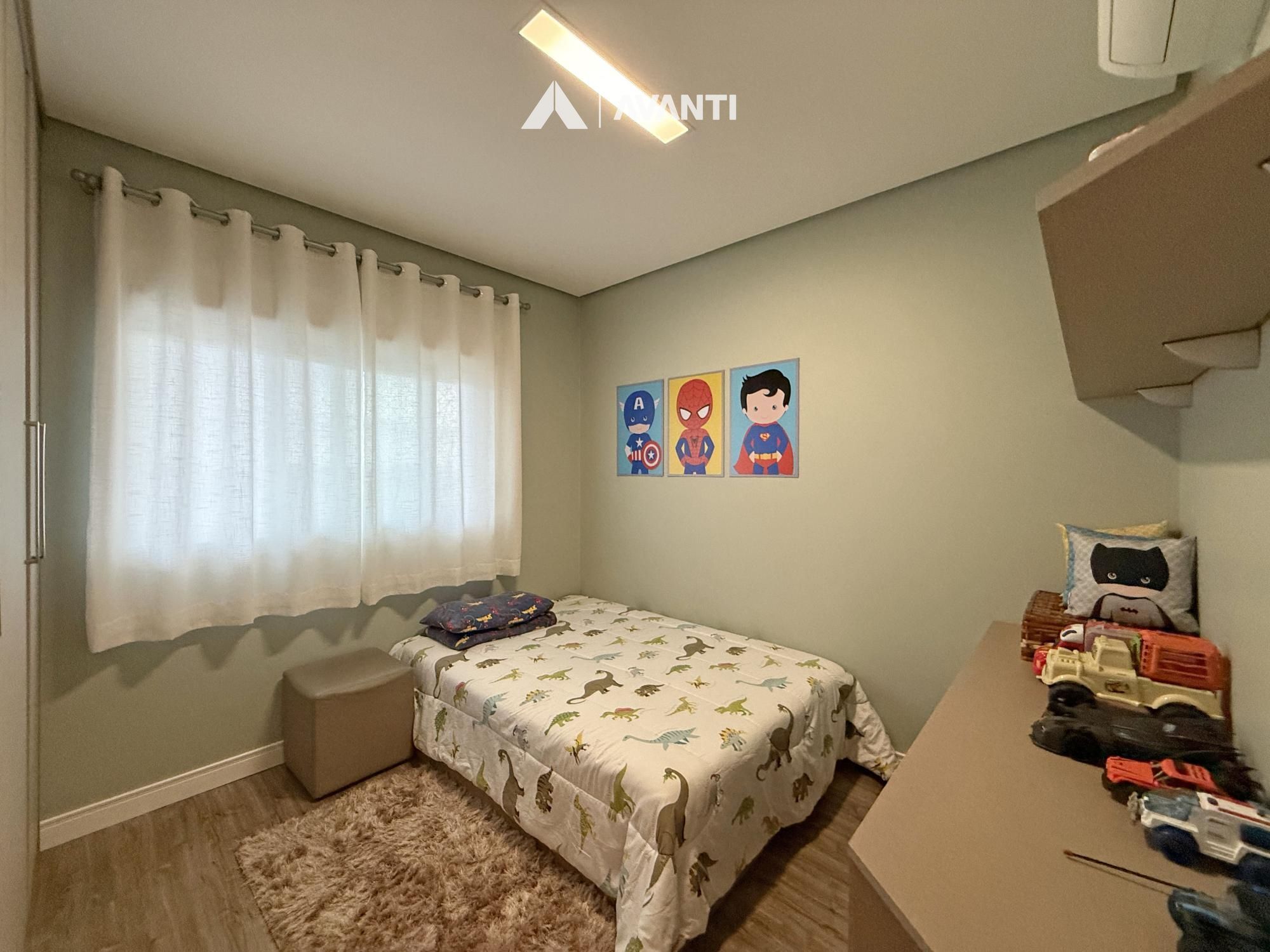 Na área íntima, são três dormitórios, sendo uma suíte, além de banheiro social bem distribuído. O imóvel conta ainda com duas vagas de garagem, reforçando a comodidade para a rotina urbana.