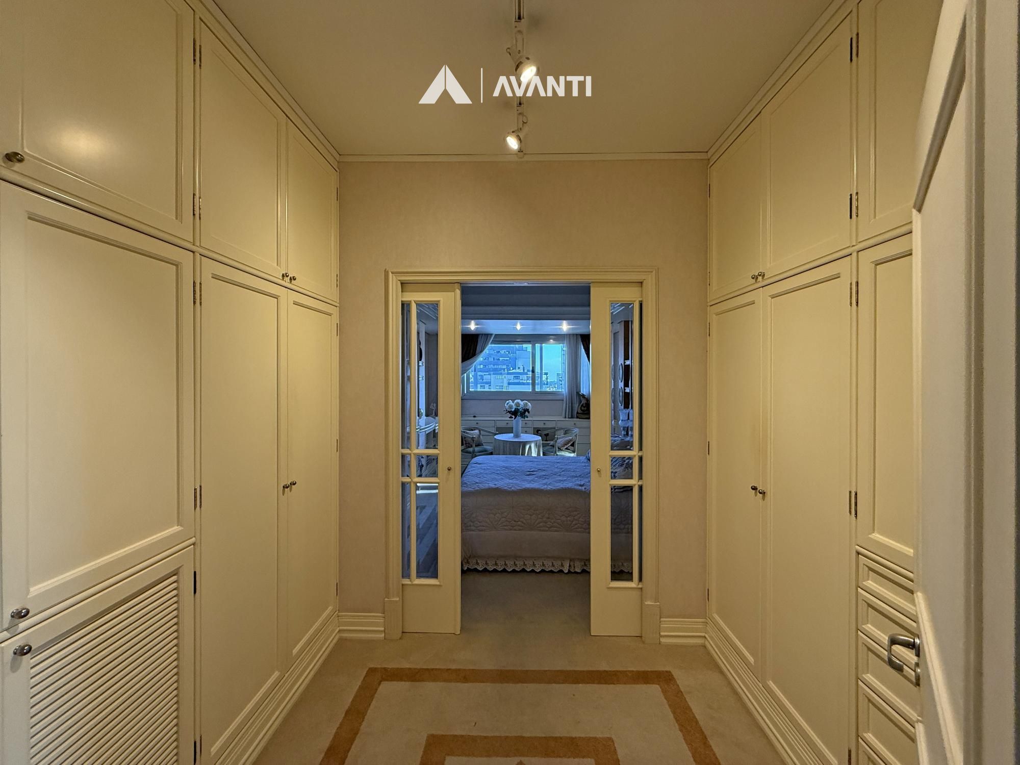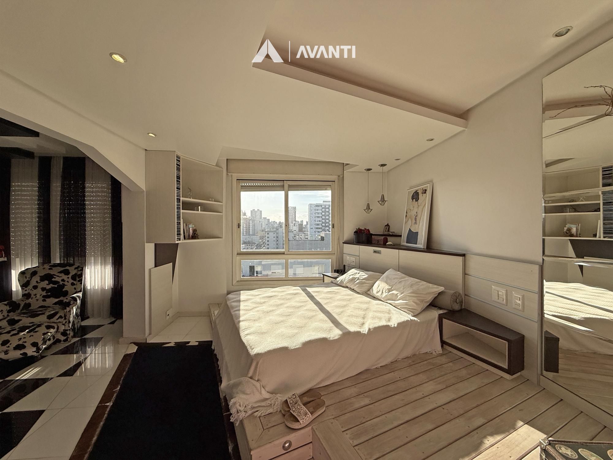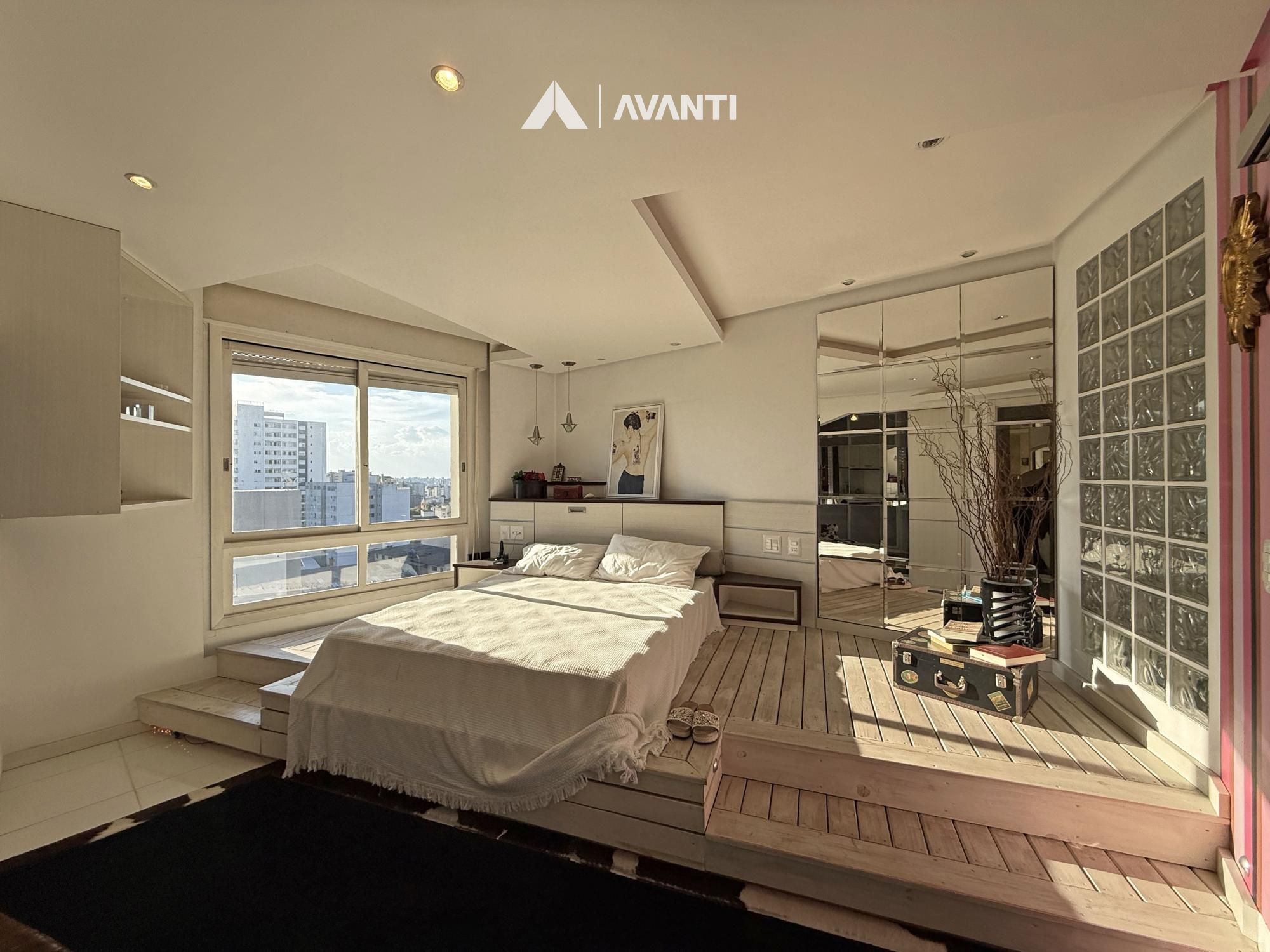 Com 297m² privativos, a cobertura é distribuída de forma inteligente em dois pavimentos. No primeiro, um amplo living integrado acomoda antessala e sala de estar, além da área íntima com 3 dormitórios, sendo 2 com closet e 1 suíte, acompanhados de banheiro social. Ambientes bem dimensionados que garantem funcionalidade e privacidade no dia a dia.