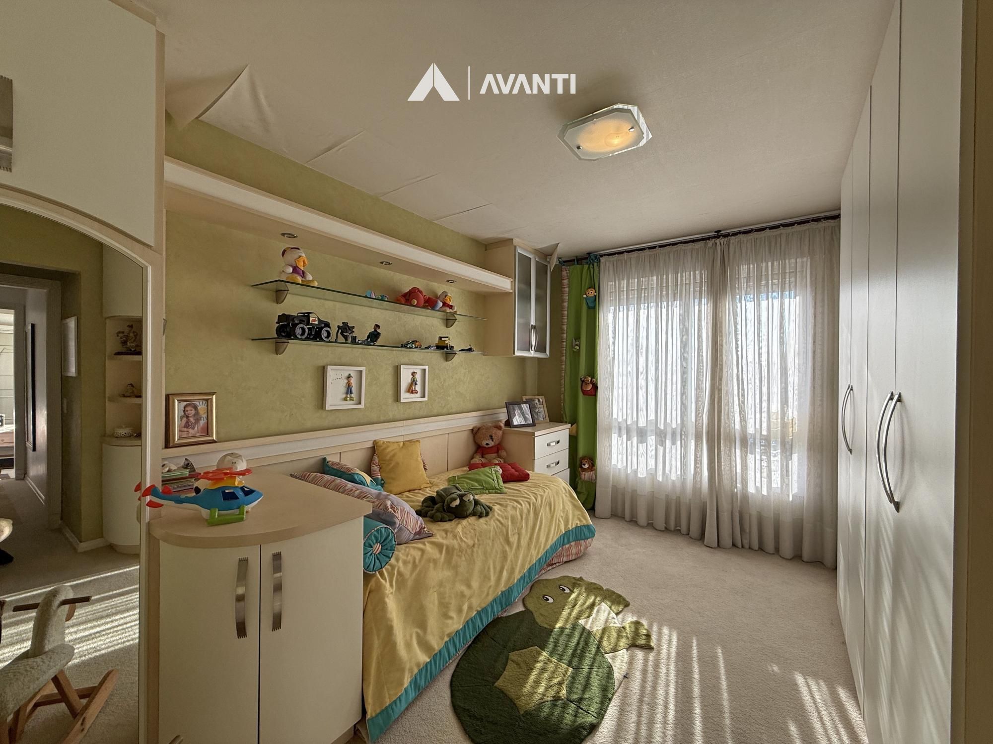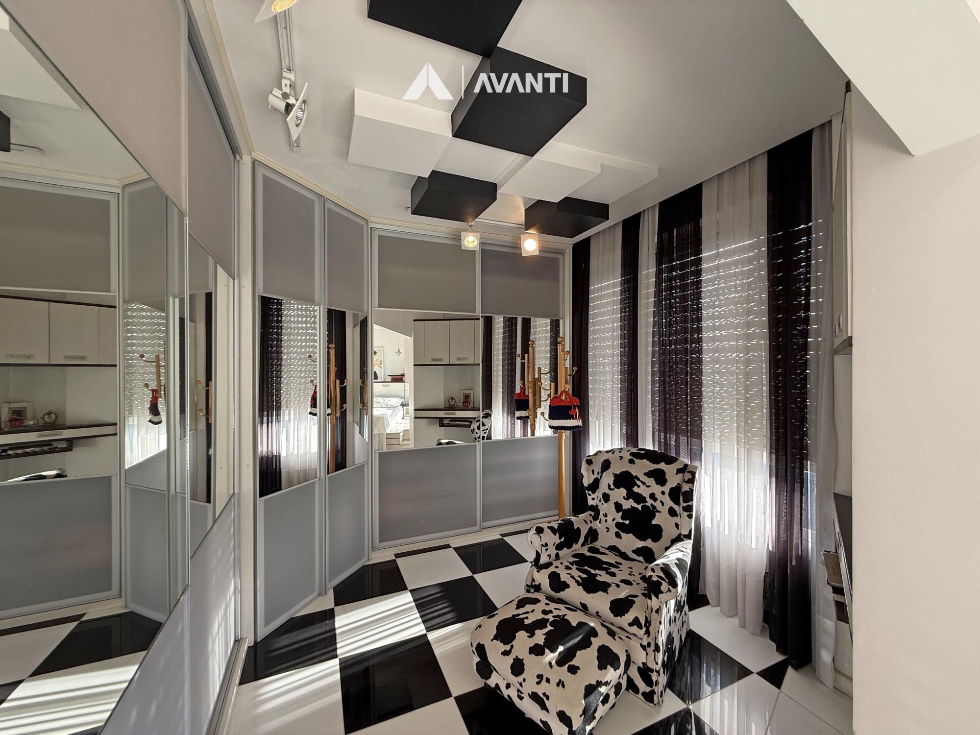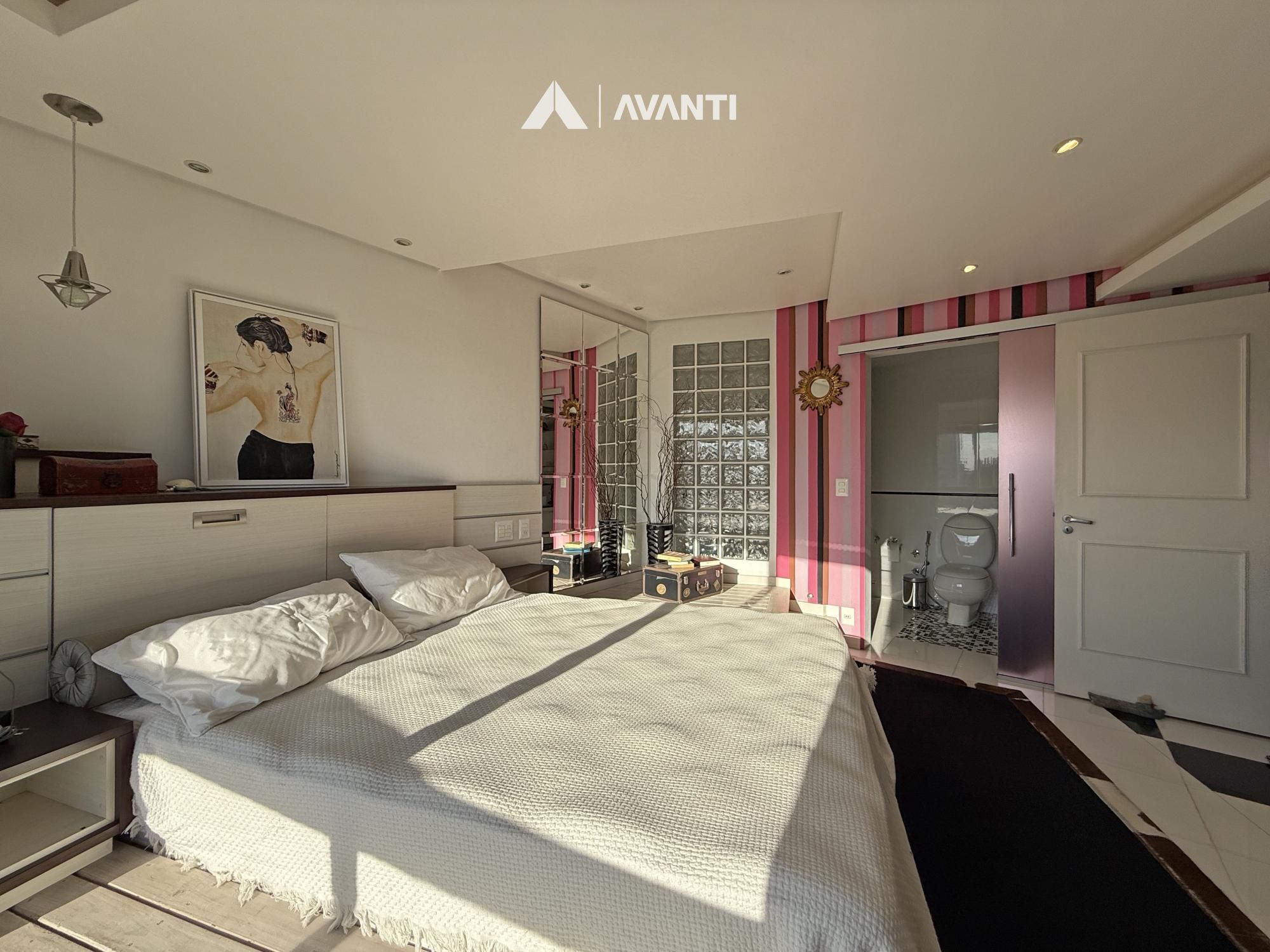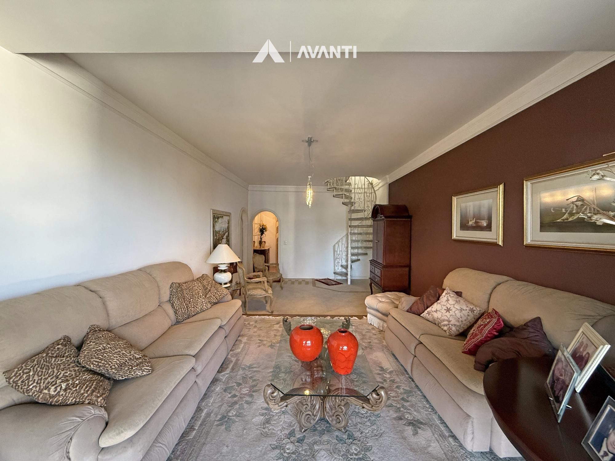 Com 297m² privativos, a cobertura é distribuída de forma inteligente em dois pavimentos. No primeiro, um amplo living integrado acomoda antessala e sala de estar, além da área íntima com 3 dormitórios, sendo 2 com closet e 1 suíte, acompanhados de banheiro social. Ambientes bem dimensionados que garantem funcionalidade e privacidade no dia a dia.