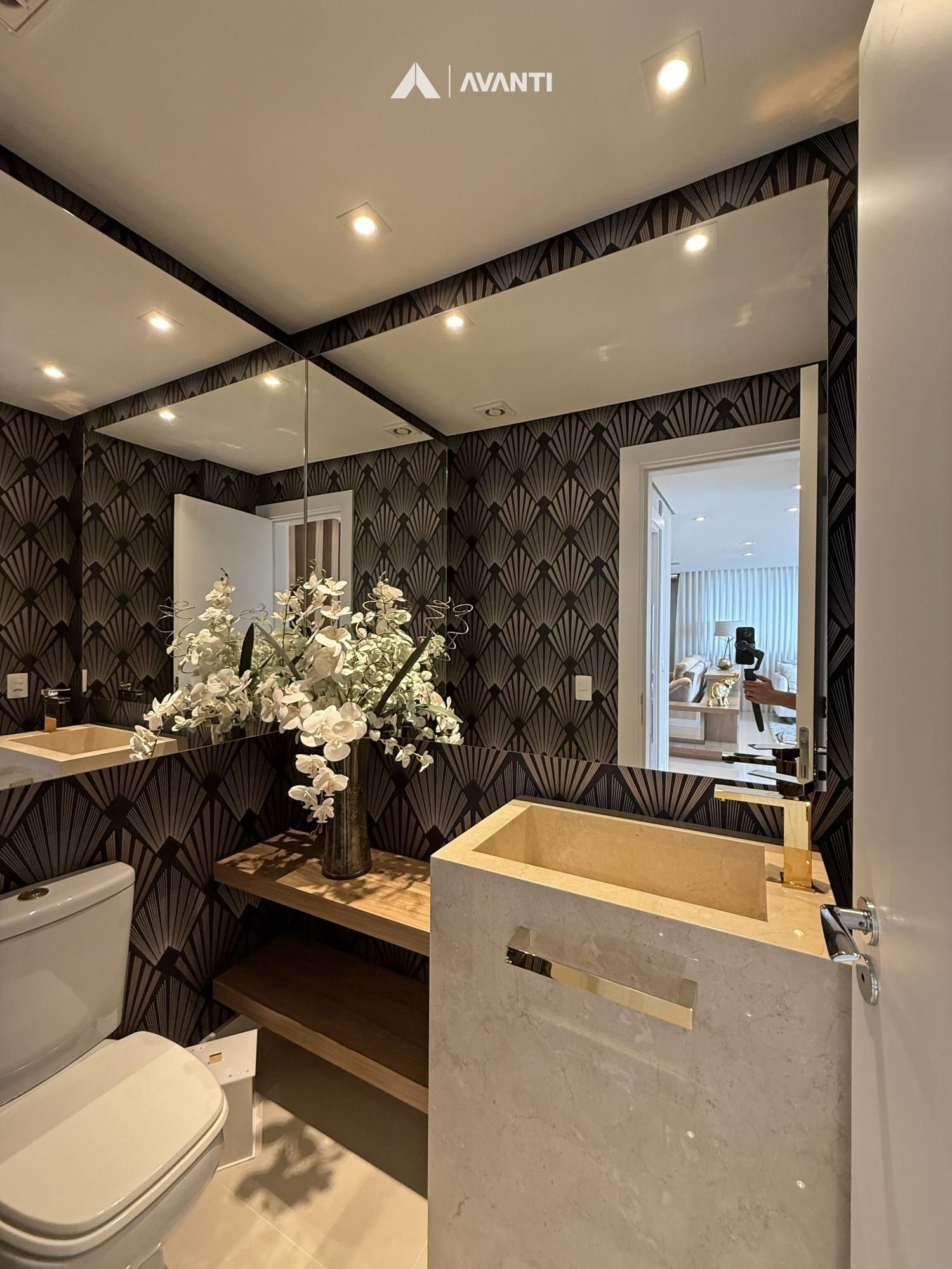 Living com excelente composição, comportando sala TV, sala de estar, sala de jantar com hall de entrada e lavabo, sacada, cozinha com churrasqueira, área de serviço separada com banheiro auxiliar e escritório.