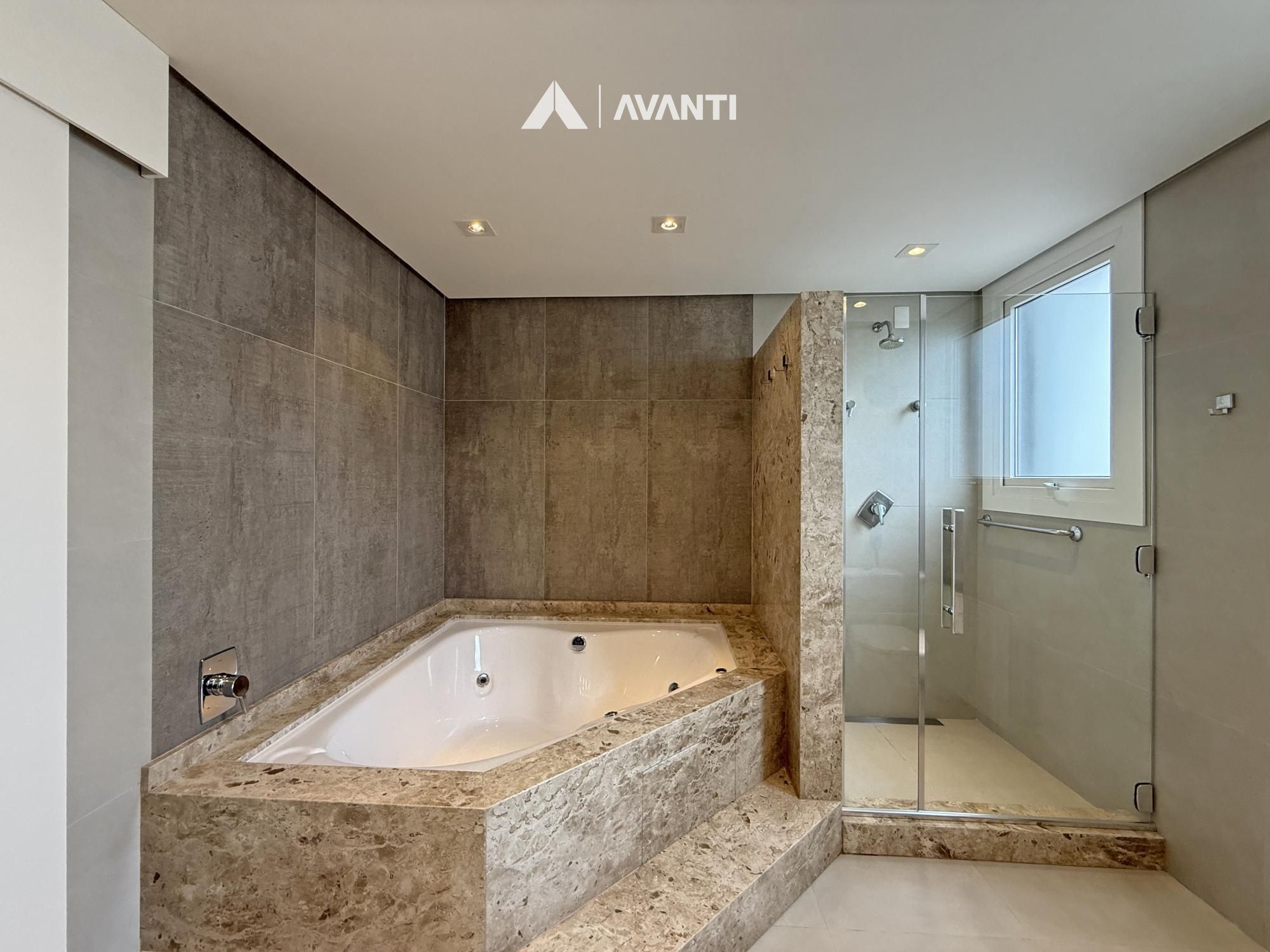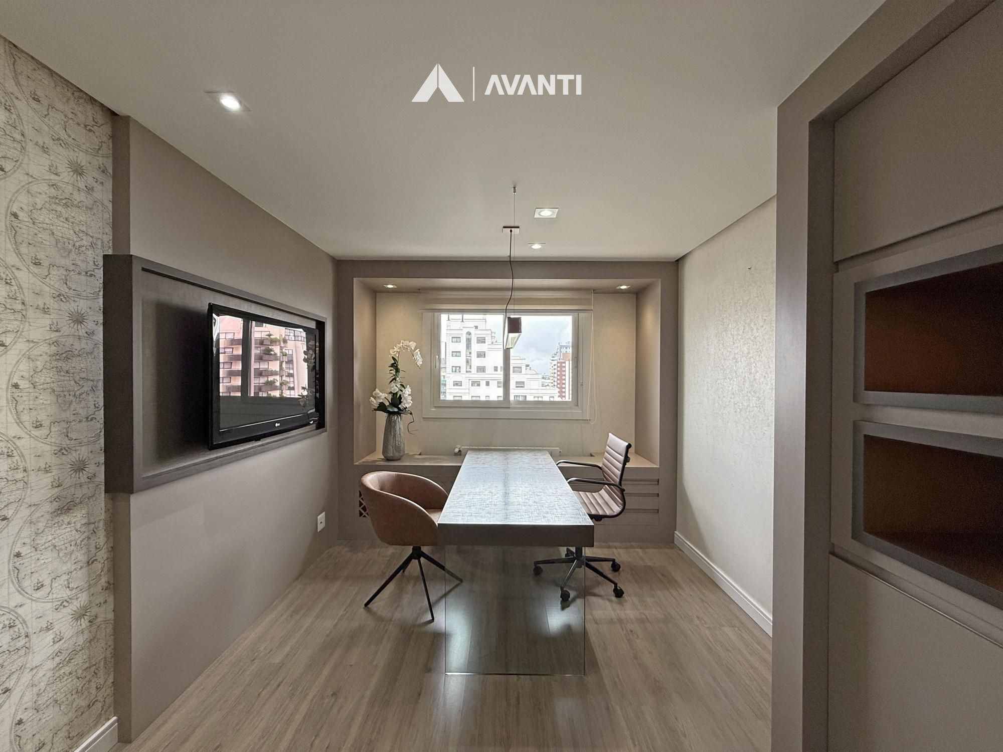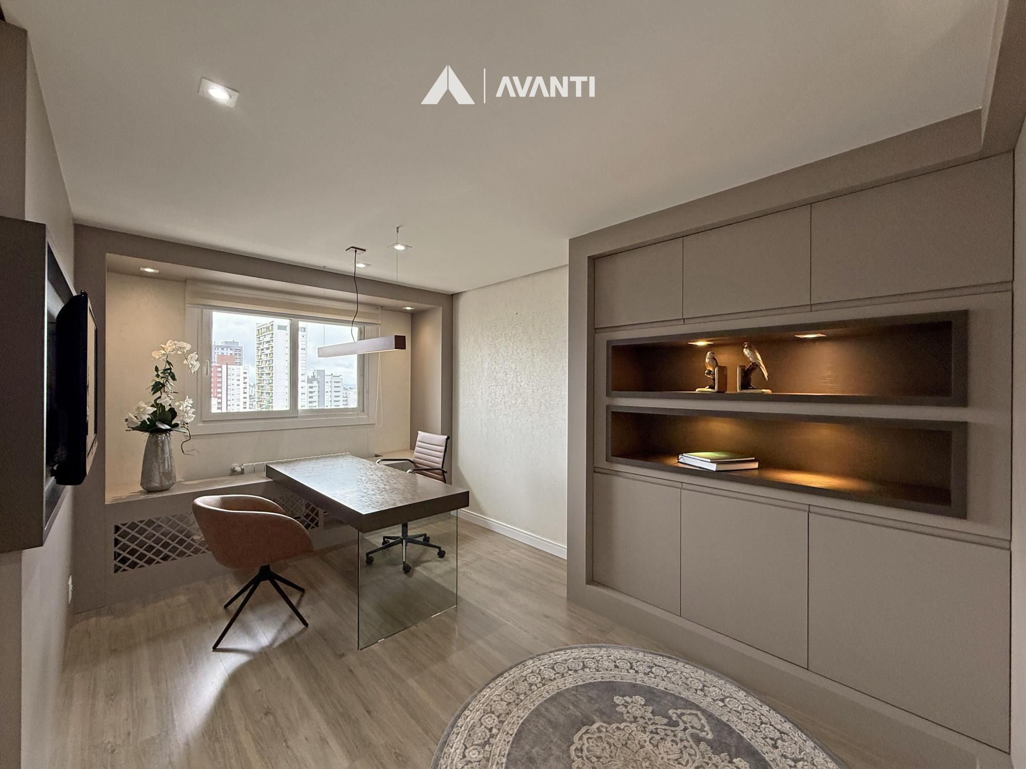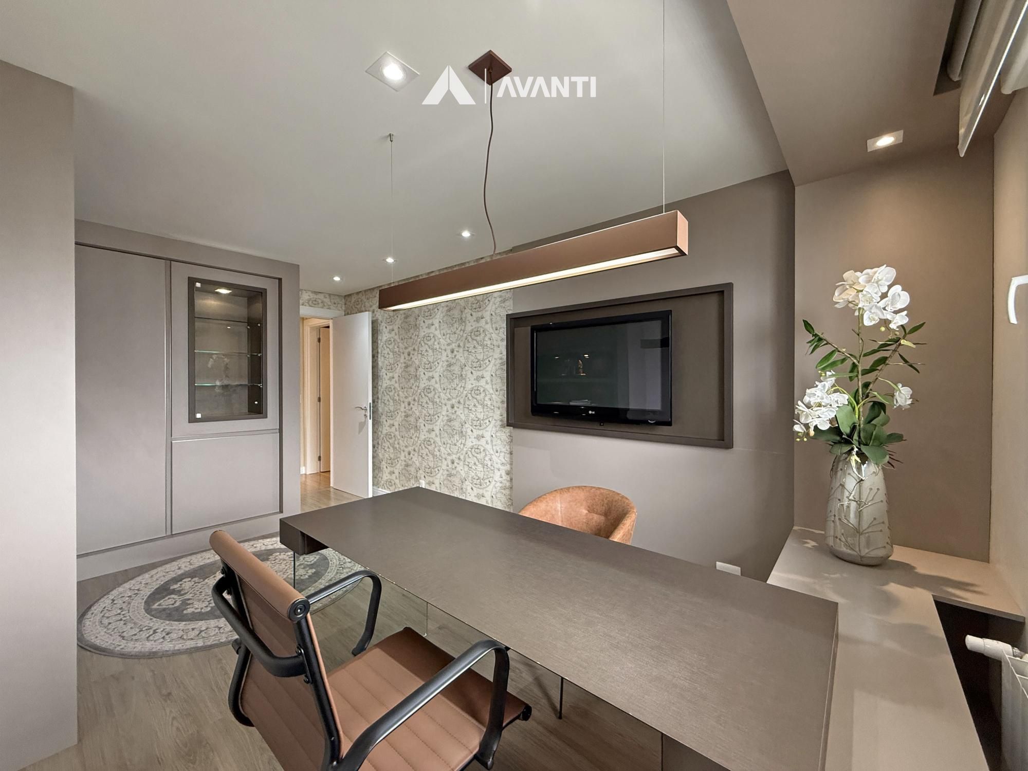 Com 210m² privativos, conta 2 suítes sendo 1 máster, escritório e vaga individual para 3 carros.
