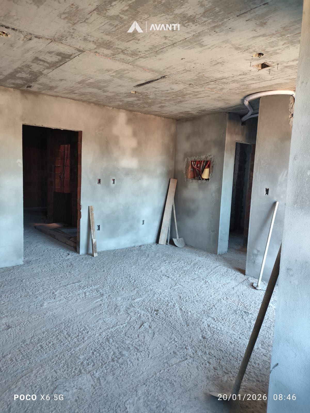 Piso em laminado e porcelanato e espera para split.