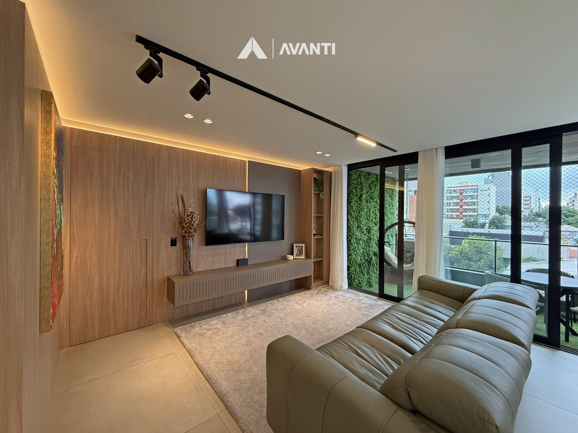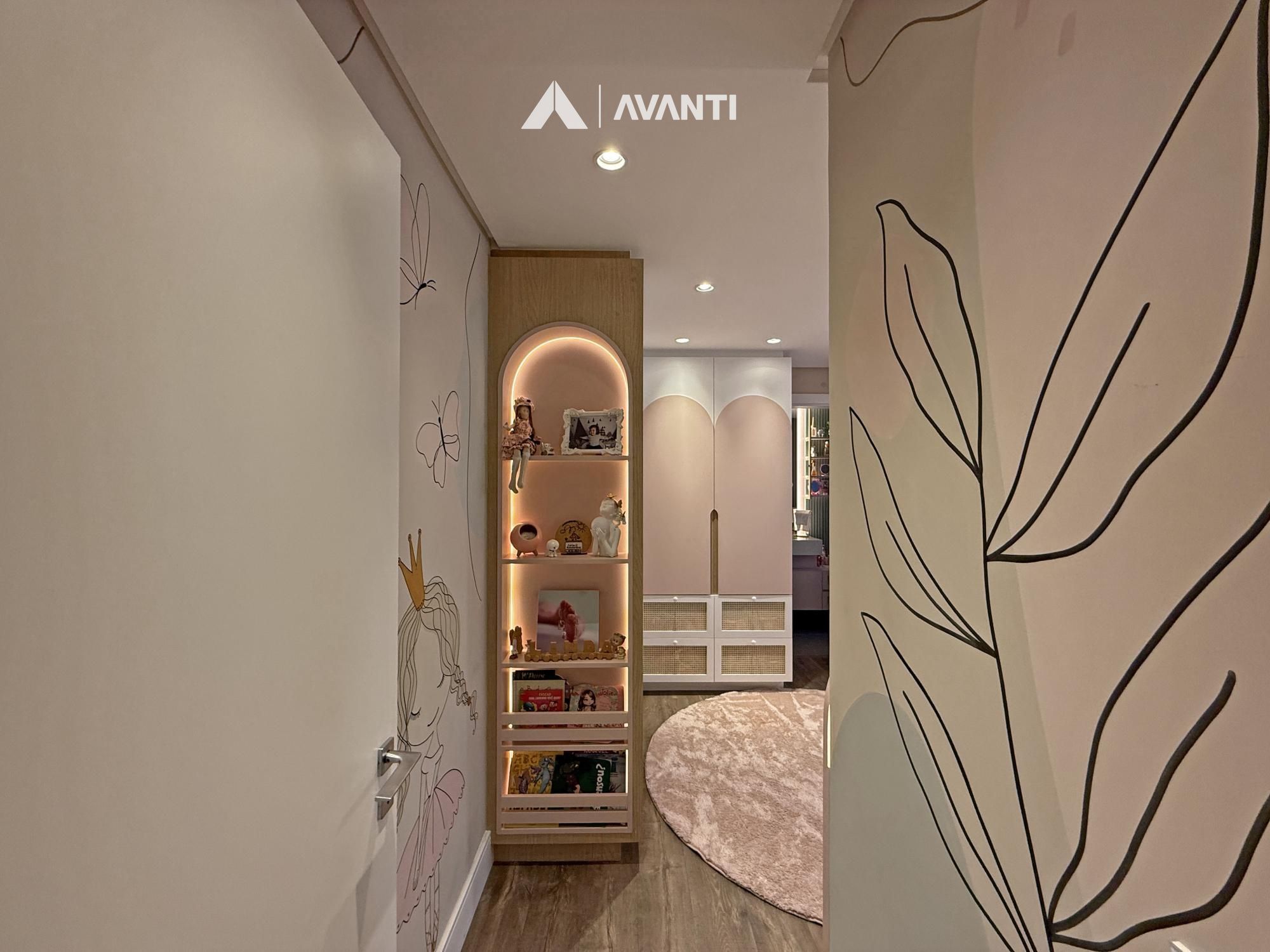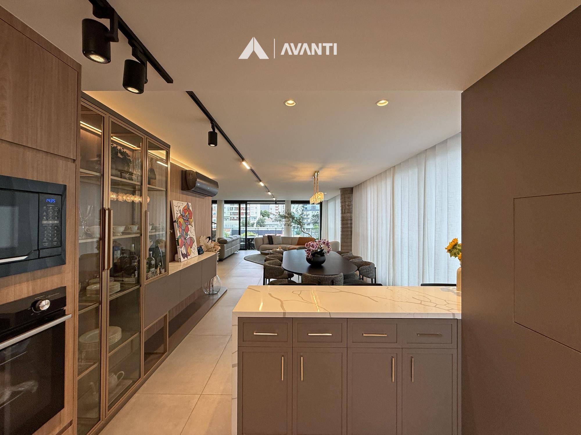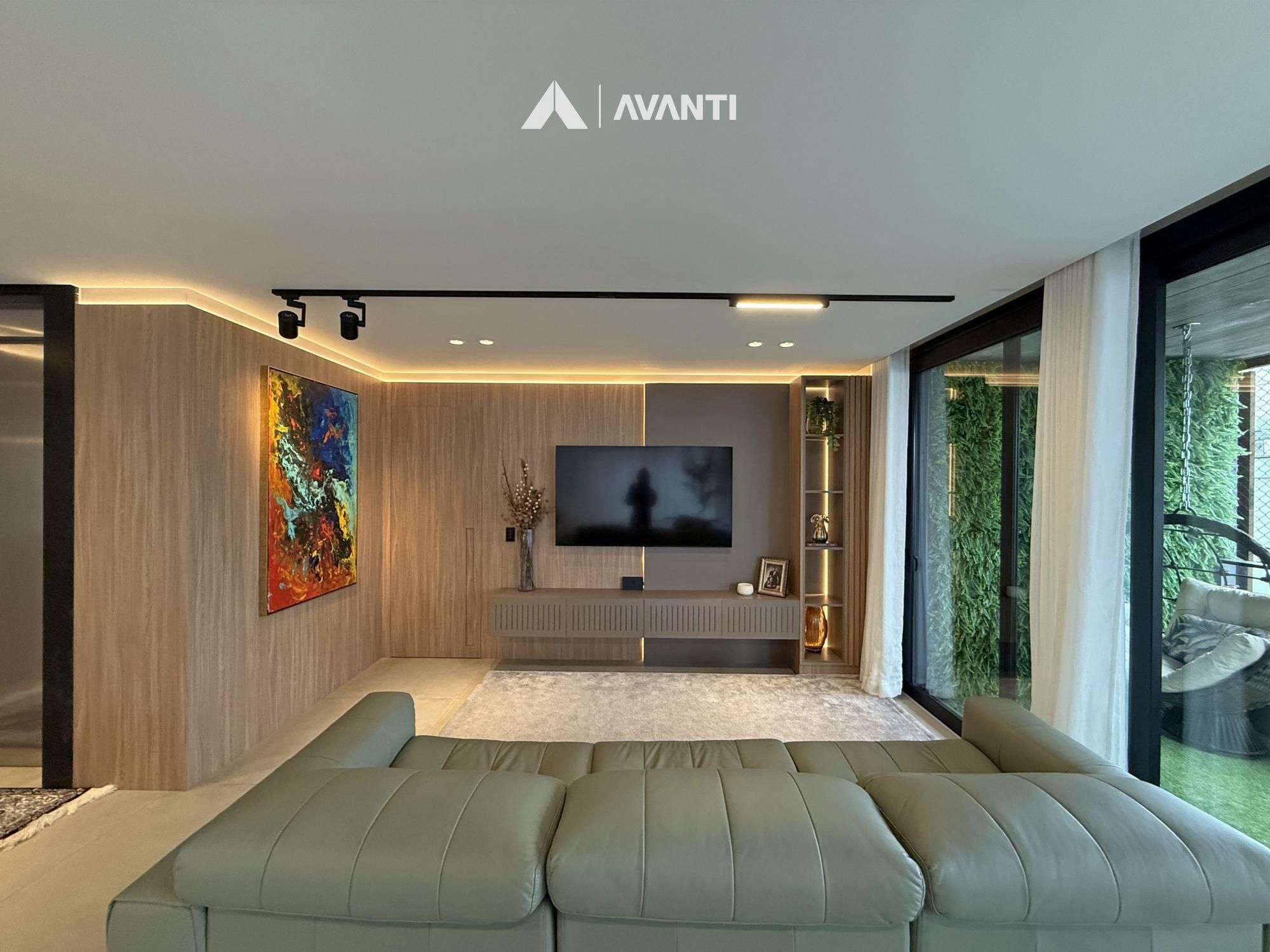 Com 198m² privativos, o imóvel apresenta elevador privativo, hall de entrada com lavabo e um living imponente em conceito aberto, integrando sala de estar em dois ambientes, ampla sacada, sala de jantar e uma cozinha gourmet espaçosa com bancada. A área de serviço é separada, conta com elevador de serviço e banheiro auxiliar, garantindo praticidade no dia a dia.
