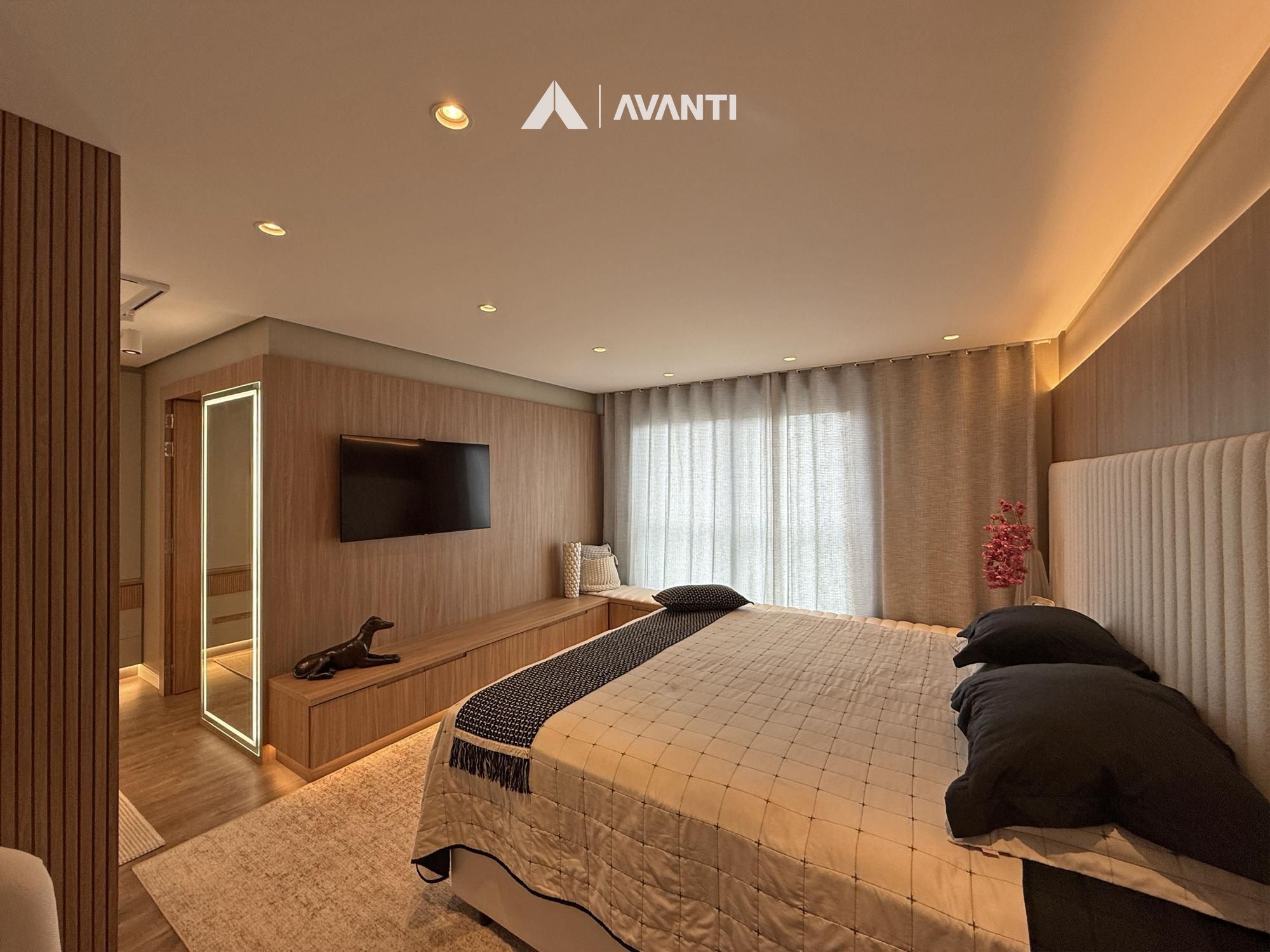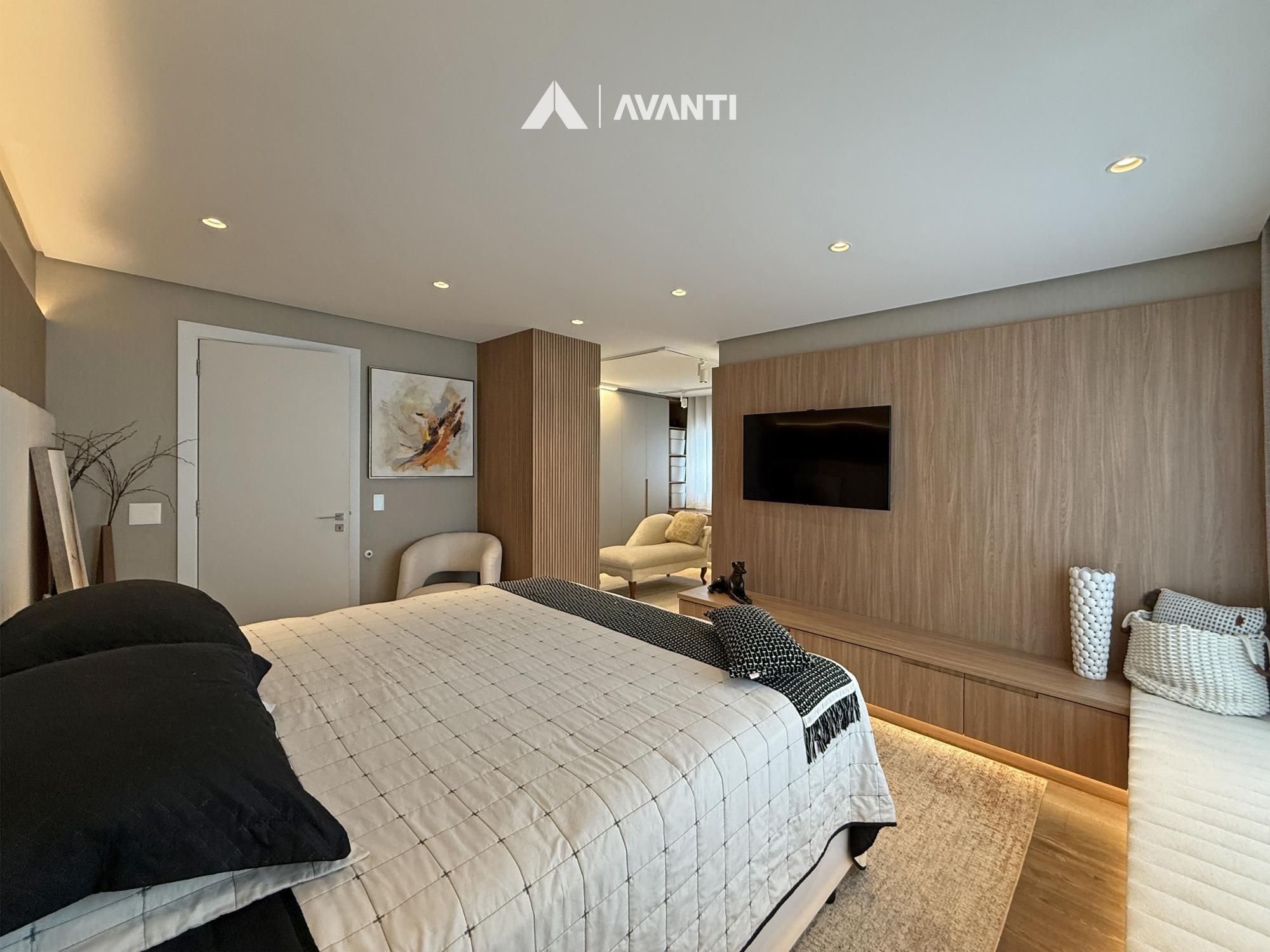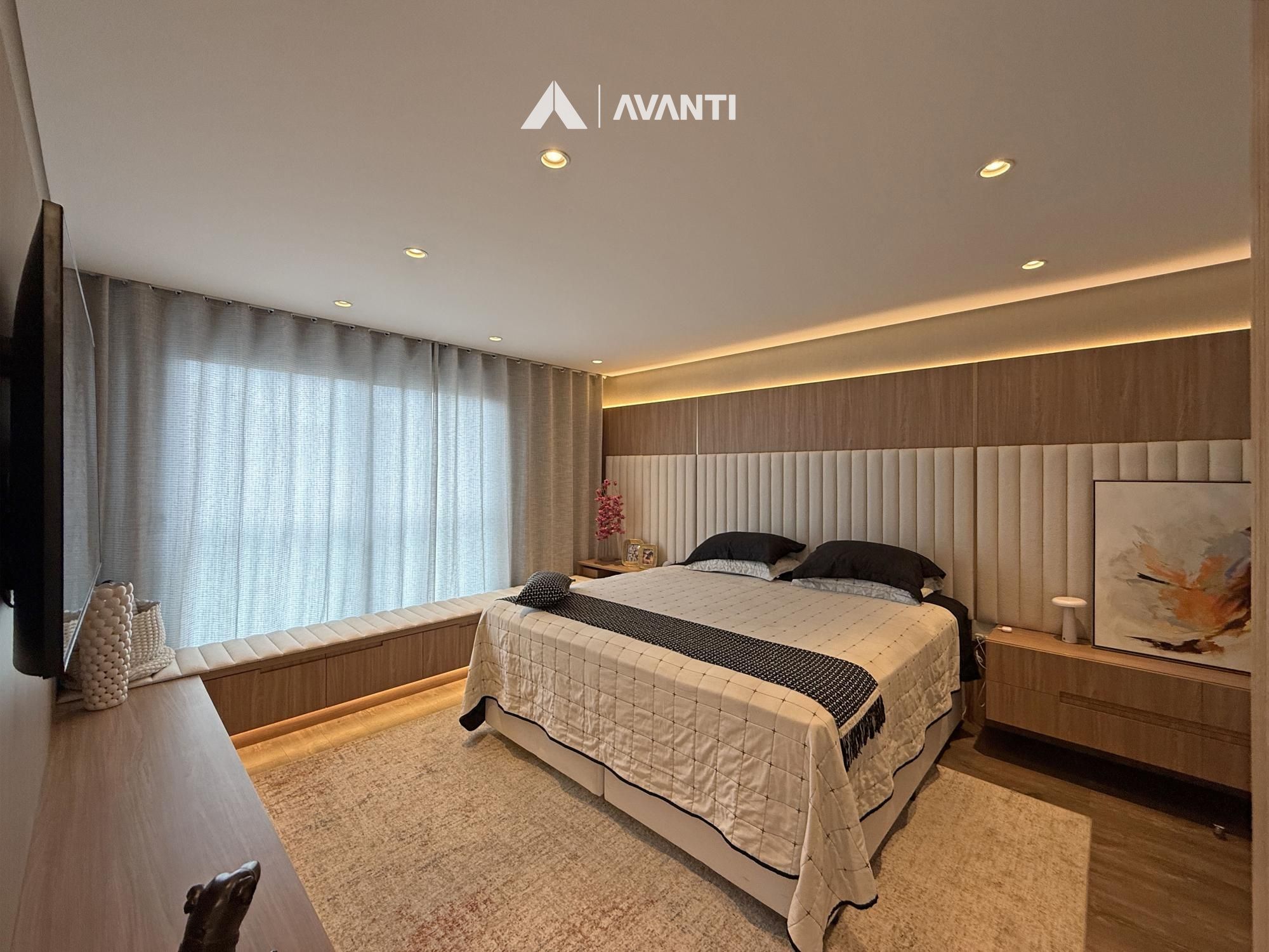 Na área íntima, são três suítes, sendo uma master, todas planejadas para oferecer conforto e privacidade. O apartamento dispõe ainda de quatro vagas de garagem.
