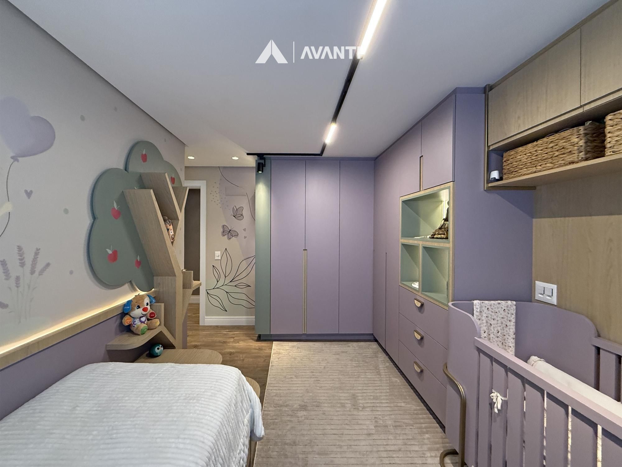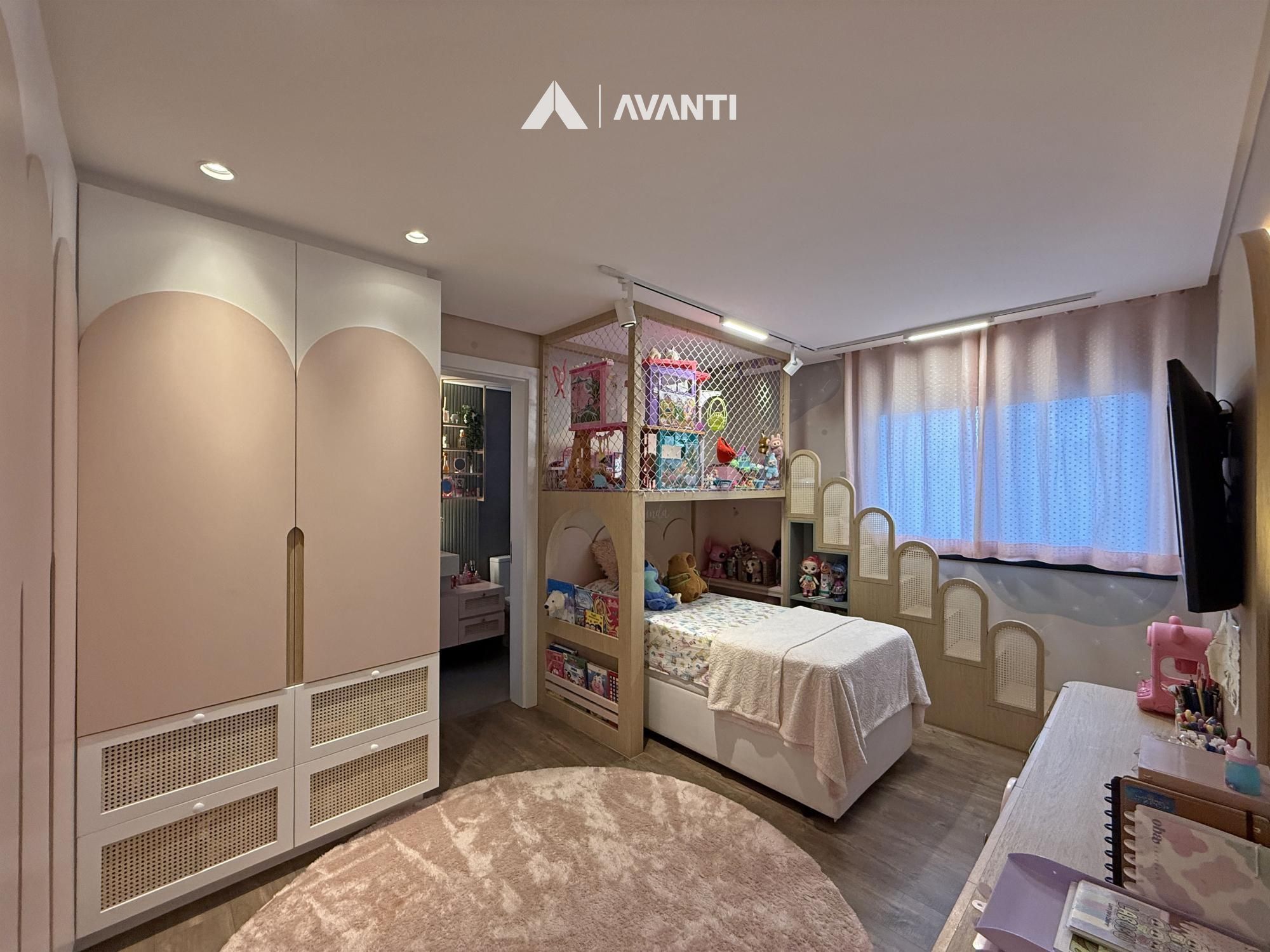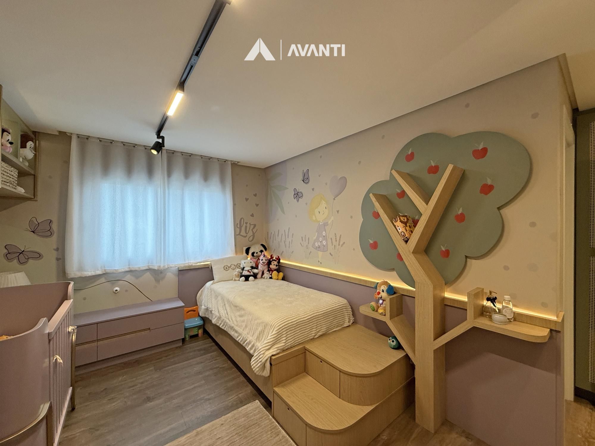 Na área íntima, são três suítes, sendo uma master, todas planejadas para oferecer conforto e privacidade. O apartamento dispõe ainda de quatro vagas de garagem.