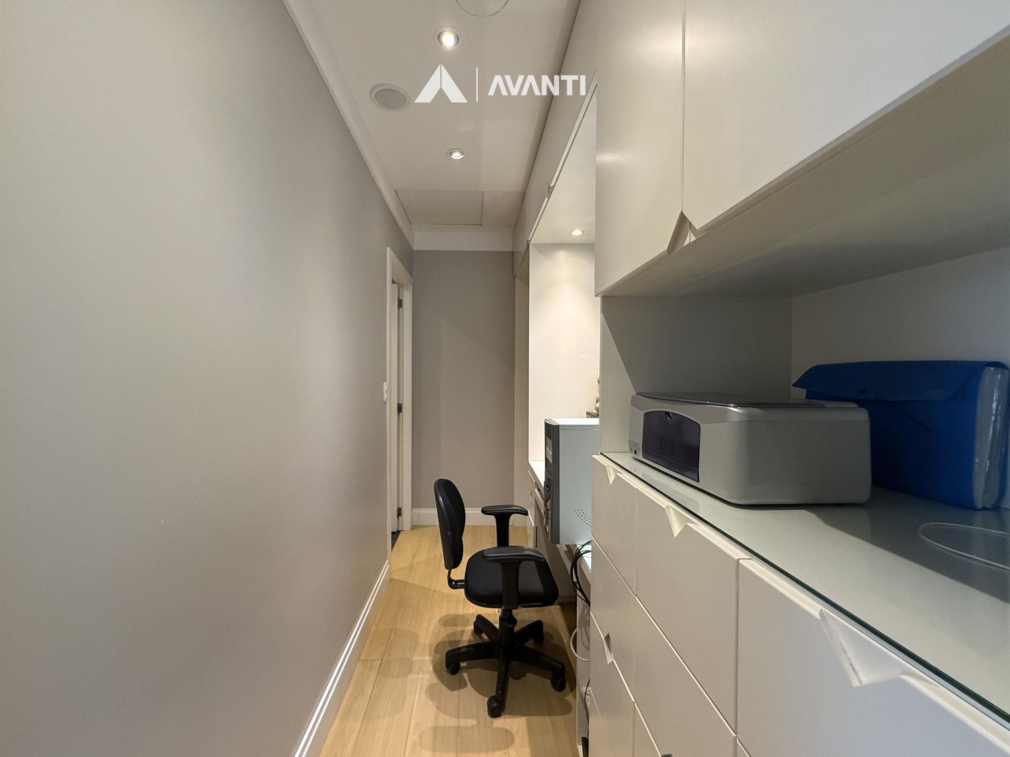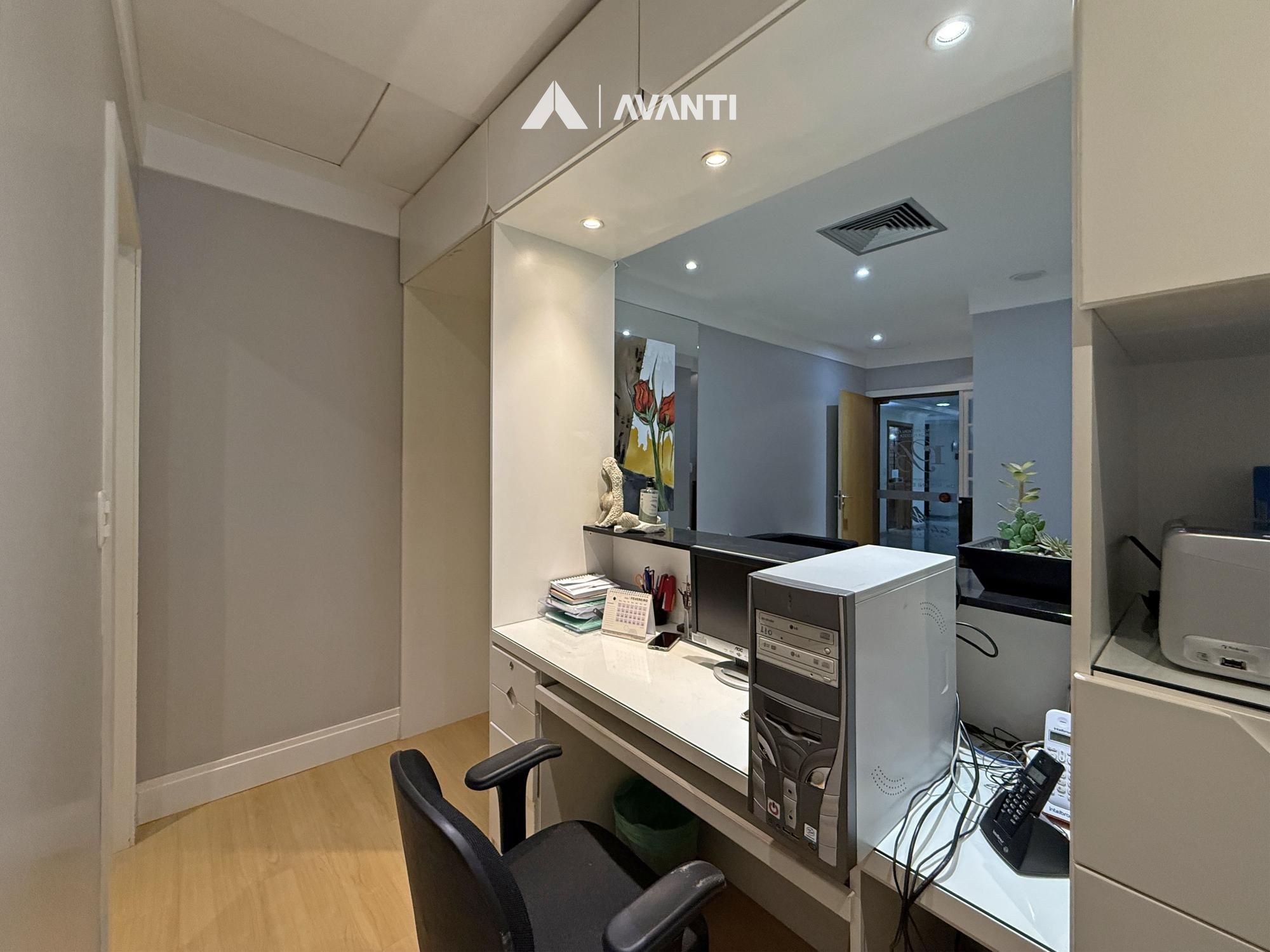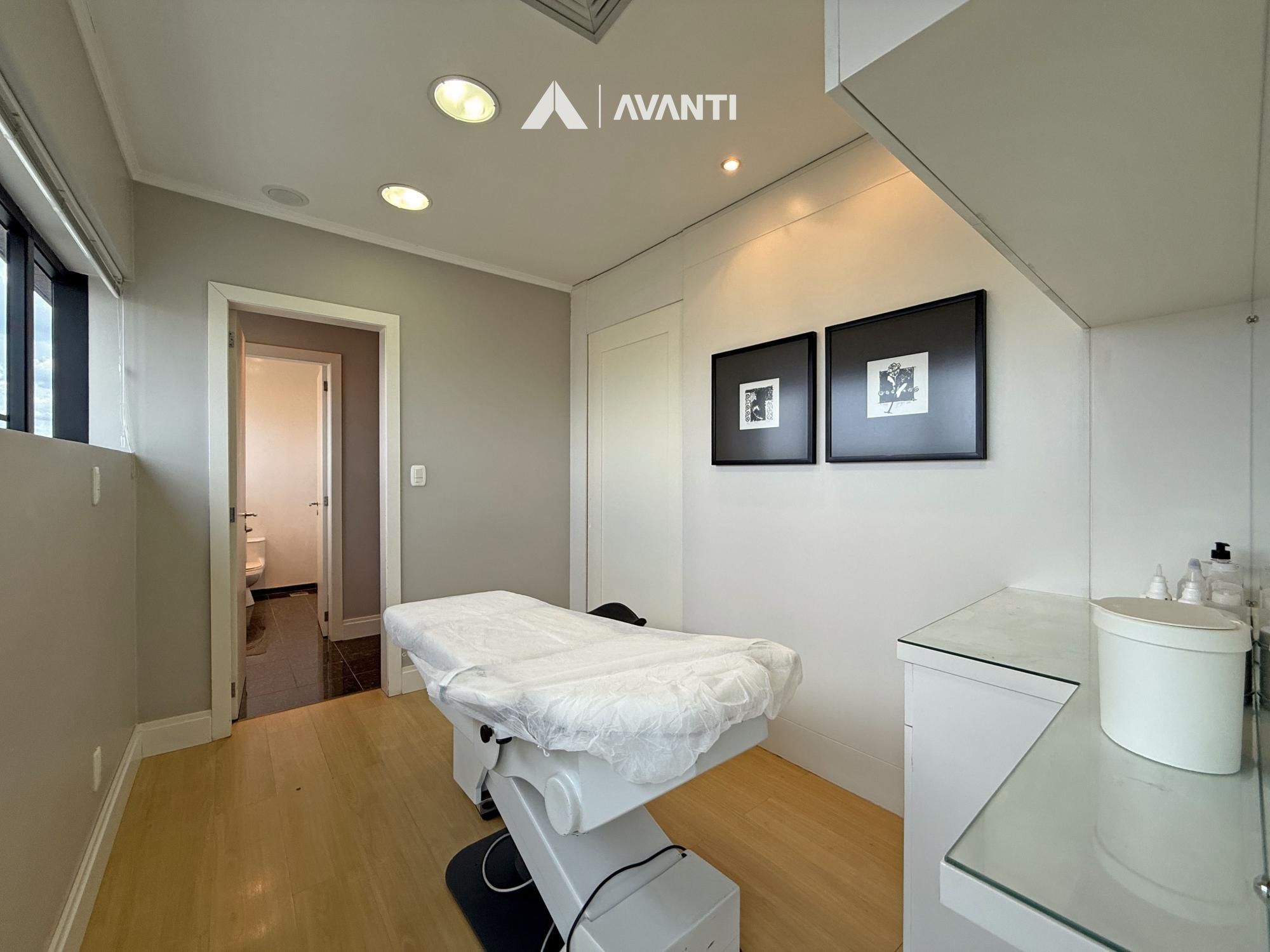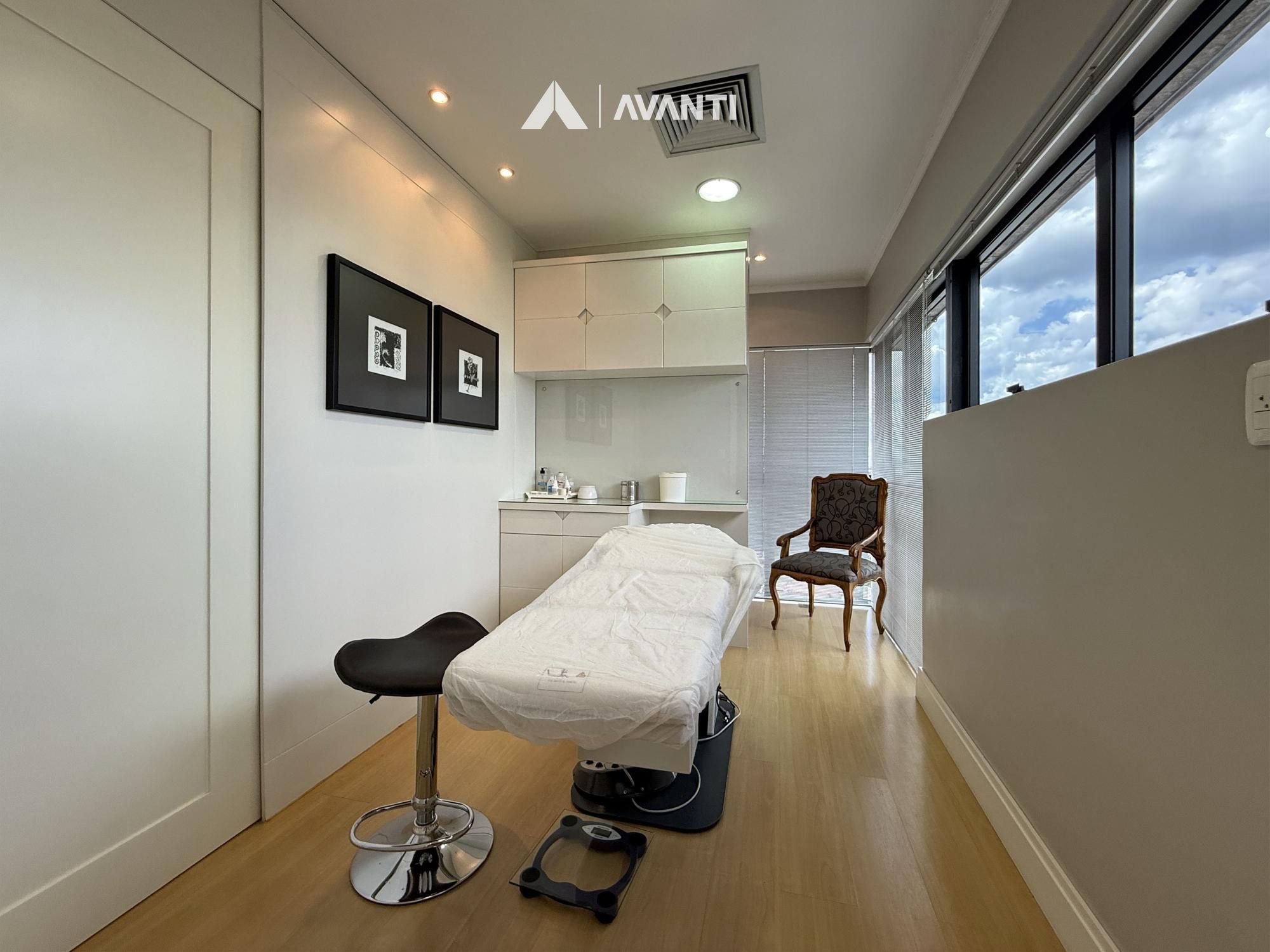 Com 67m² privativos, o ambiente foi planejado para oferecer funcionalidade e conforto. A recepção organiza o fluxo com discrição, o amplo escritório proporciona privacidade para atendimentos, e a sala de procedimentos com vestir agrega eficiência à rotina profissional. Conta ainda com copa e lavabo, garantindo apoio completo à operação.