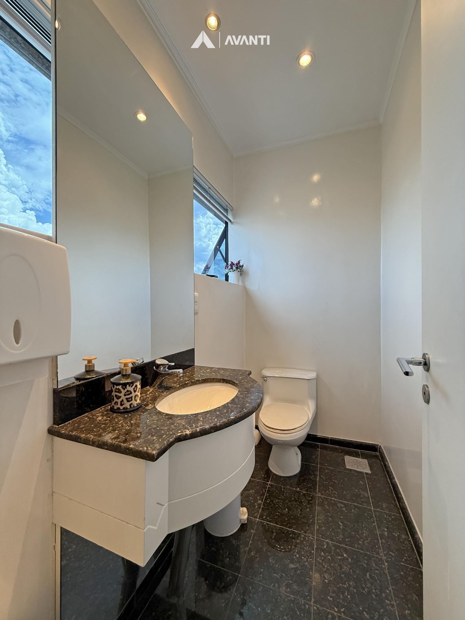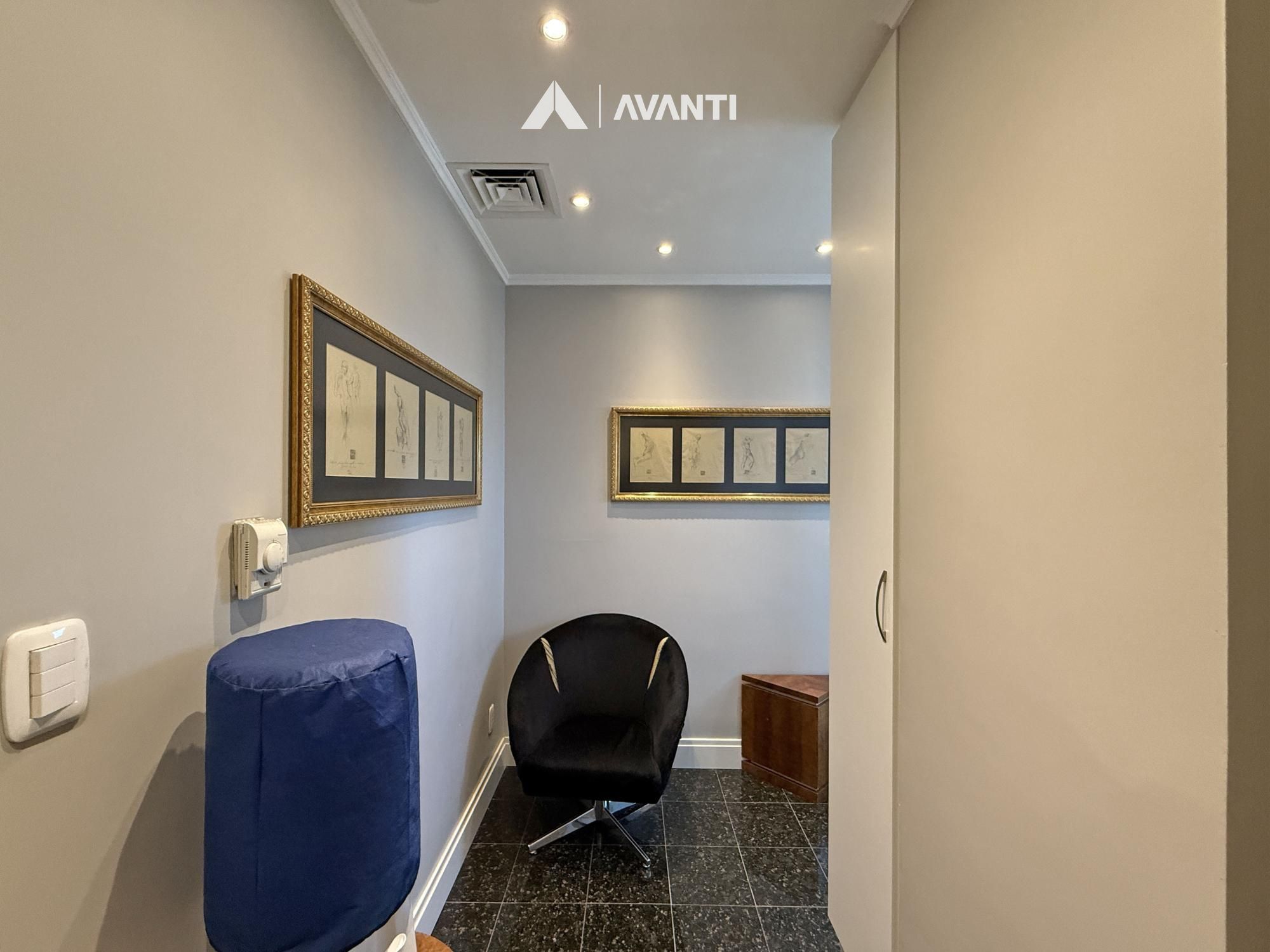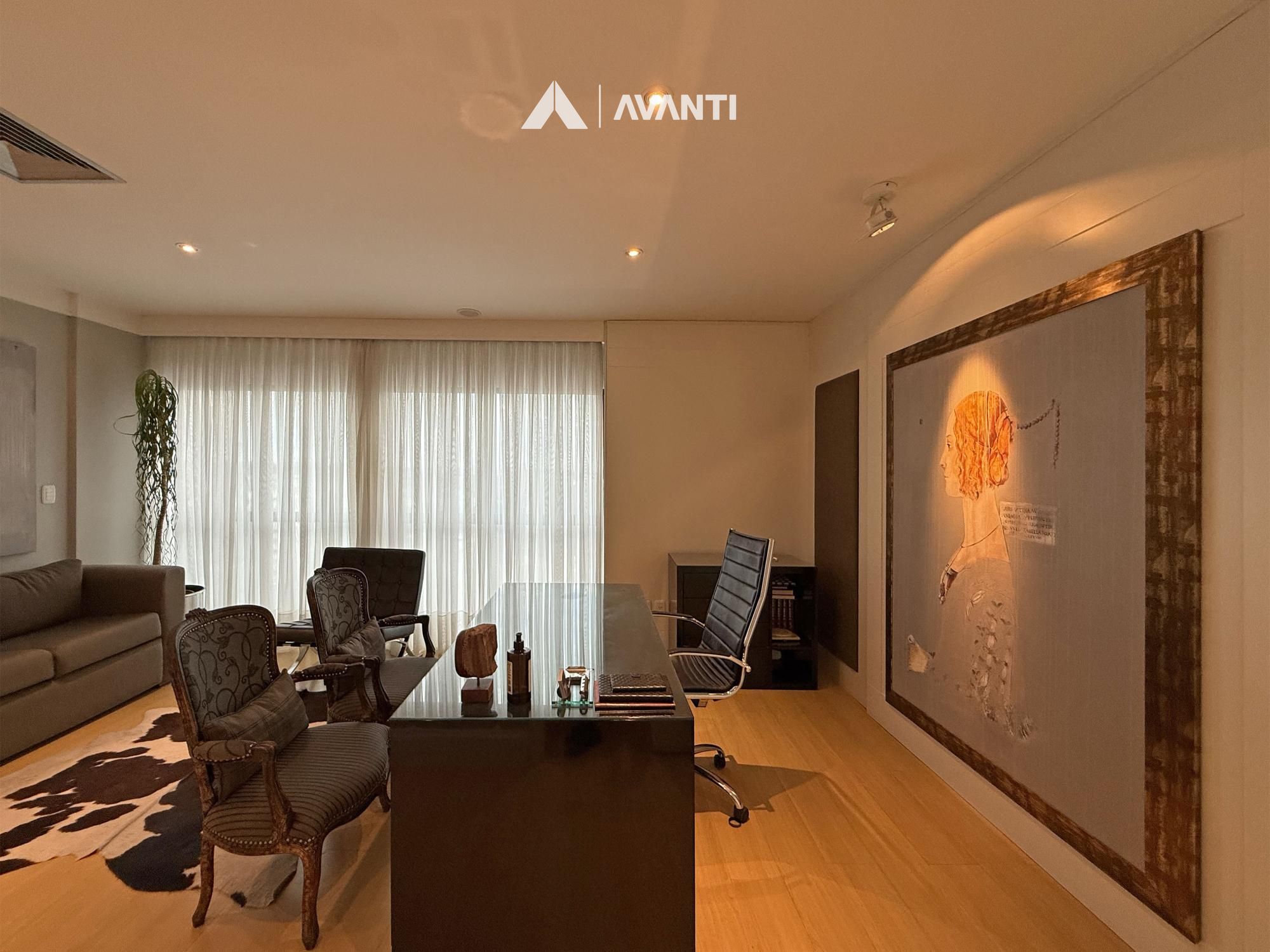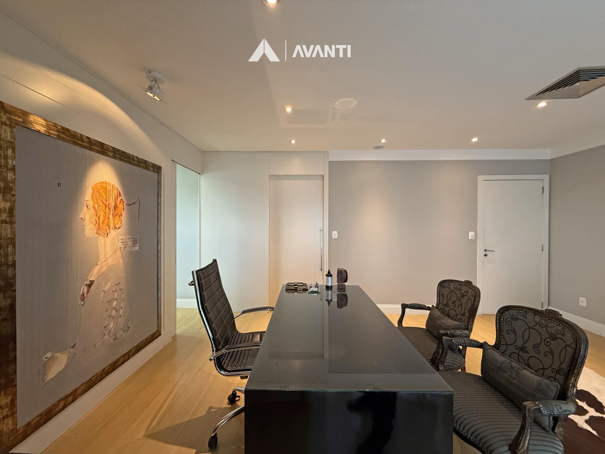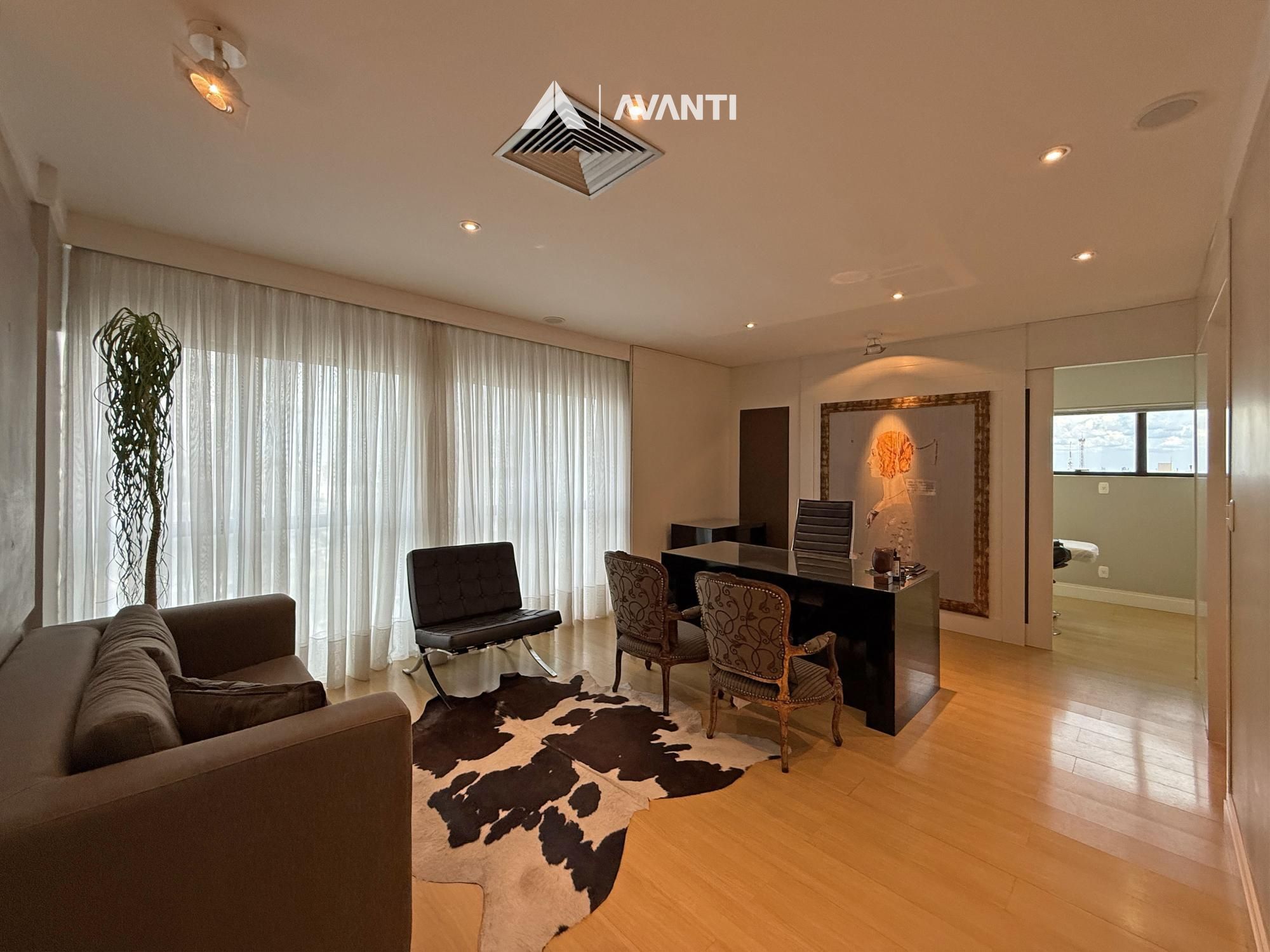 Com 67m² privativos, o ambiente foi planejado para oferecer funcionalidade e conforto. A recepção organiza o fluxo com discrição, o amplo escritório proporciona privacidade para atendimentos, e a sala de procedimentos com vestir agrega eficiência à rotina profissional. Conta ainda com copa e lavabo, garantindo apoio completo à operação.