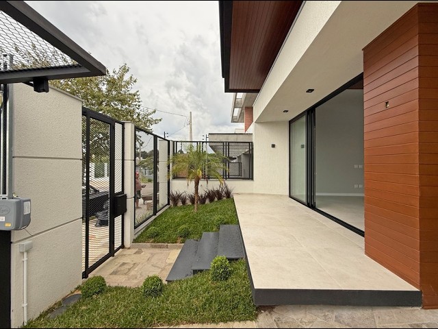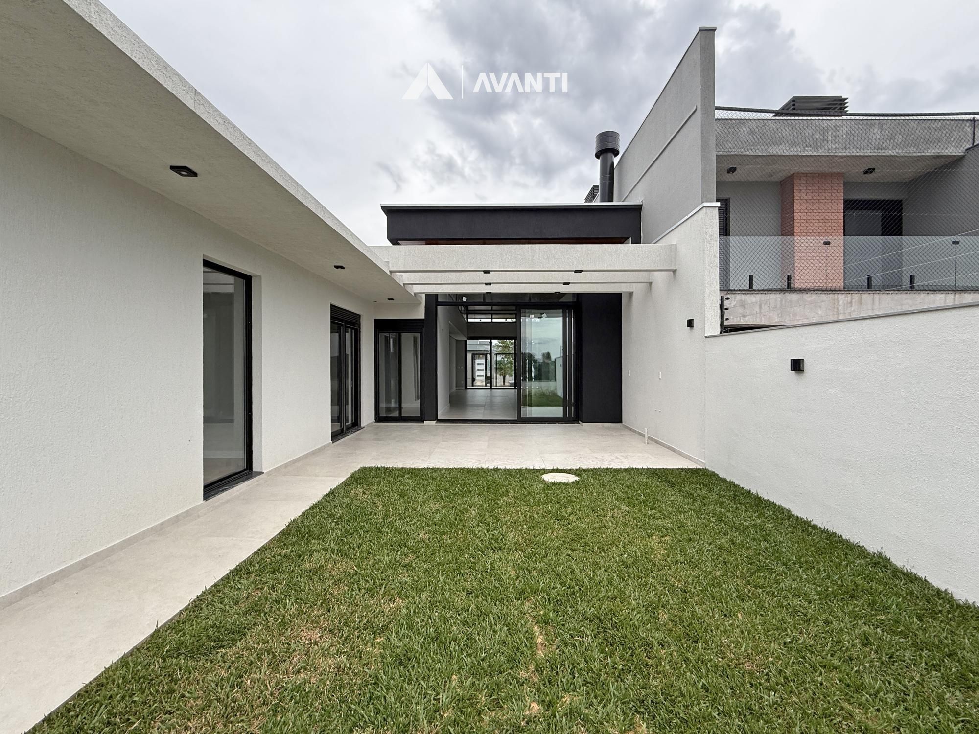 Edificada em terreno de 336 m², conta com 202 m² privativos bem distribuídos. O living integra os ambientes sociais e se conecta à varanda , criando um espaço ideal para receber. O pátio nos fundos é amplo, com gramado, espera para espaço gourmet e uma vista aberta para a natureza, além de pátio frontal que reforça a imponência do imóvel.